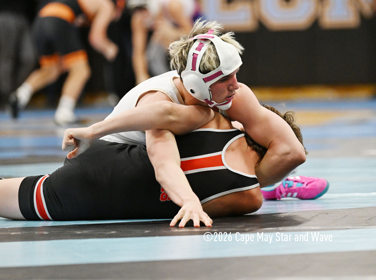 The team lost in the opening match to LCMR, 53-18. The Caper Tigers are another top 20 team in the state, ranked 17th with a 17-3 record. LCMR’s win over Ocean City provided the 150th career coaching win for Billy Damiana, whose team went on that day to beat Cherokee 58-15 and Washington Township 39-32.