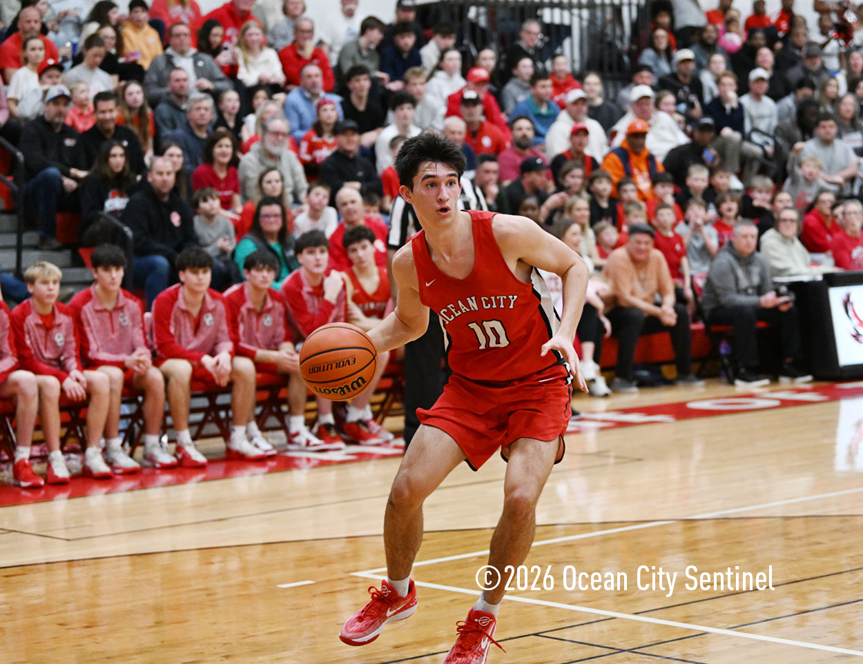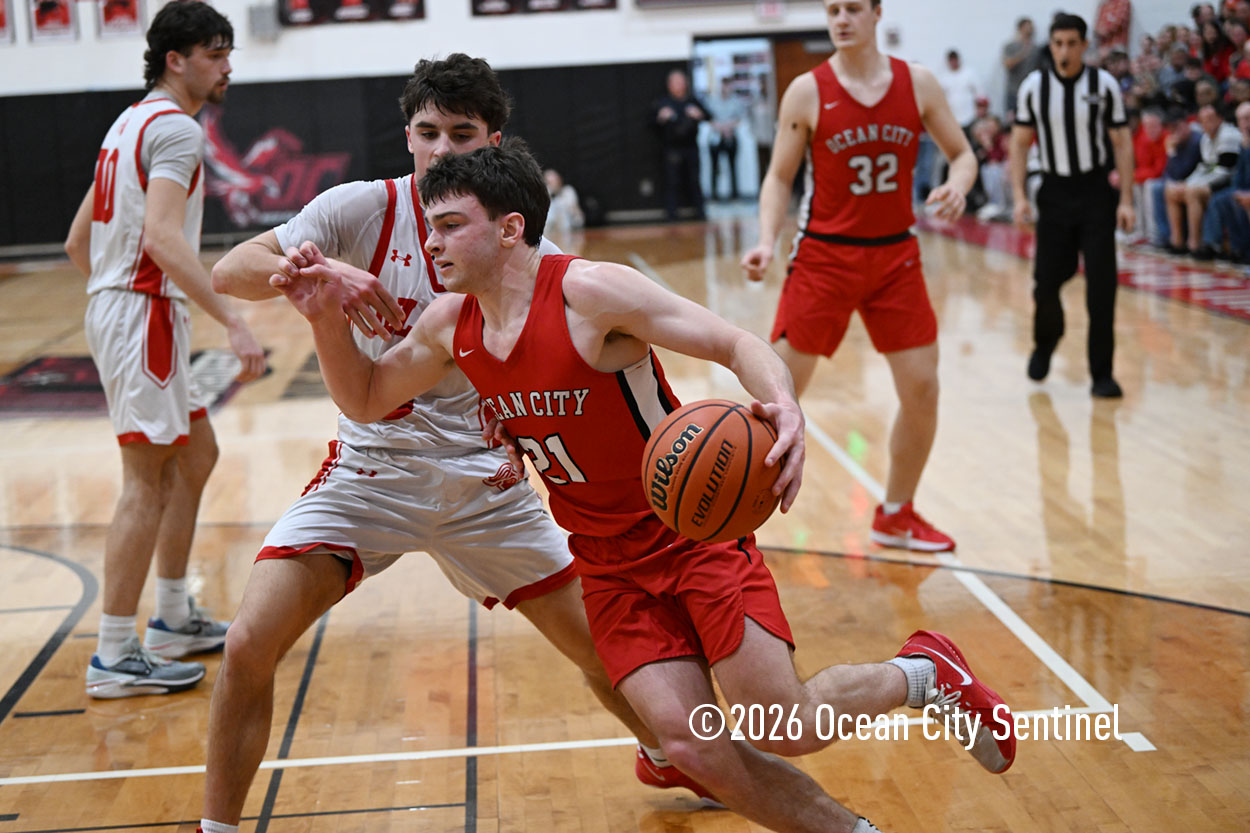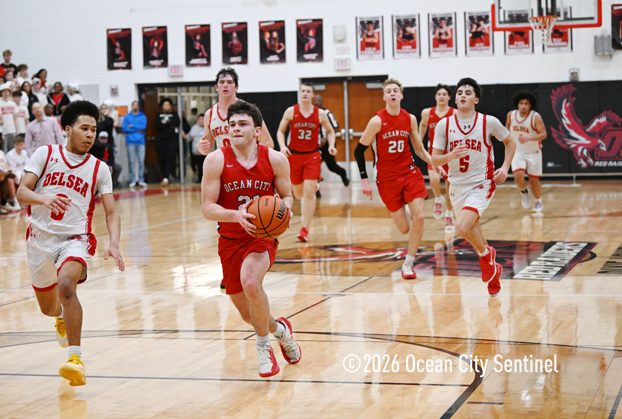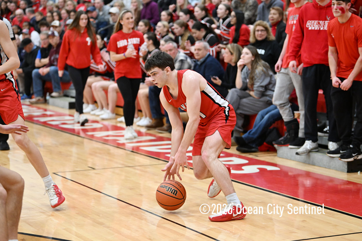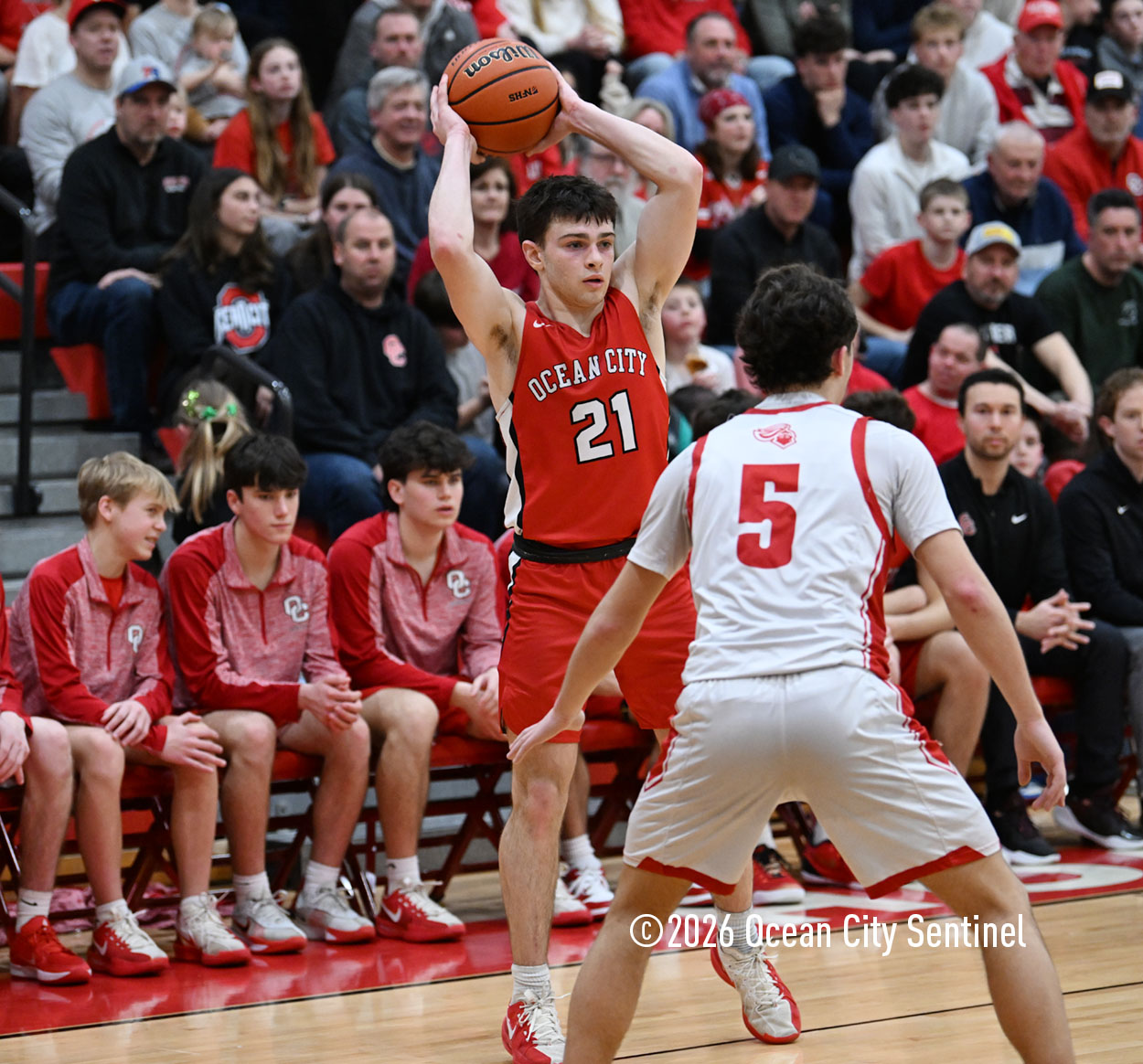 The Raiders seized control of the game in the second quarter and played nearly perfectly on both sides of the court. Ocean City trailed 17-11 with 6:20 remaining in the half but turned the tide after Luke Tjoumakaris stood tall and took a charge on defense.