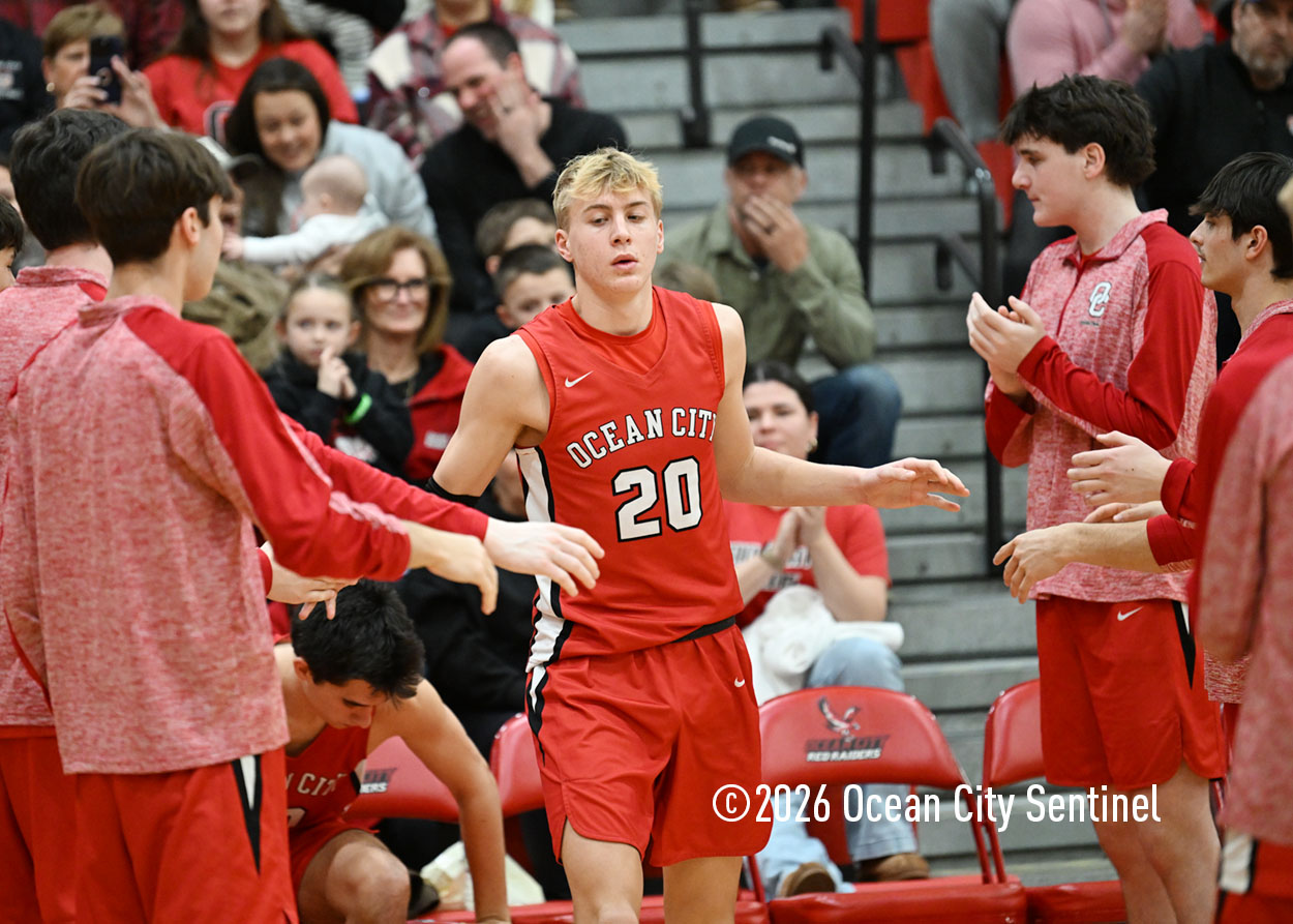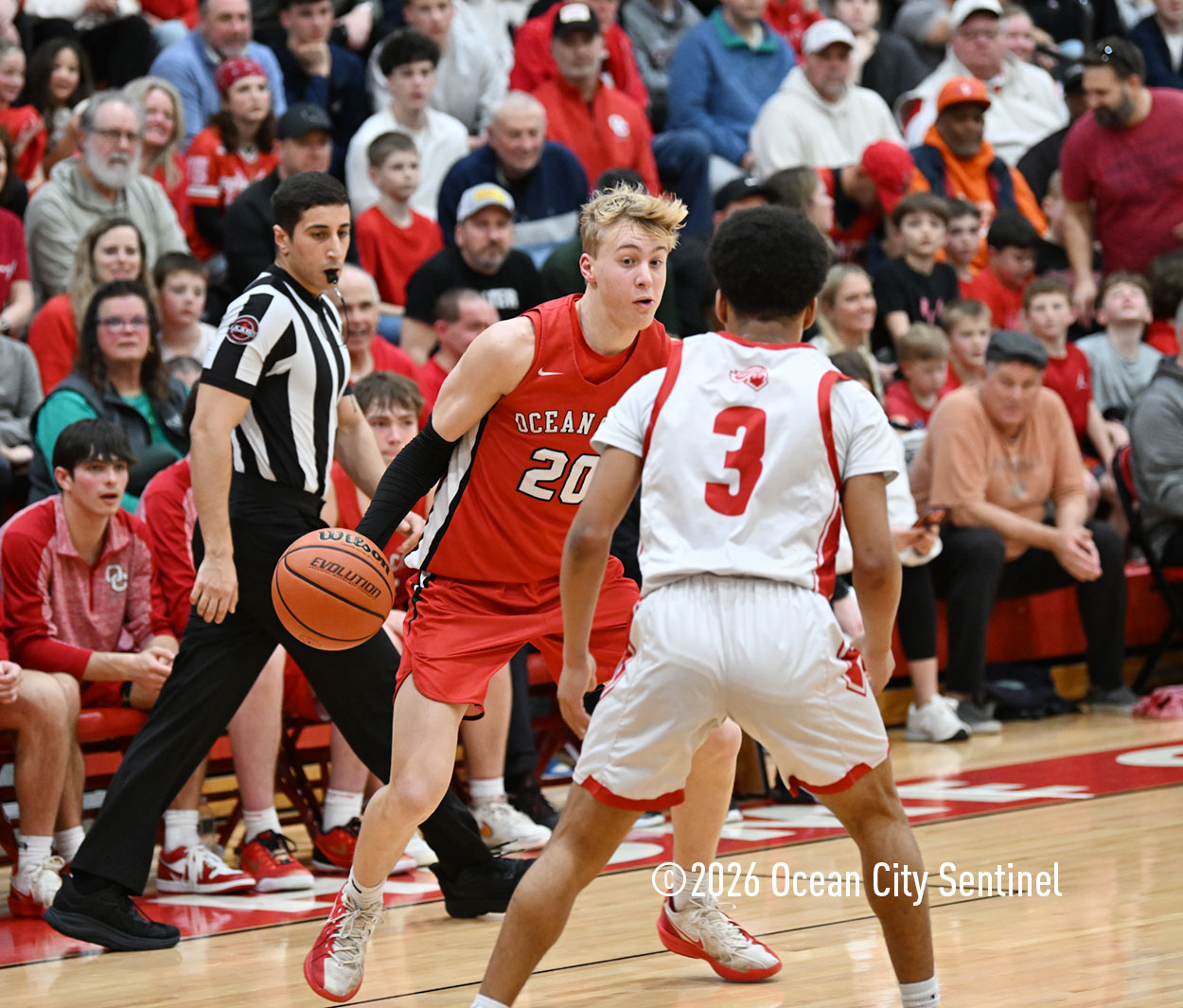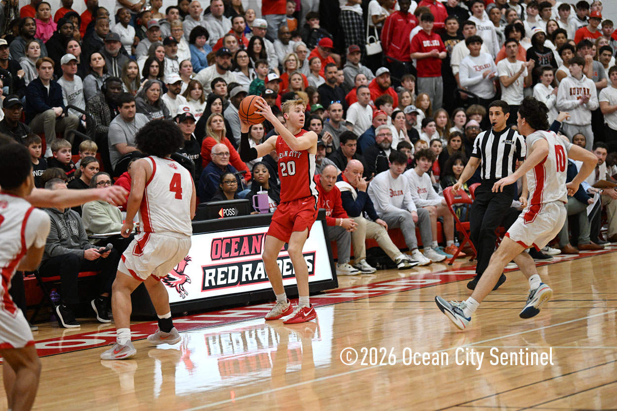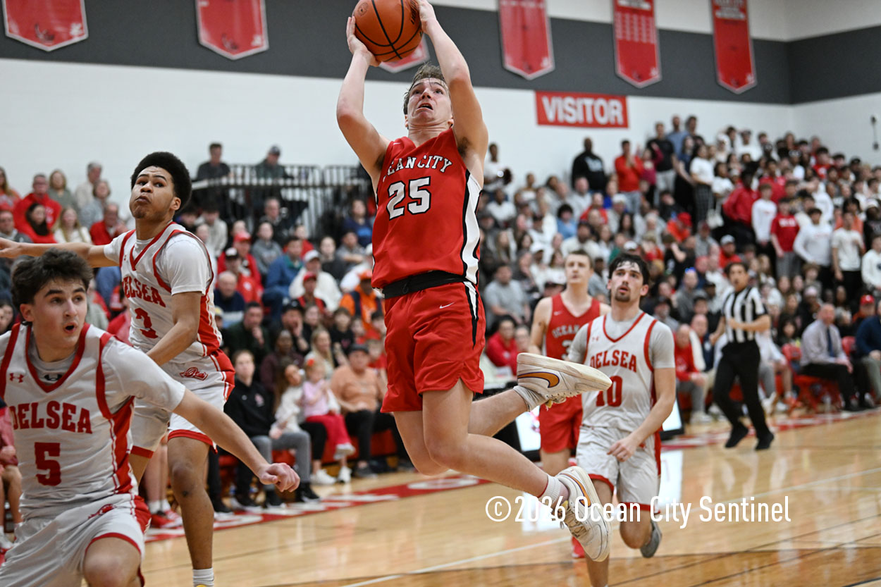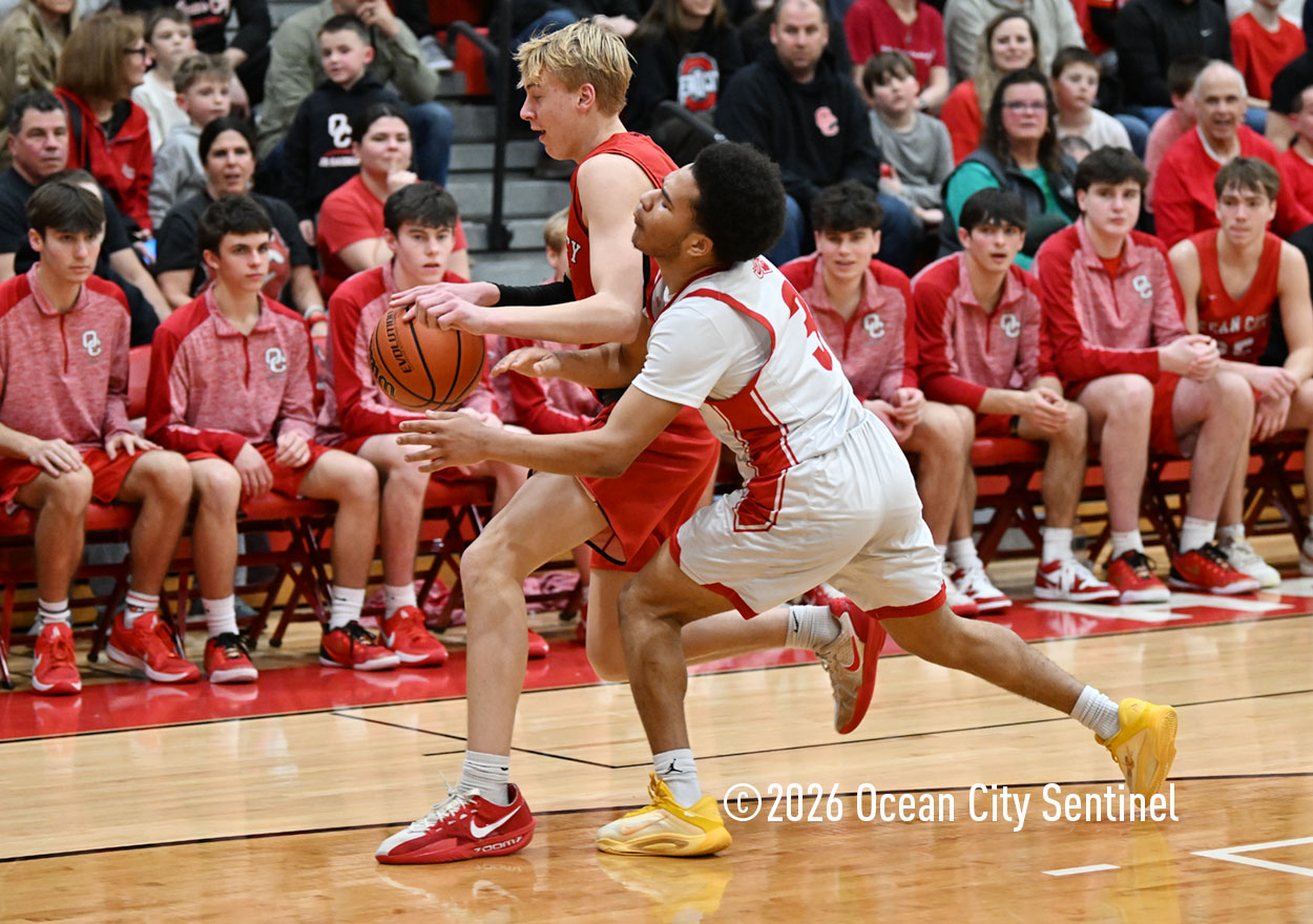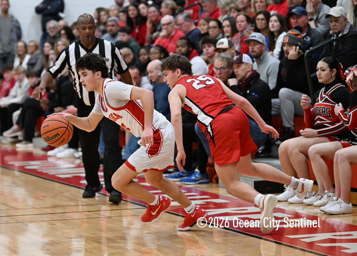 The Raiders seized control of the game in the second quarter and played nearly perfectly on both sides of the court. Ocean City trailed 17-11 with 6:20 remaining in the half but turned the tide after Luke Tjoumakaris stood tall and took a charge on defense.