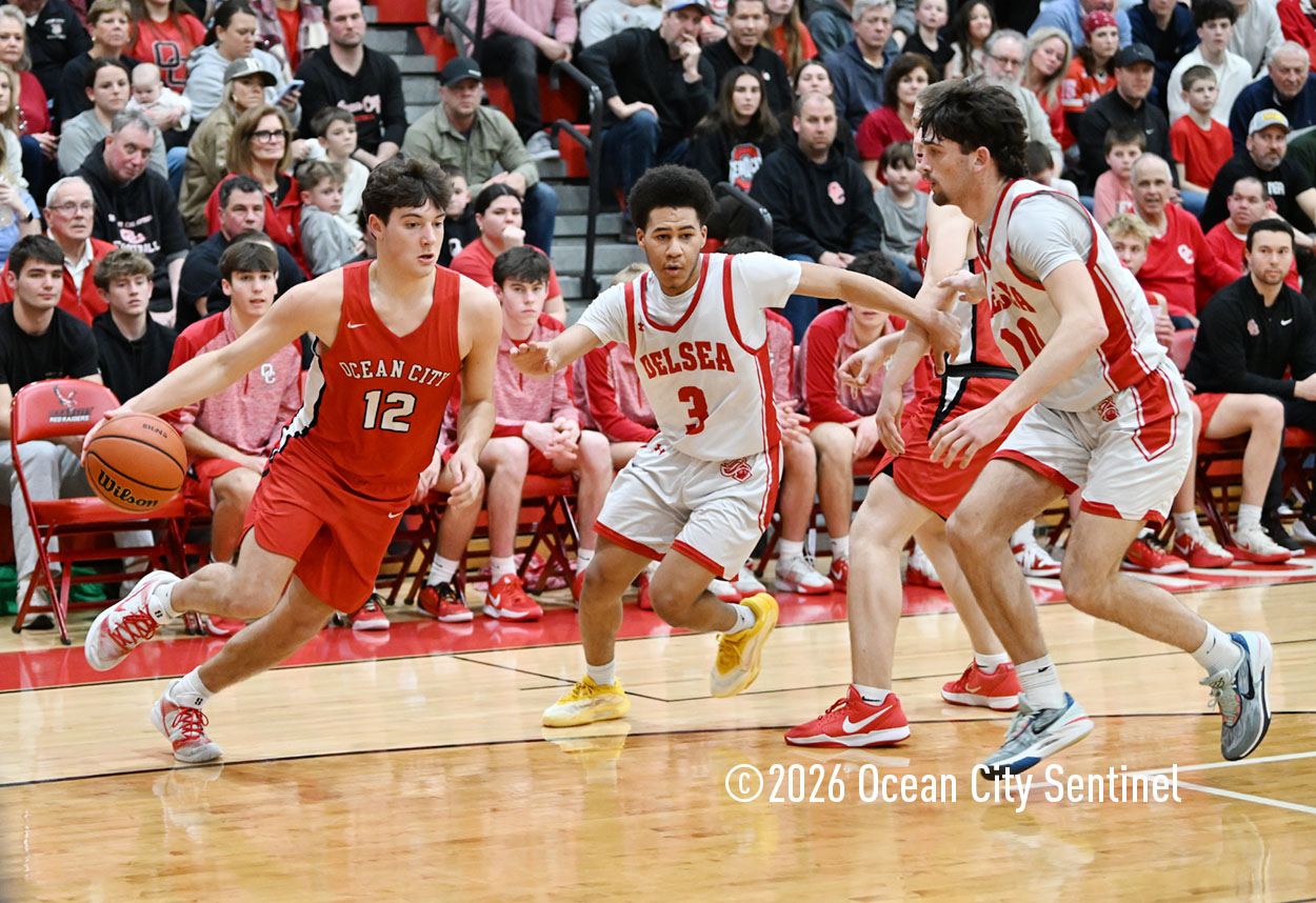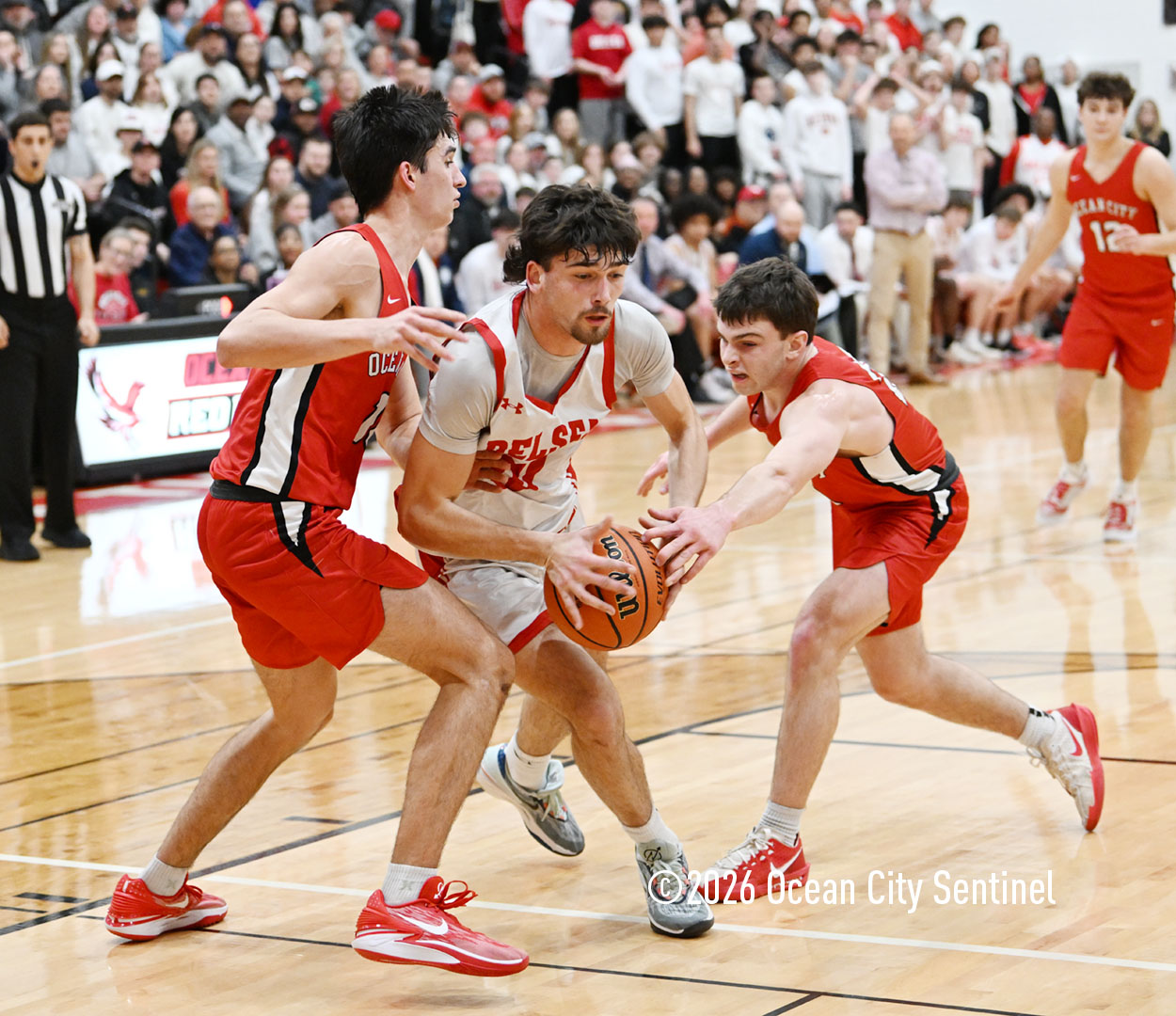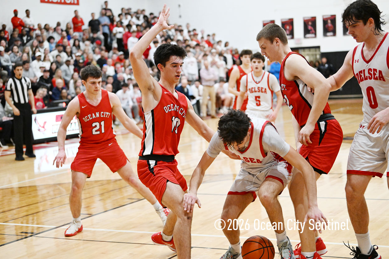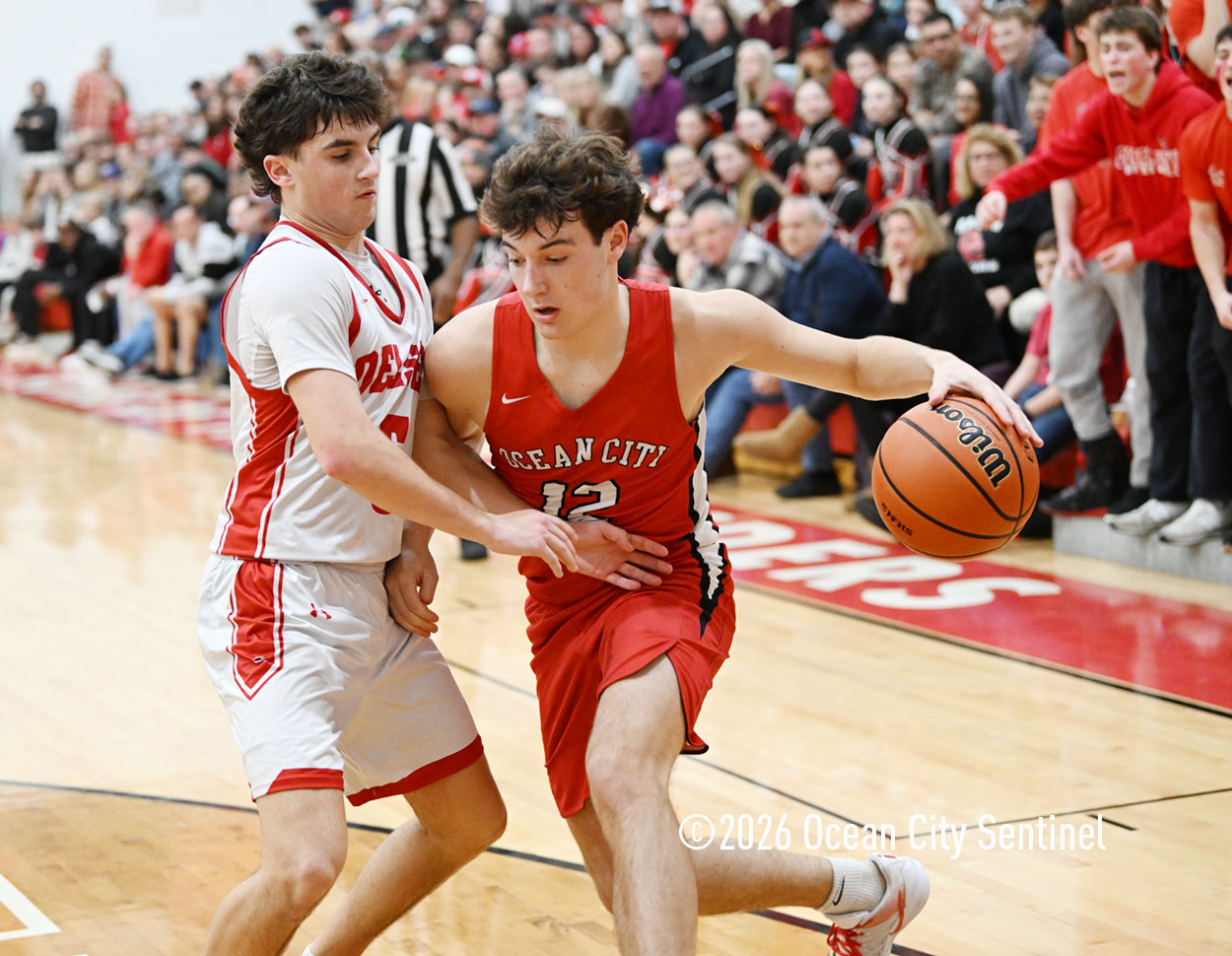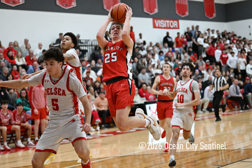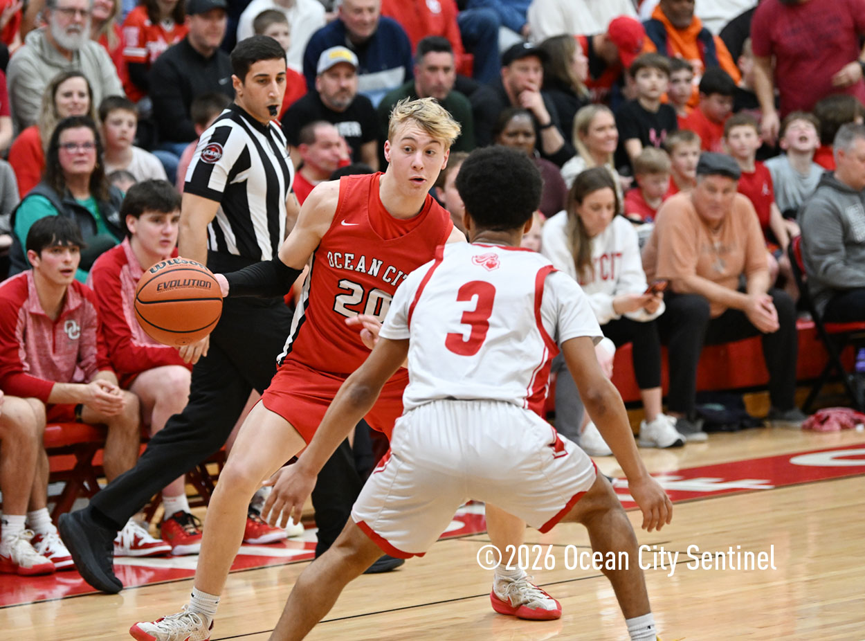 The Raiders seized control of the game in the second quarter and played nearly perfectly on both sides of the court. Ocean City trailed 17-11 with 6:20 remaining in the half but turned the tide after Luke Tjoumakaris stood tall and took a charge on defense.