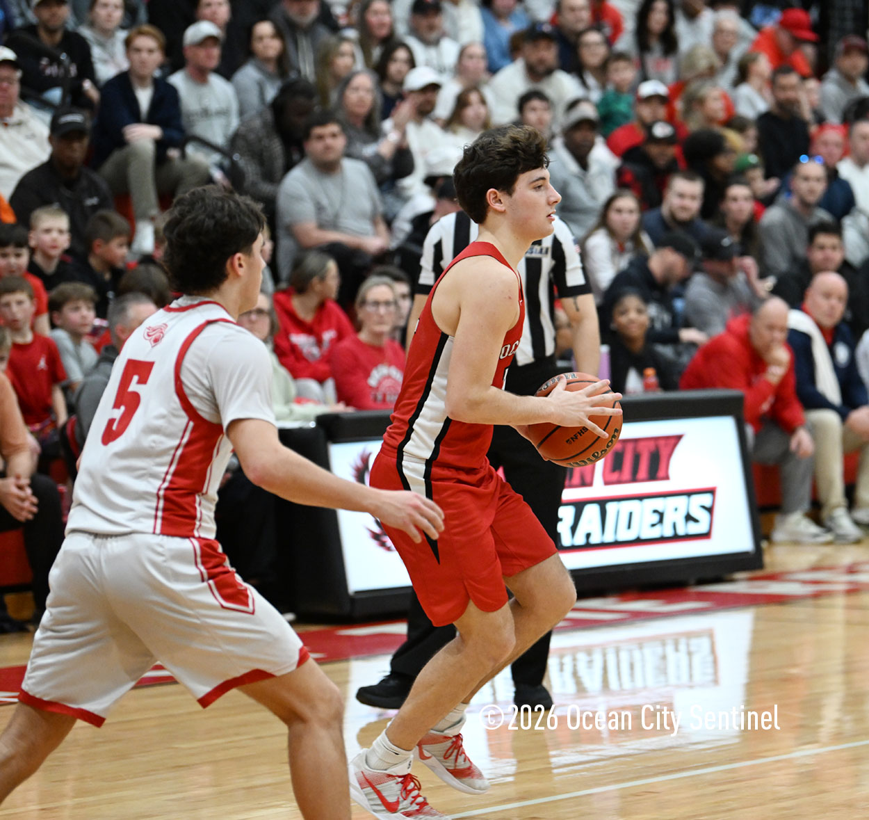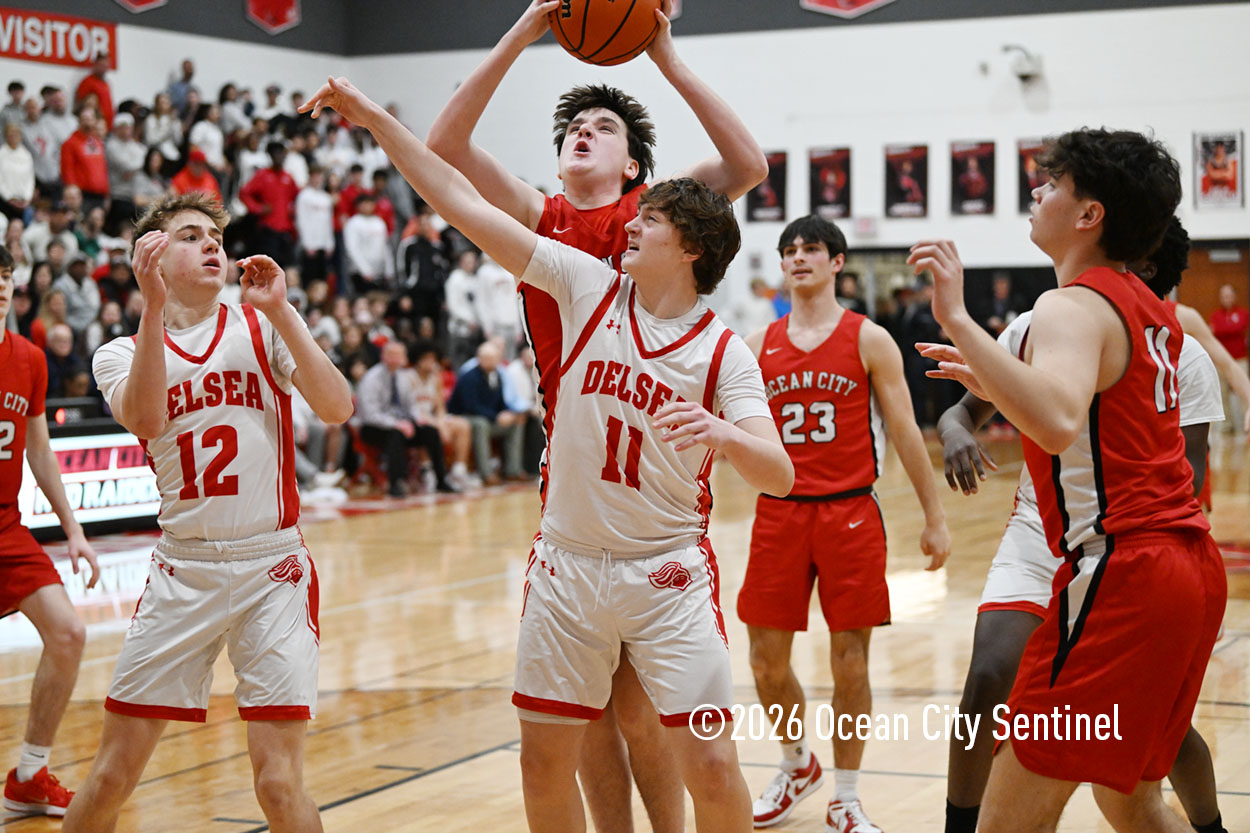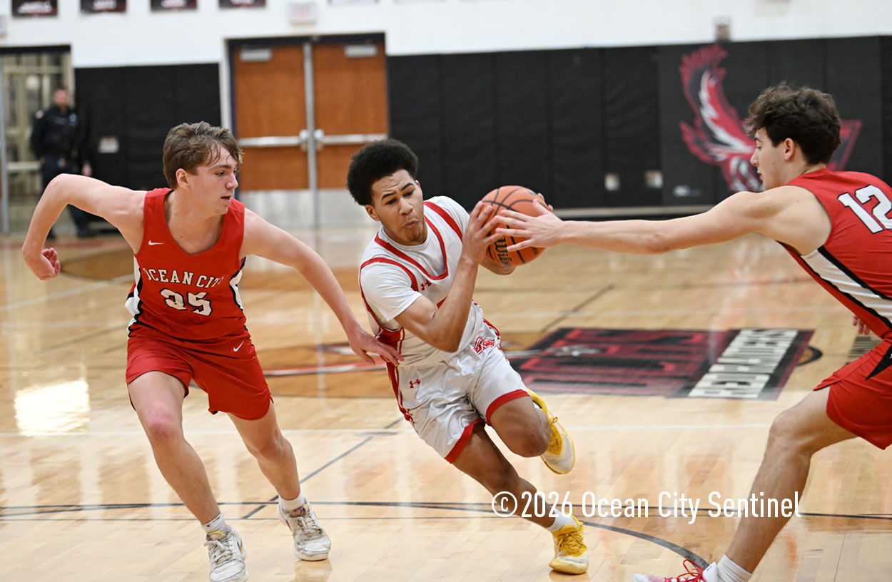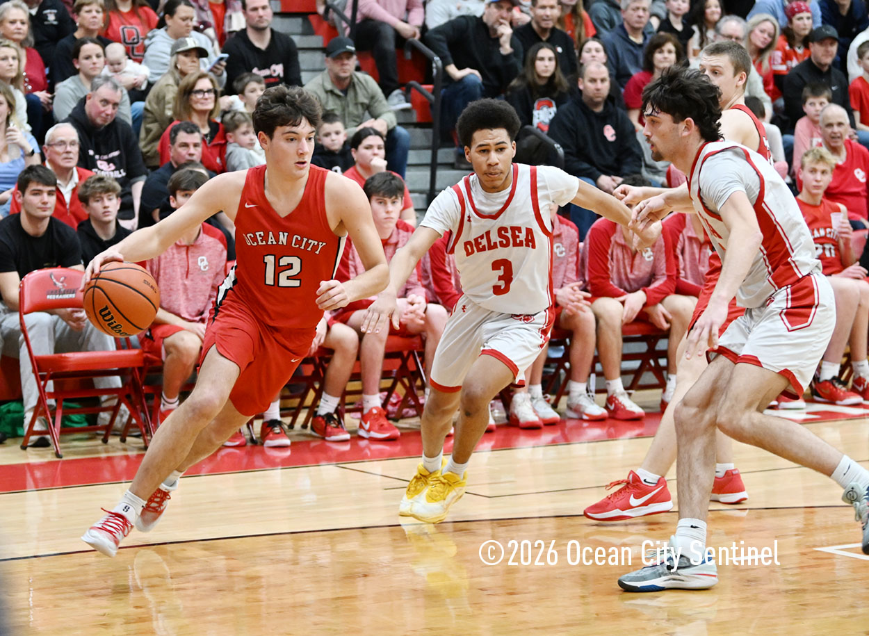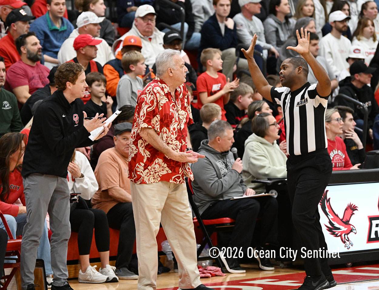 The Raiders seized control of the game in the second quarter and played nearly perfectly on both sides of the court. Ocean City trailed 17-11 with 6:20 remaining in the half but turned the tide after Luke Tjoumakaris stood tall and took a charge on defense.