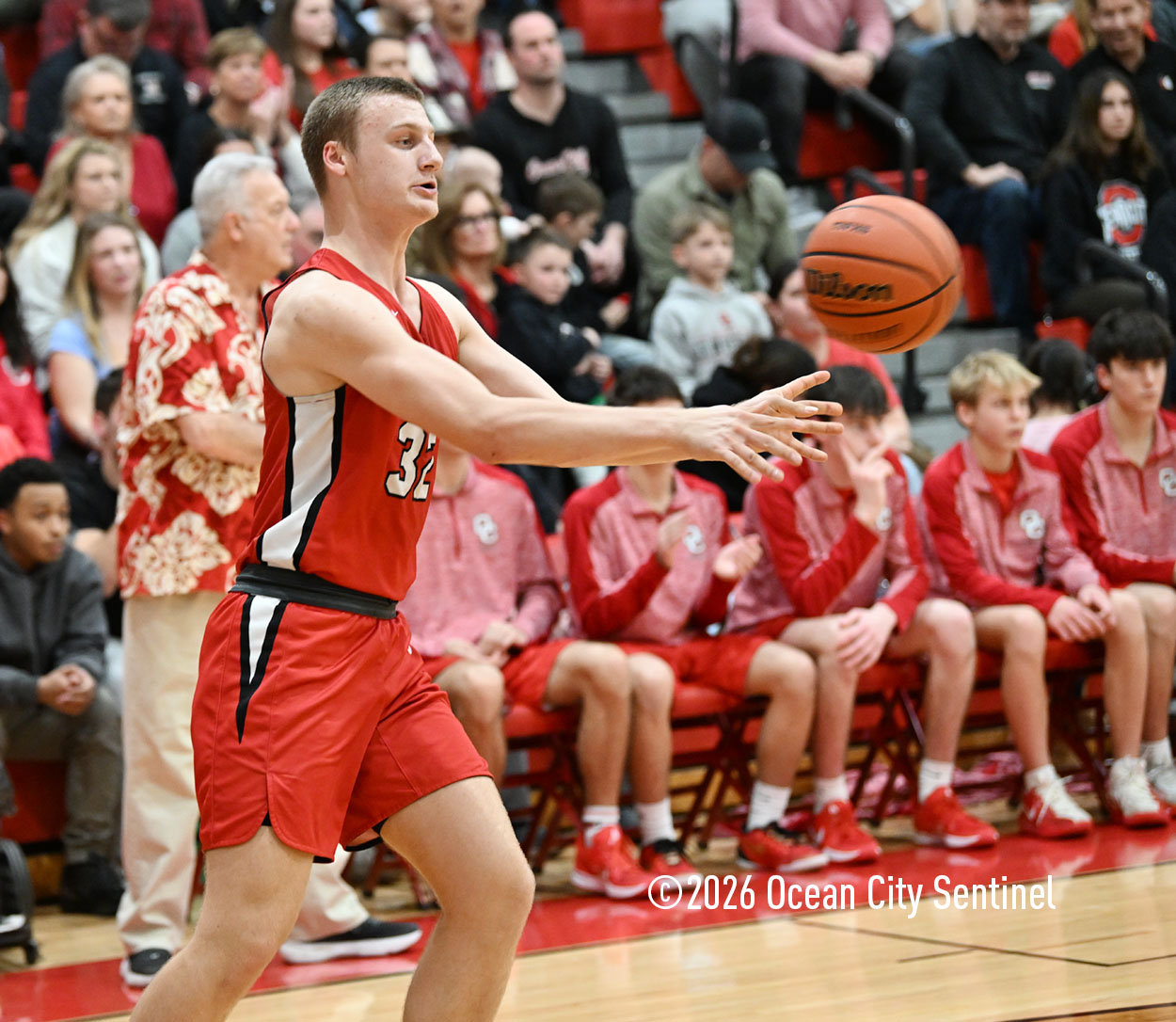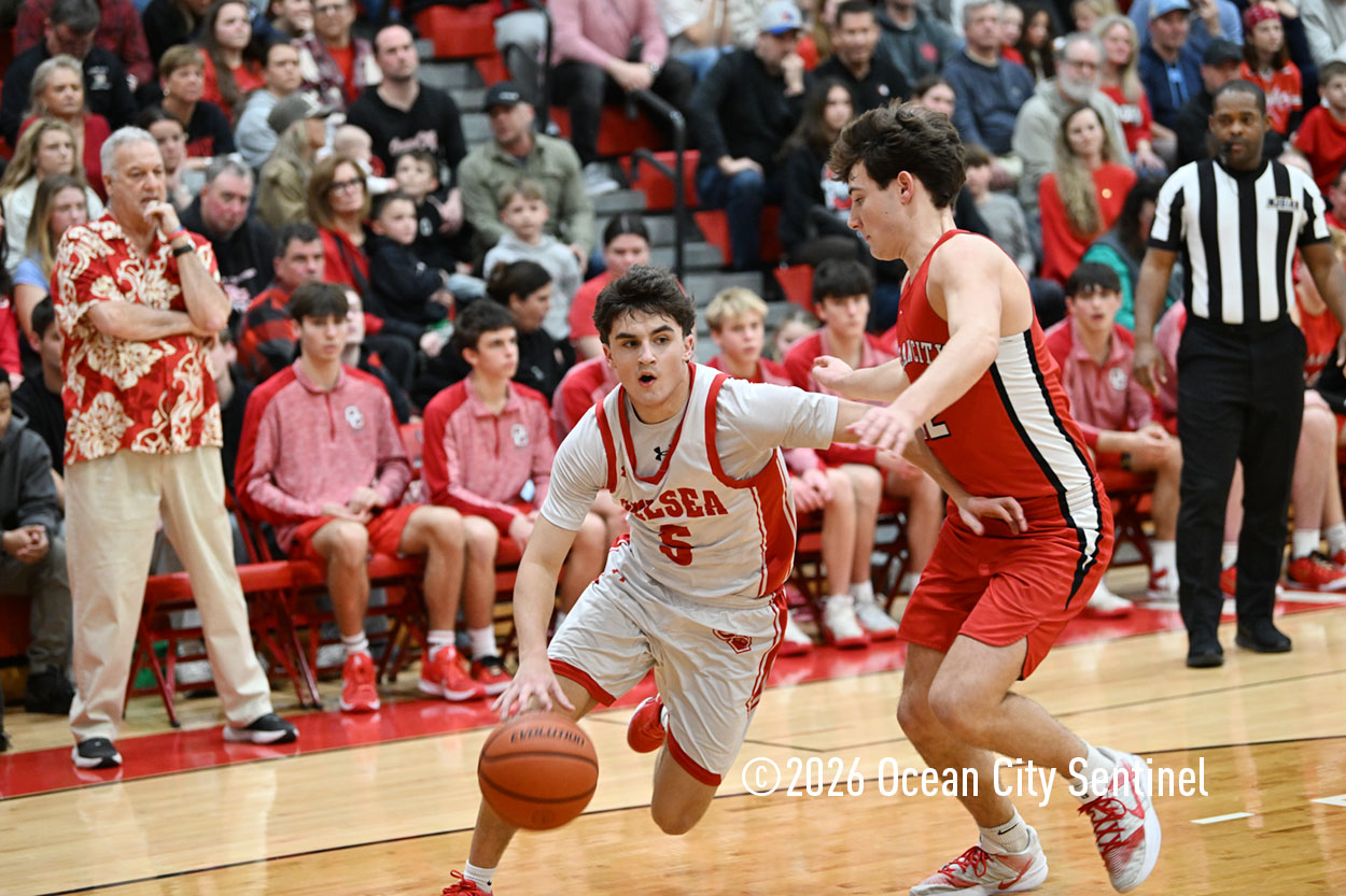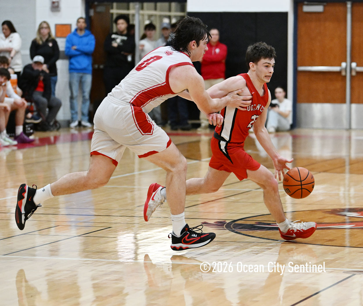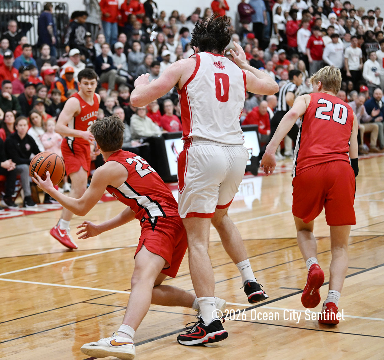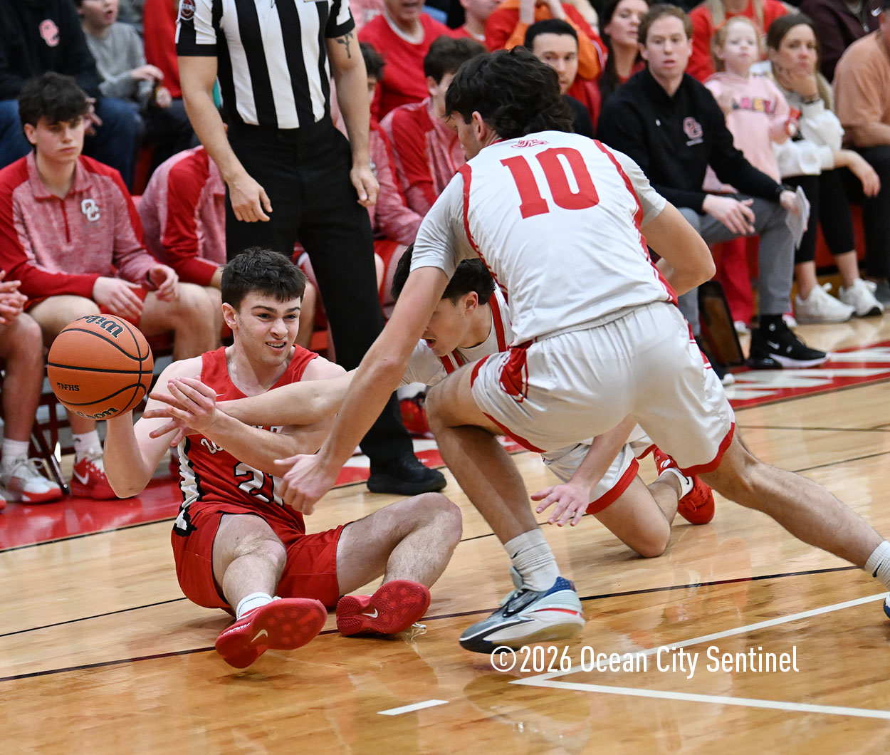 The Raiders seized control of the game in the second quarter and played nearly perfectly on both sides of the court. Ocean City trailed 17-11 with 6:20 remaining in the half but turned the tide after Luke Tjoumakaris stood tall and took a charge on defense.