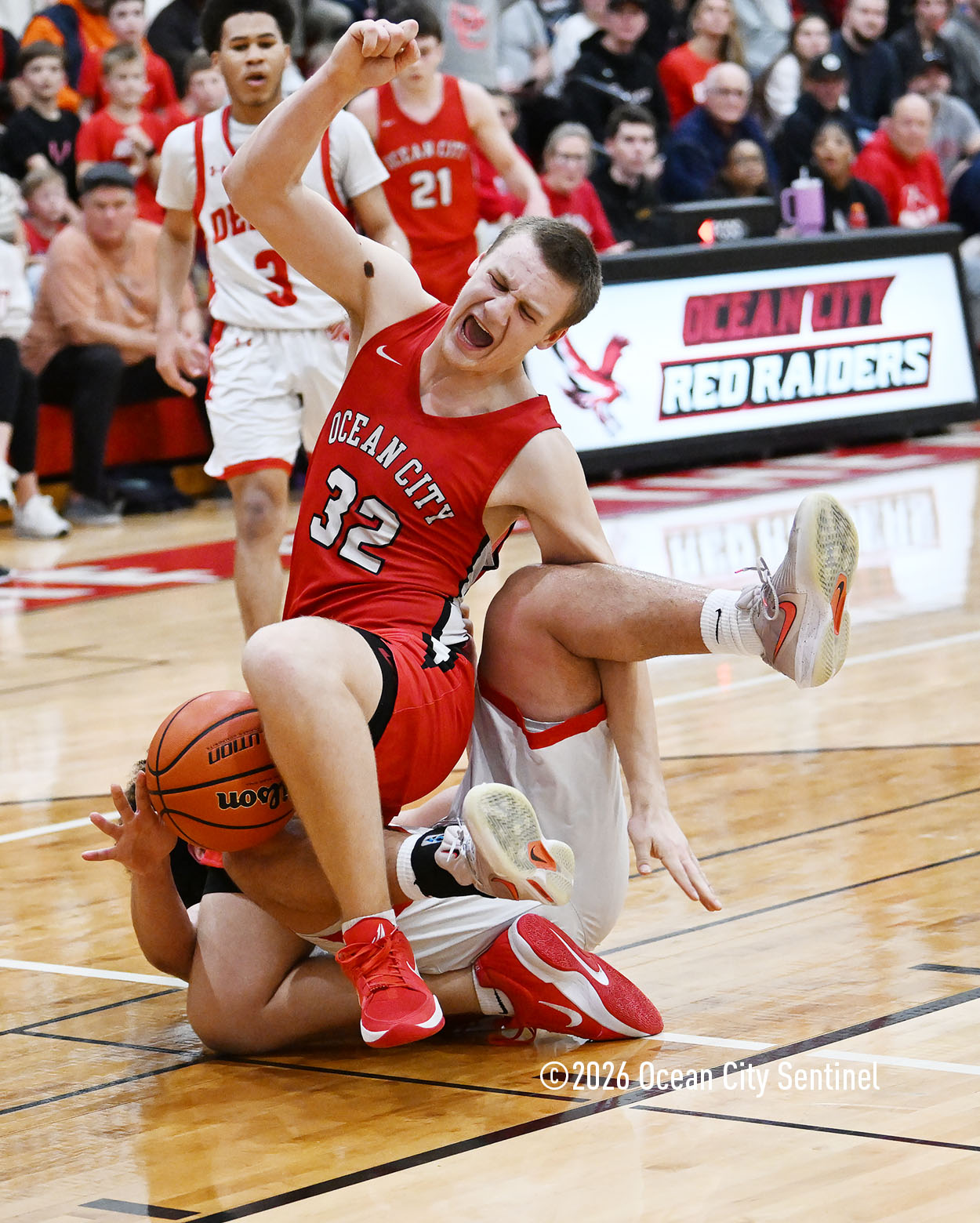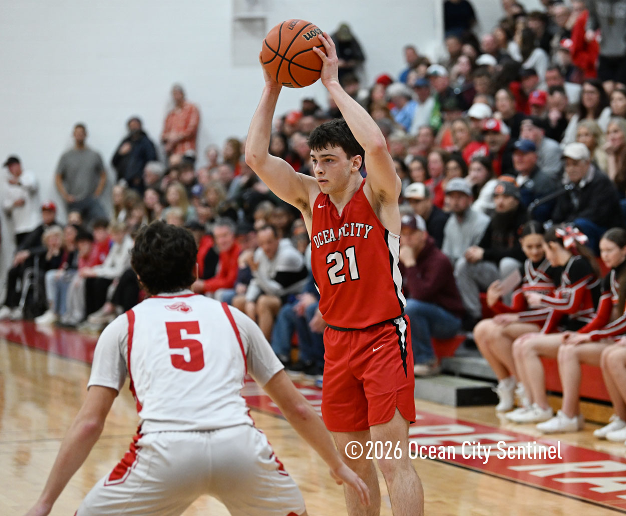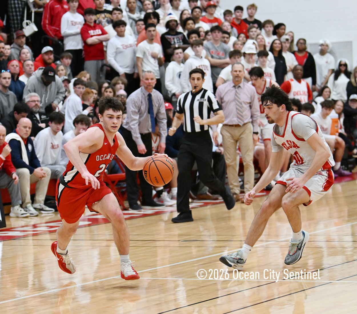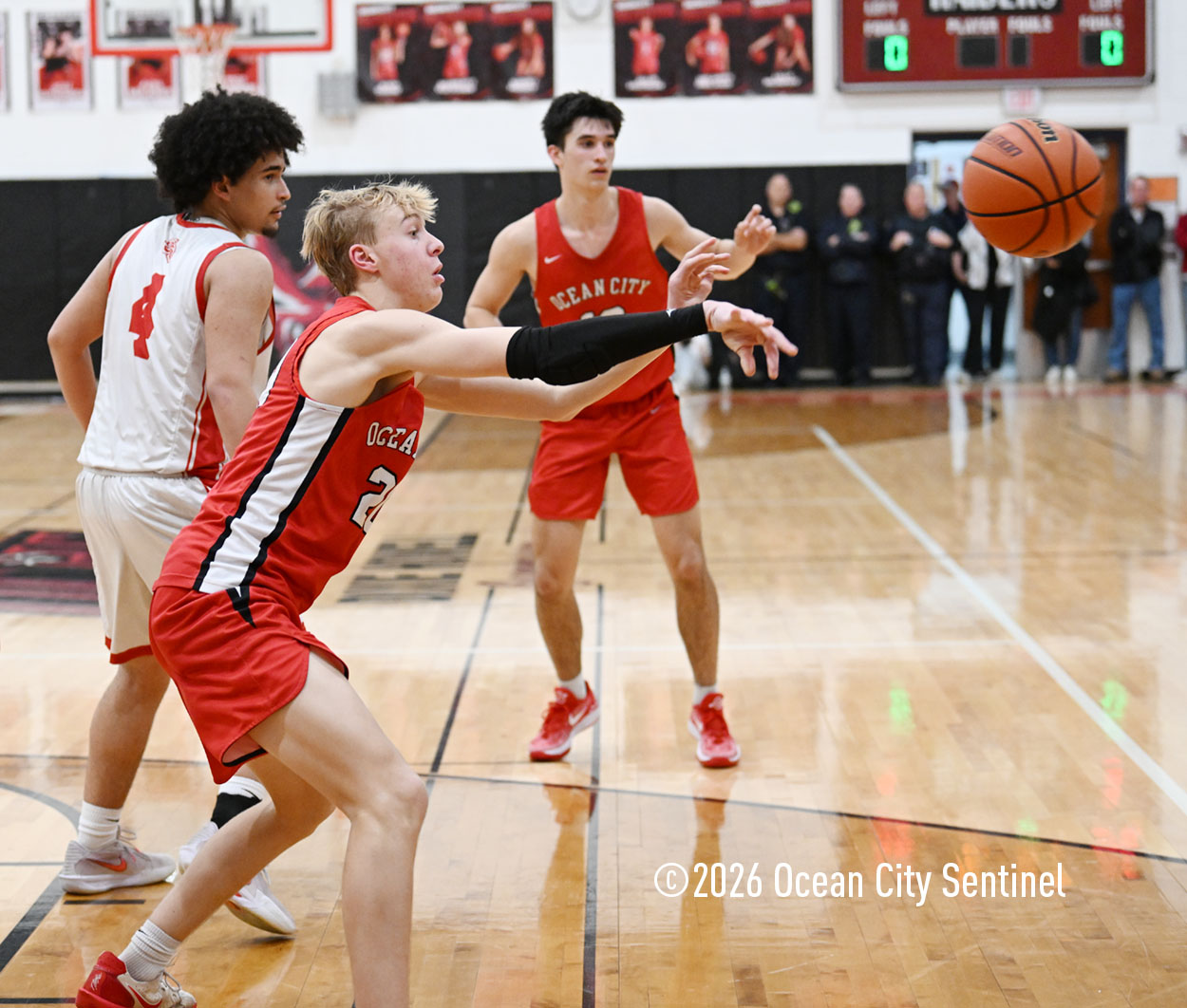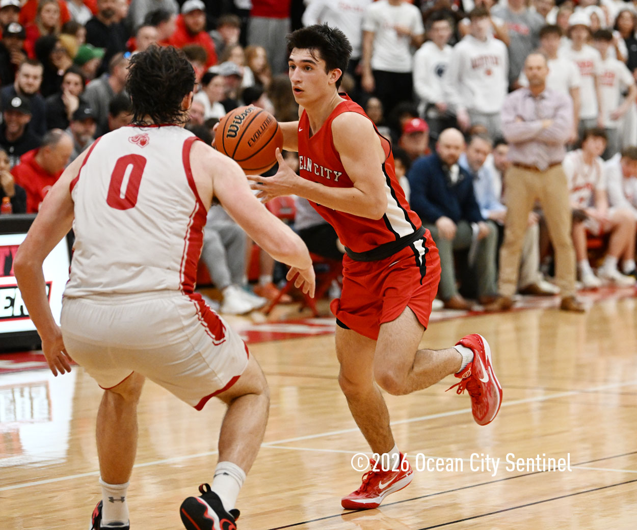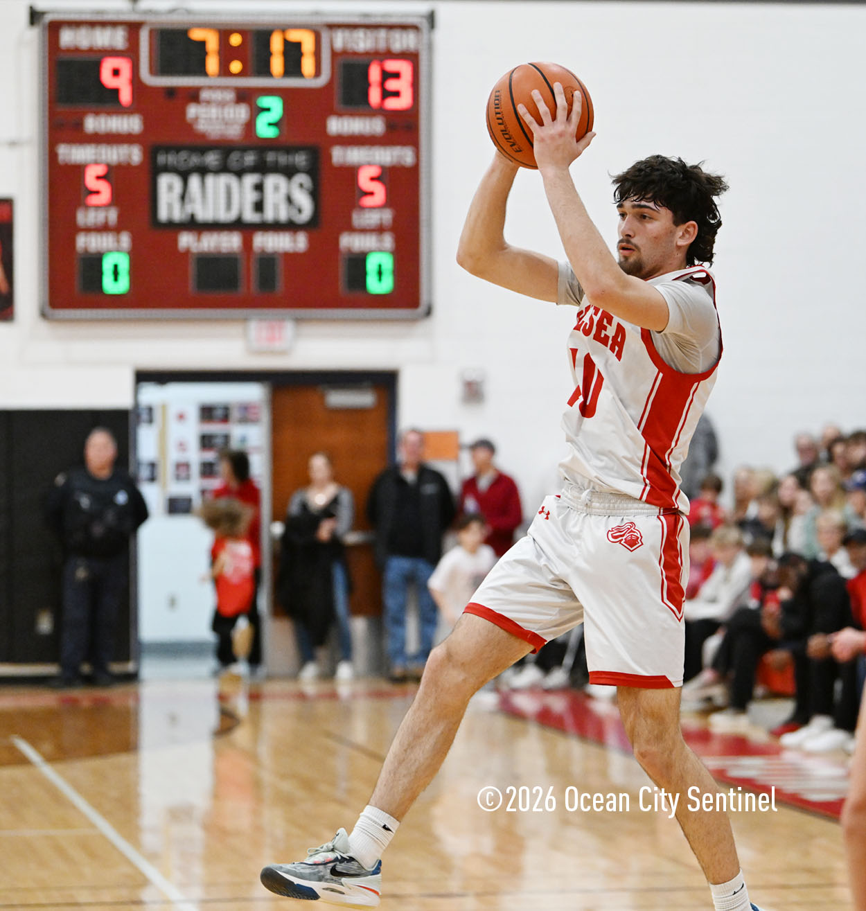 The Raiders seized control of the game in the second quarter and played nearly perfectly on both sides of the court. Ocean City trailed 17-11 with 6:20 remaining in the half but turned the tide after Luke Tjoumakaris stood tall and took a charge on defense.