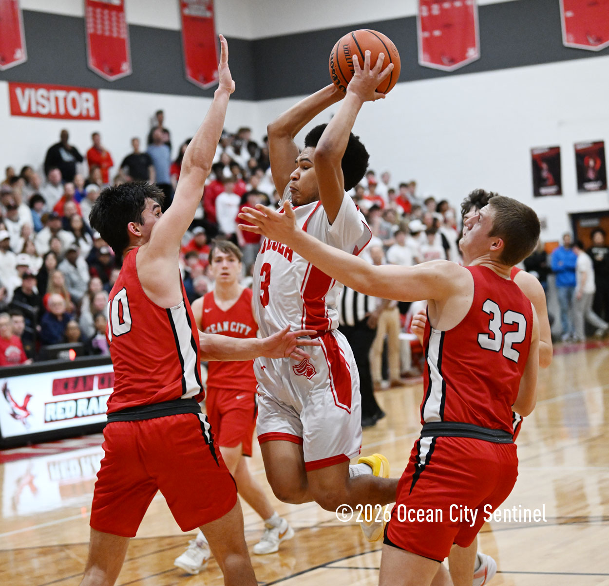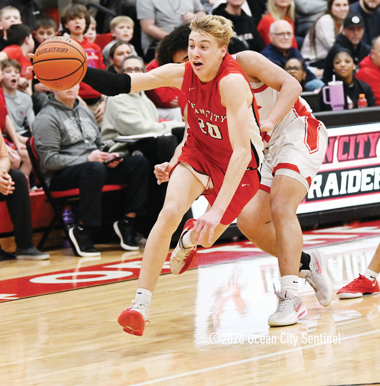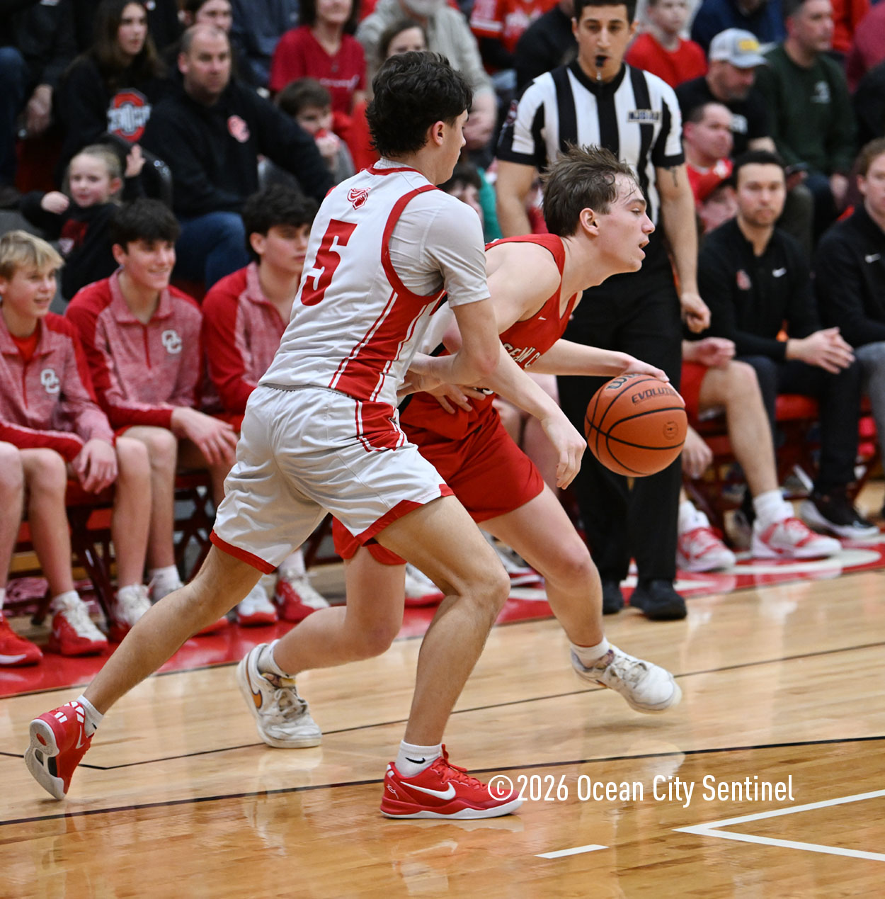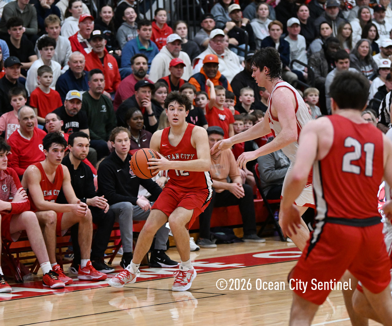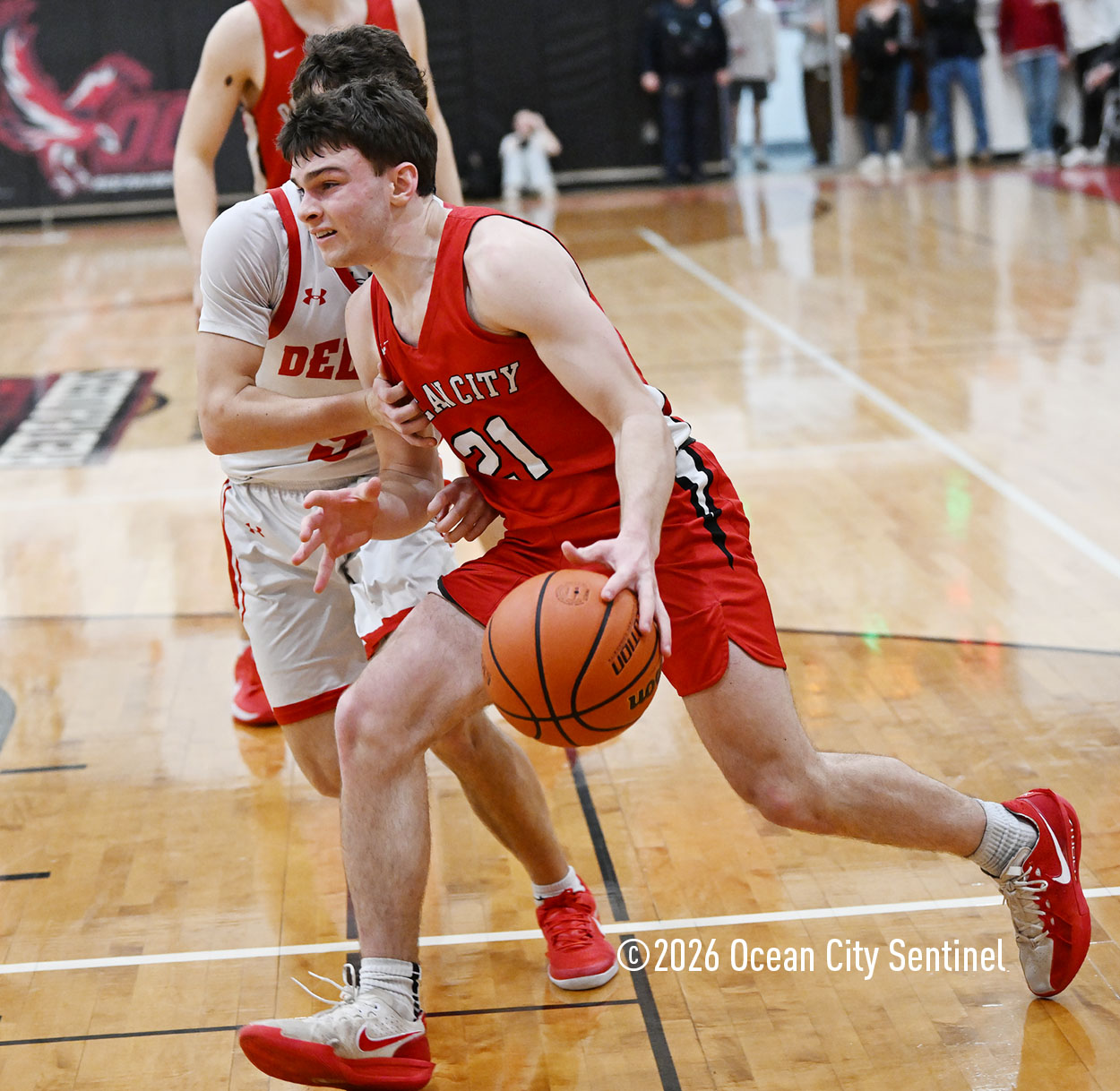 The Raiders seized control of the game in the second quarter and played nearly perfectly on both sides of the court. Ocean City trailed 17-11 with 6:20 remaining in the half but turned the tide after Luke Tjoumakaris stood tall and took a charge on defense.