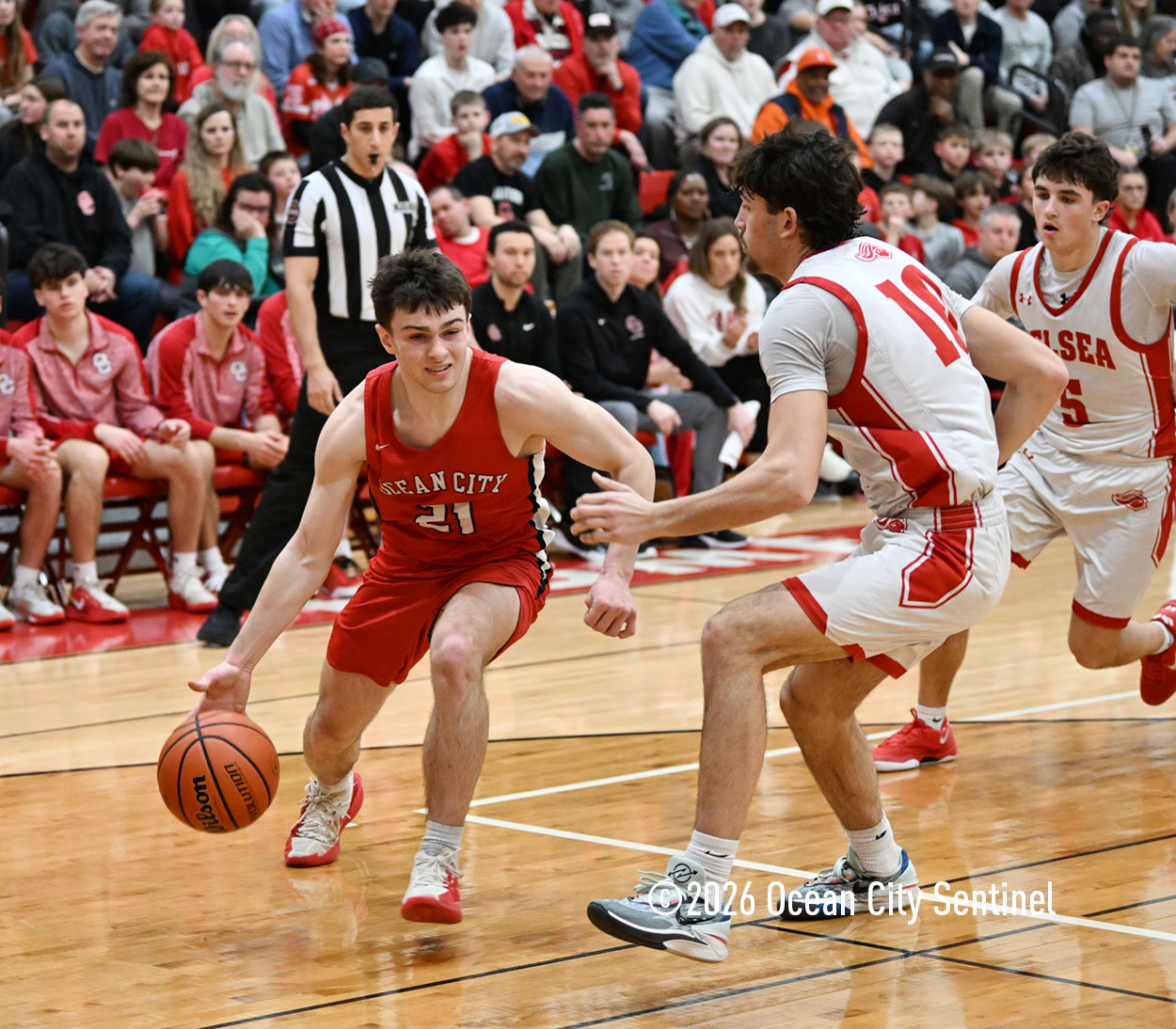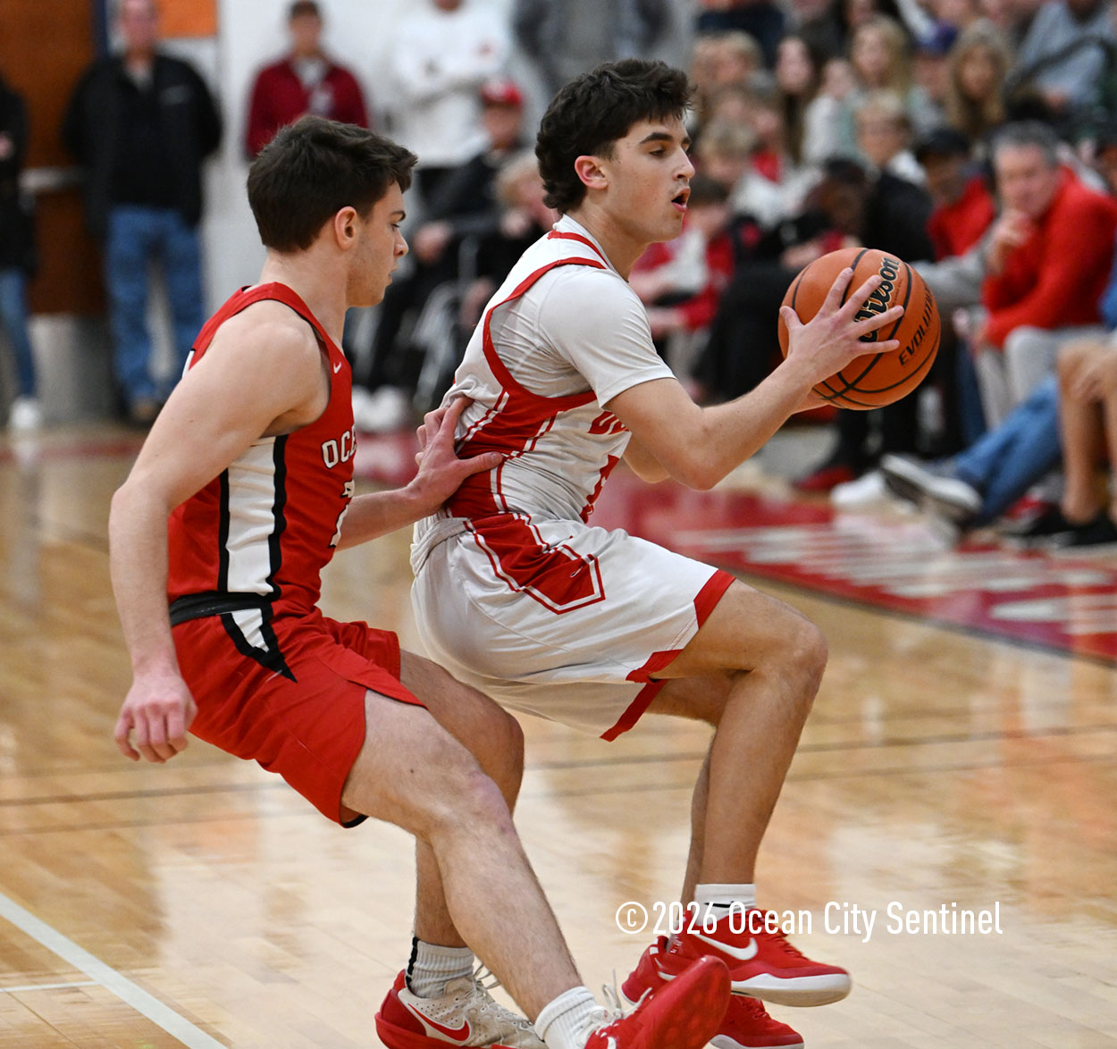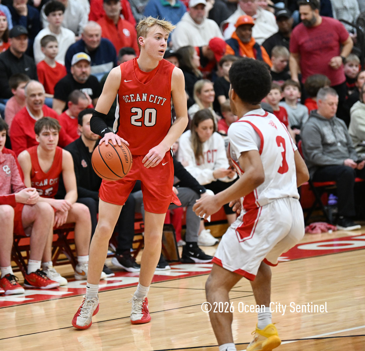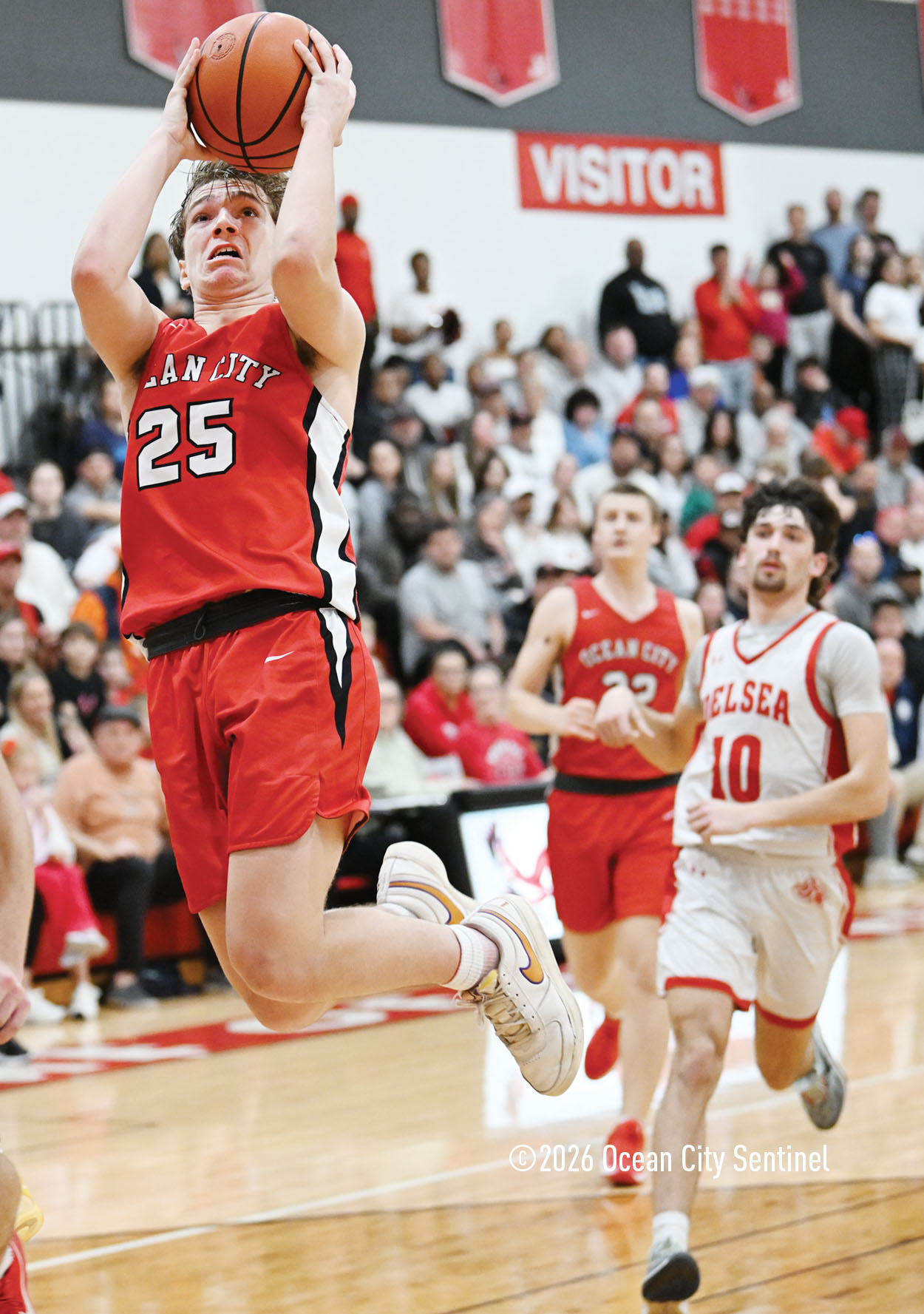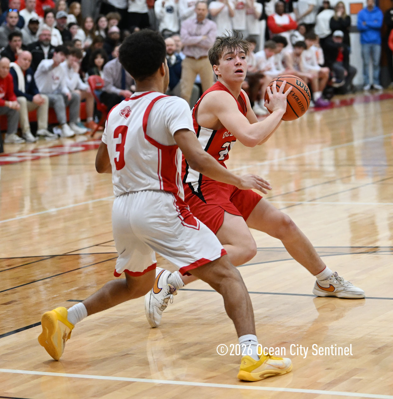 The Raiders seized control of the game in the second quarter and played nearly perfectly on both sides of the court. Ocean City trailed 17-11 with 6:20 remaining in the half but turned the tide after Luke Tjoumakaris stood tall and took a charge on defense.