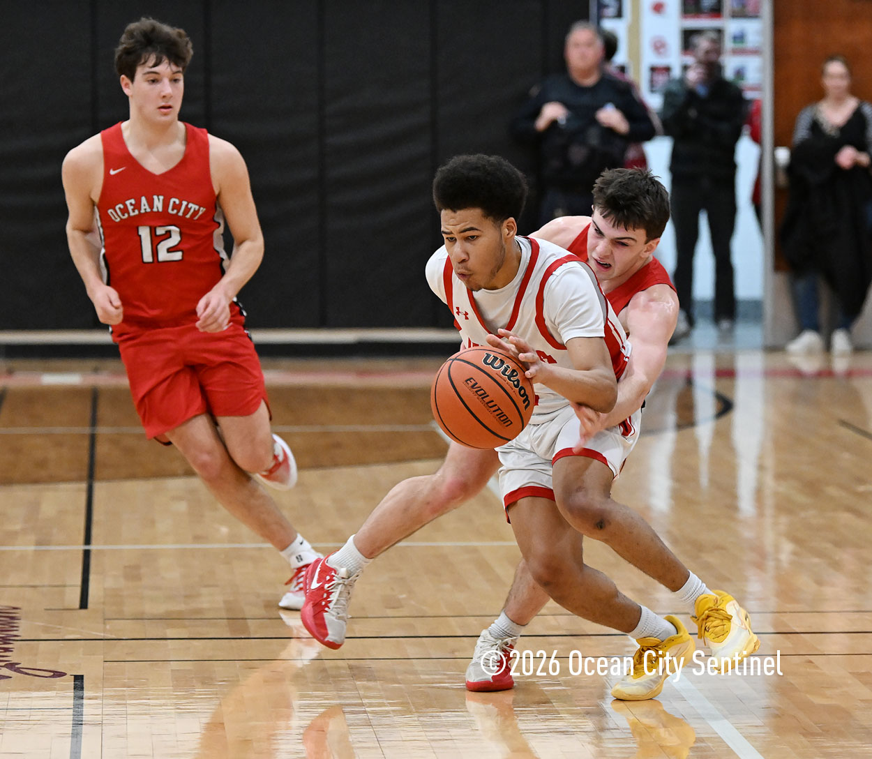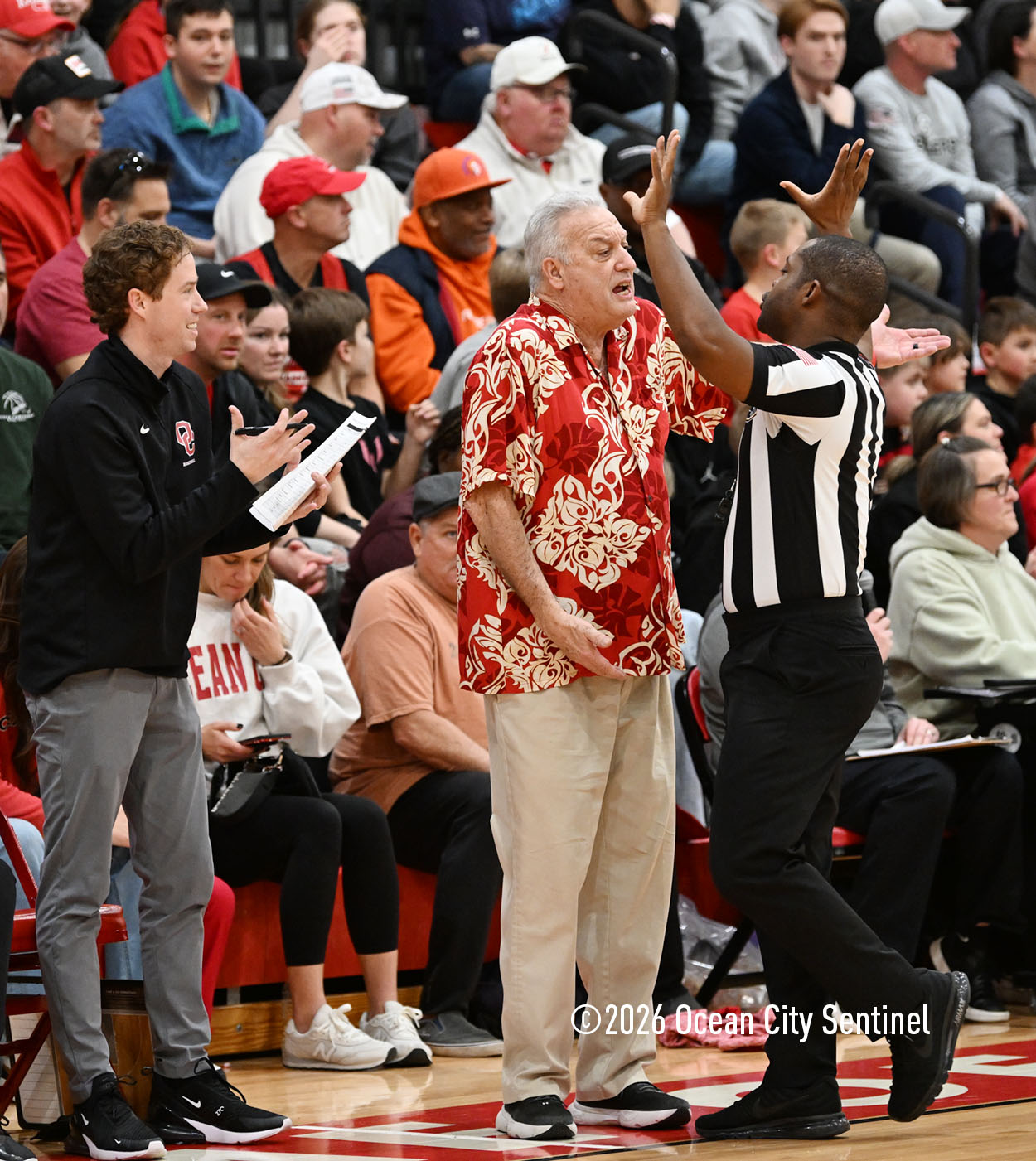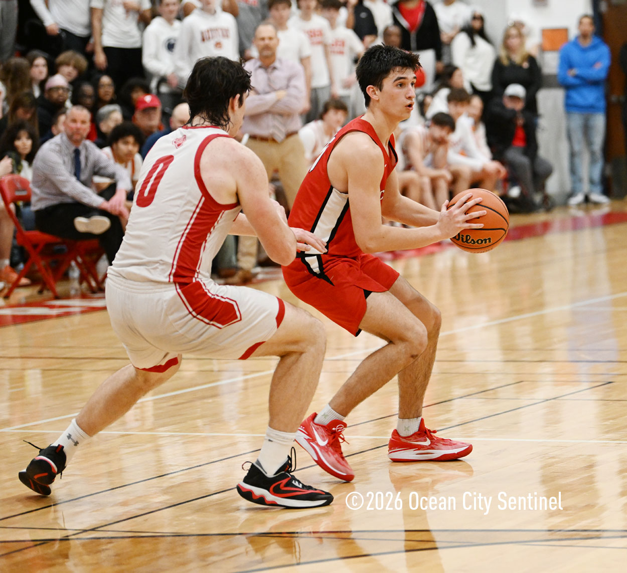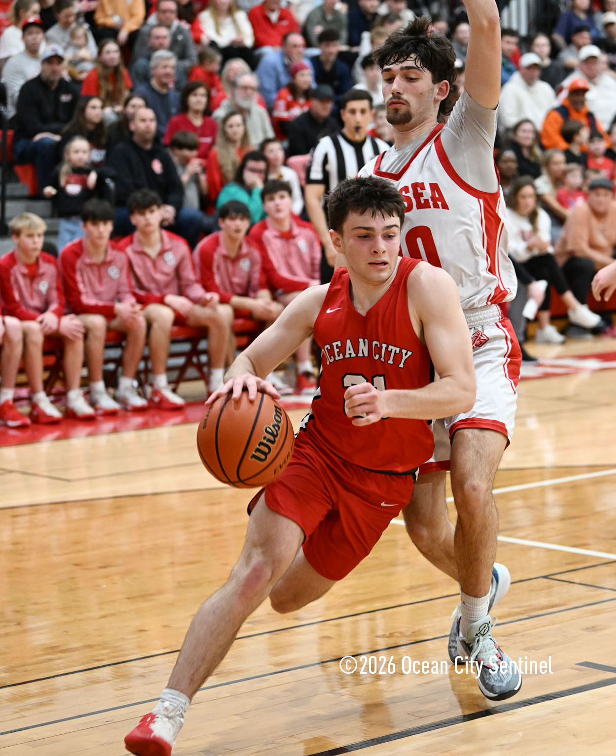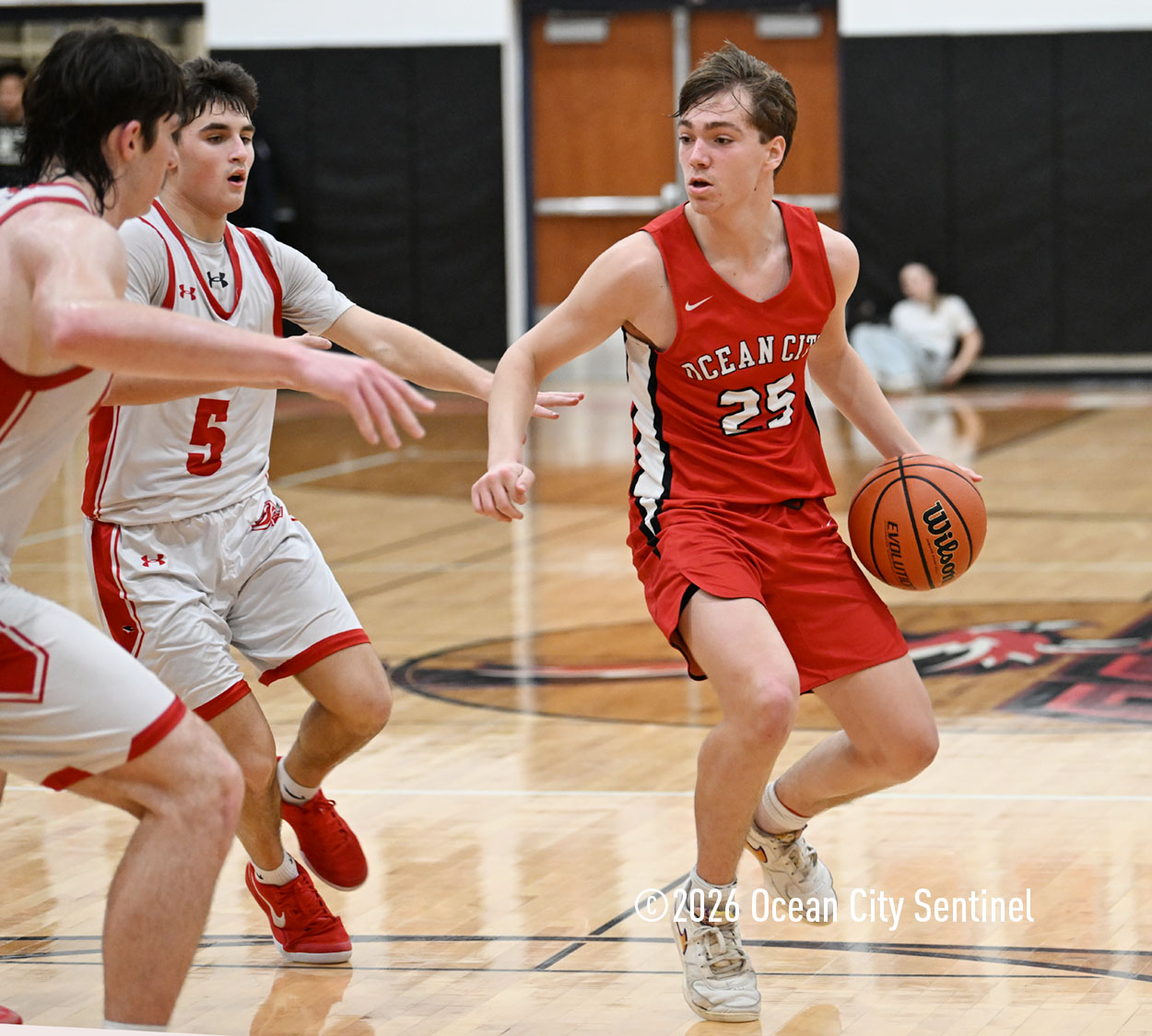The Raiders seized control of the game in the second quarter and played nearly perfectly on both sides of the court. Ocean City trailed 17-11 with 6:20 remaining in the half but turned the tide after Luke Tjoumakaris stood tall and took a charge on defense.
