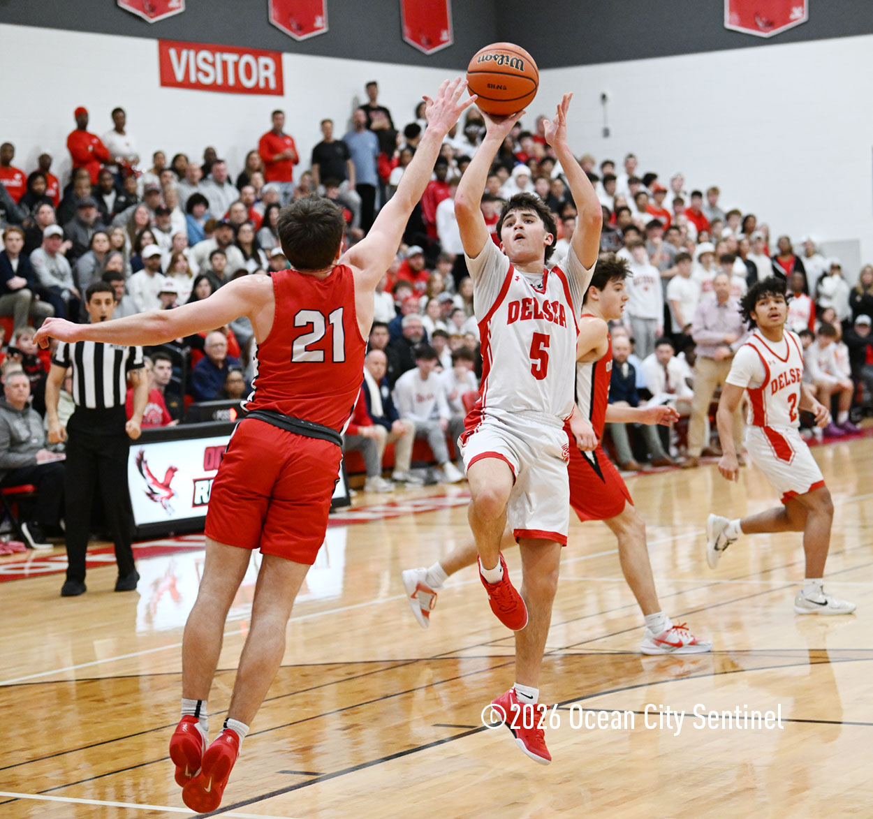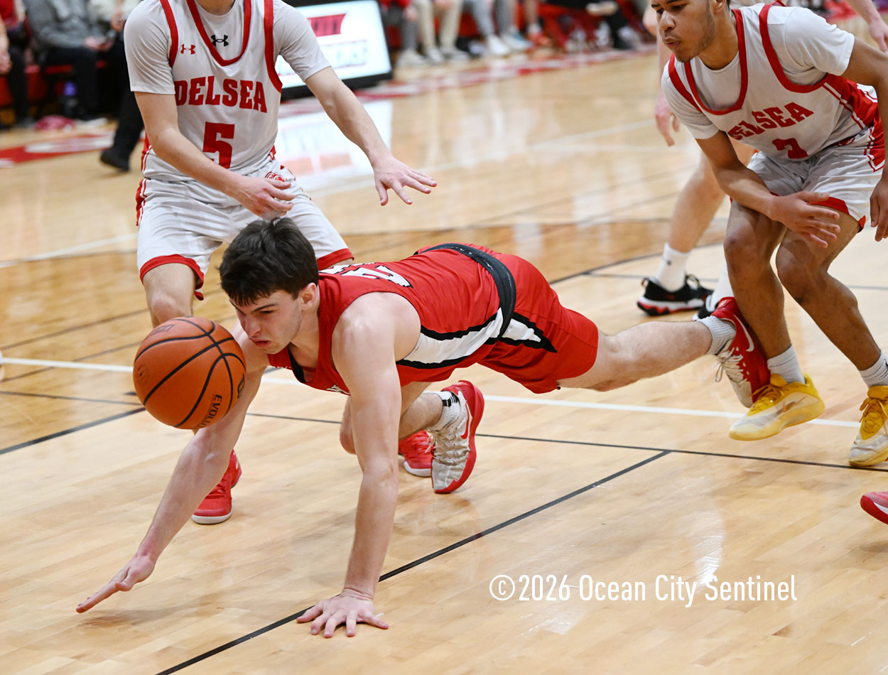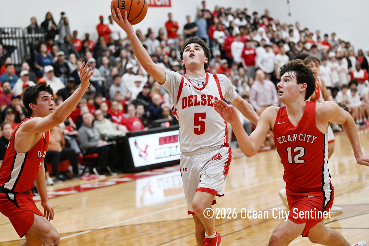 Ocean City’s defense stepped up and shut out Delsea for the remainder of the second quarter. Lappin and Tjoumakaris brought the energy from that side of the court to the other and scored 13 unanswered points to go into the lockerroom at halftime up 24-17.