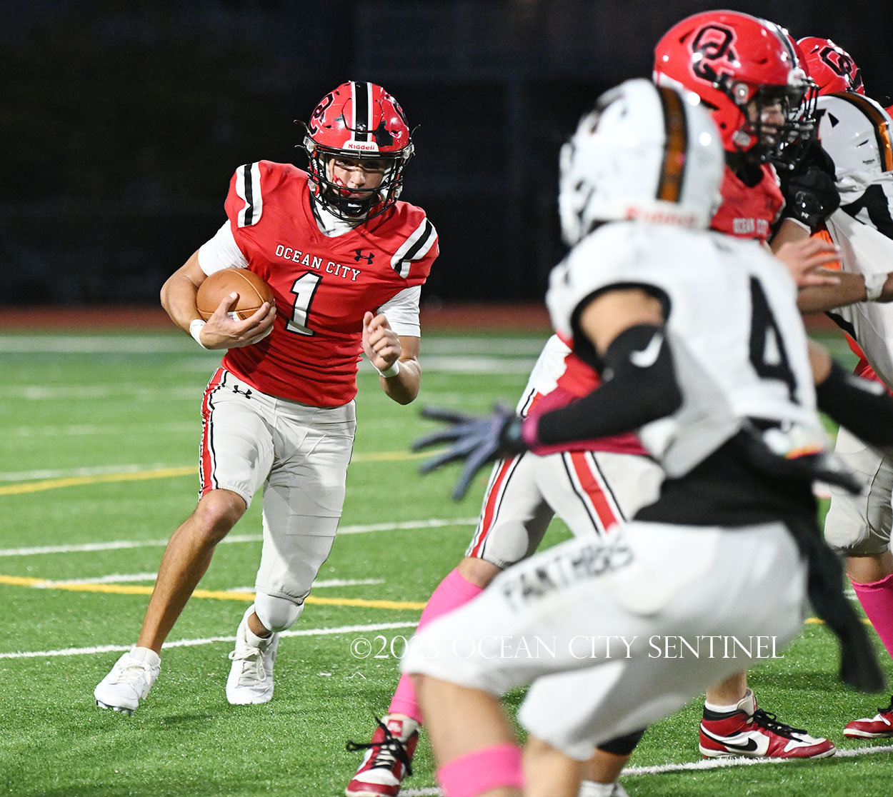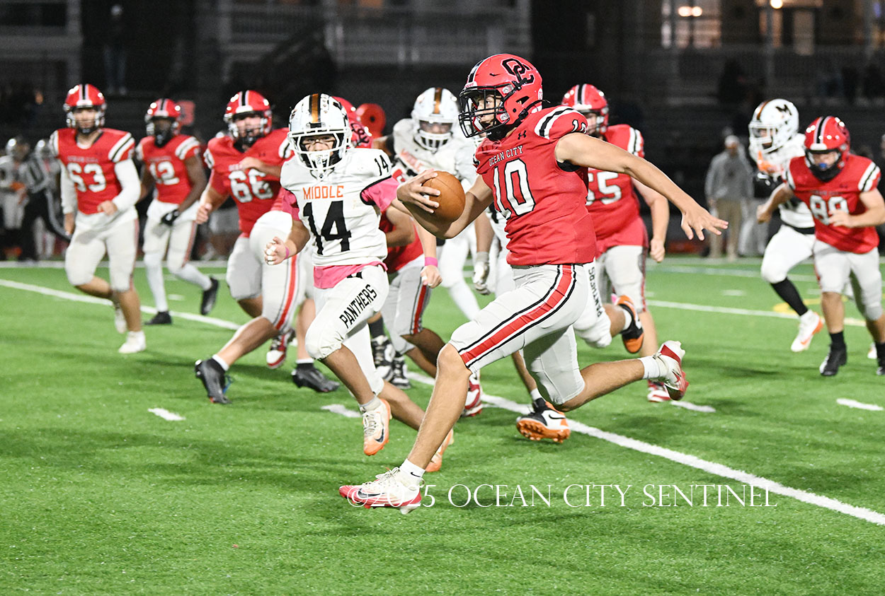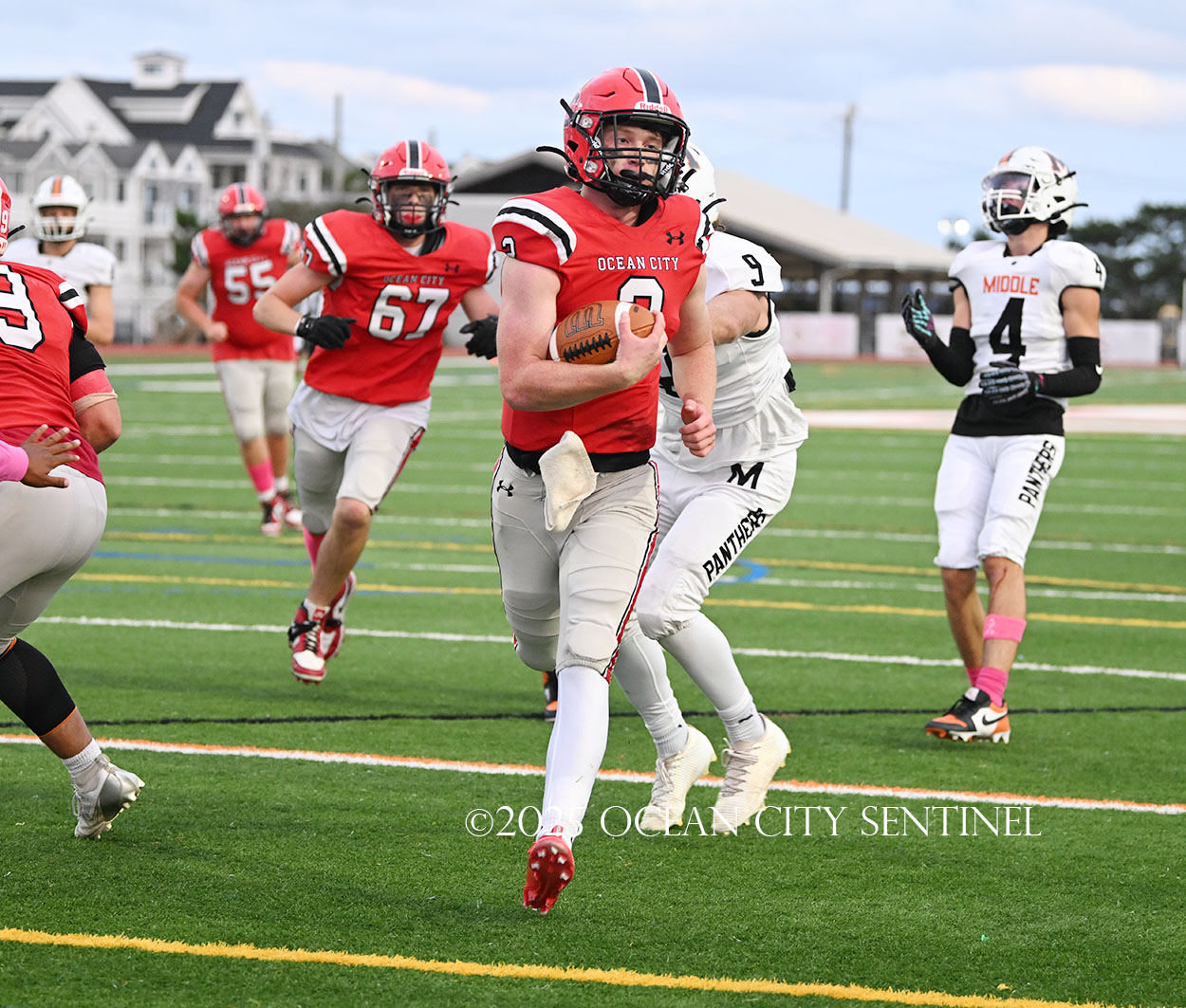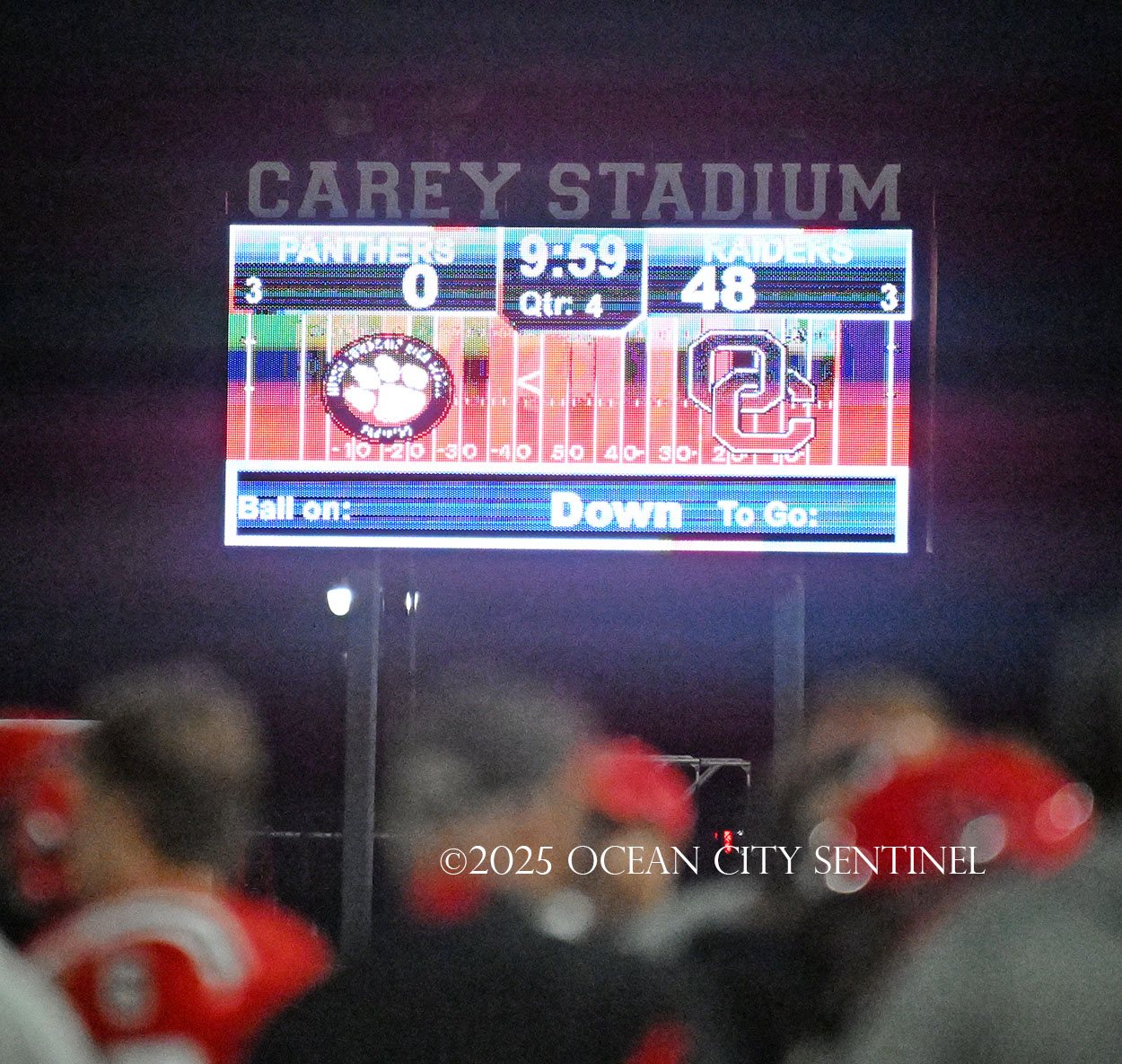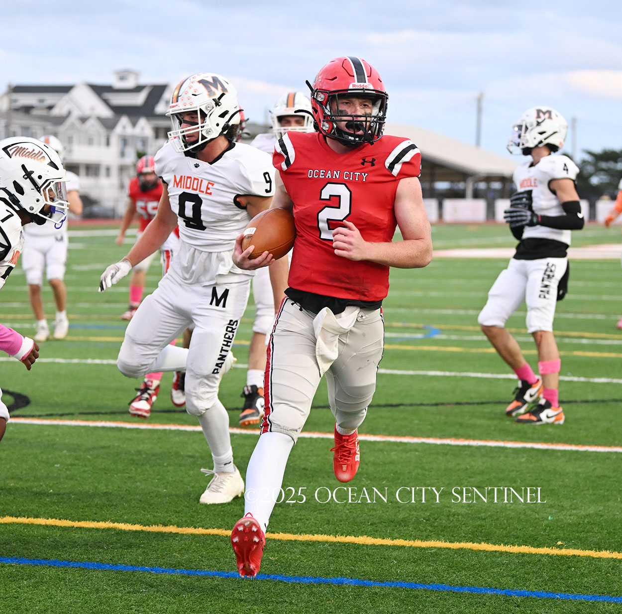 After a disappointing loss the previous week to the Mainland Mustangs, the Raiders bounced back with a clean and efficient 48-0 win over Middle Township High School in the homecoming game Oct. 10. Ocean City’s offense scored seven touchdowns on the first eight drives of the game to cruise past the Panthers.