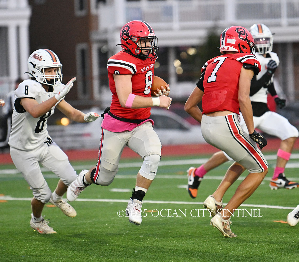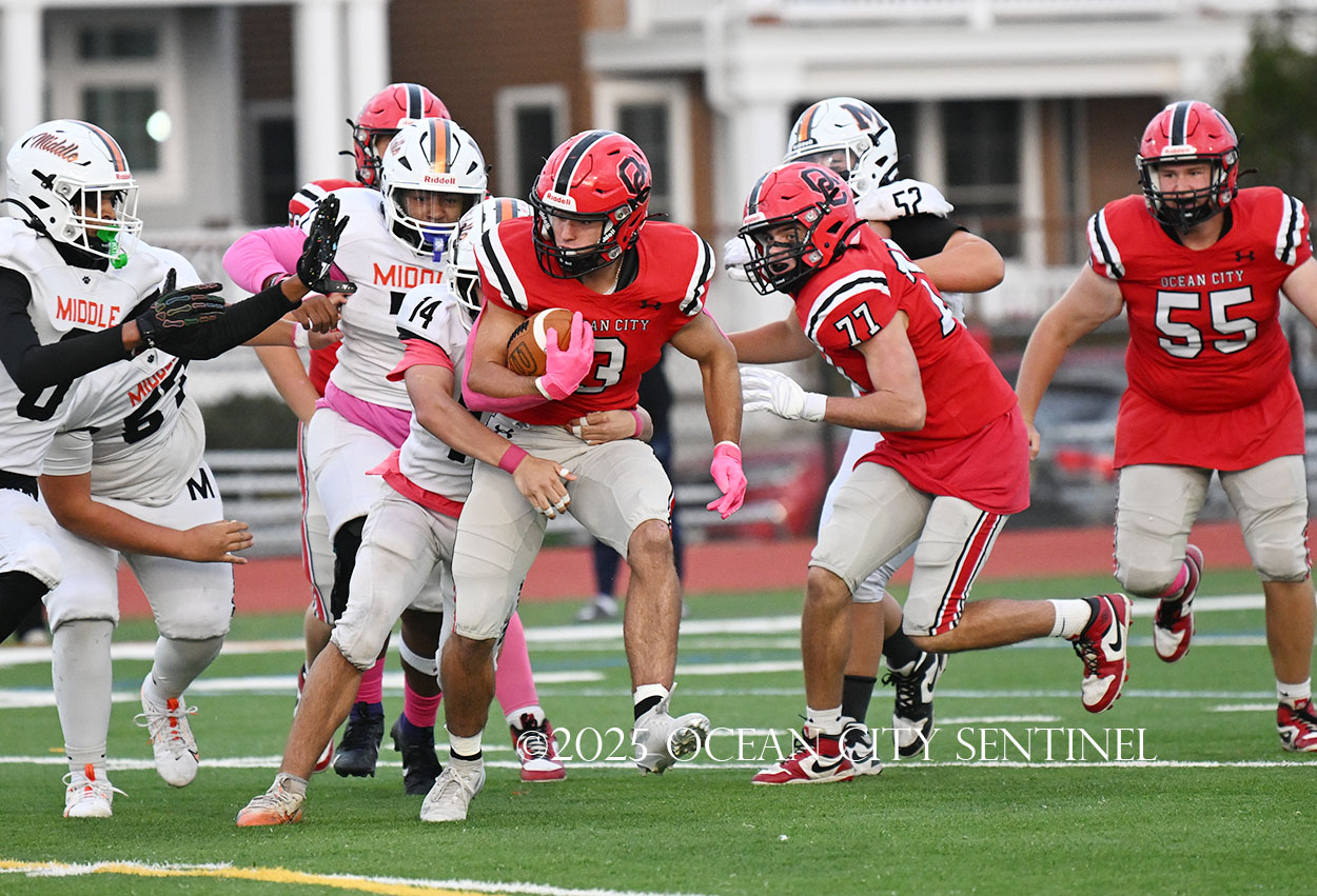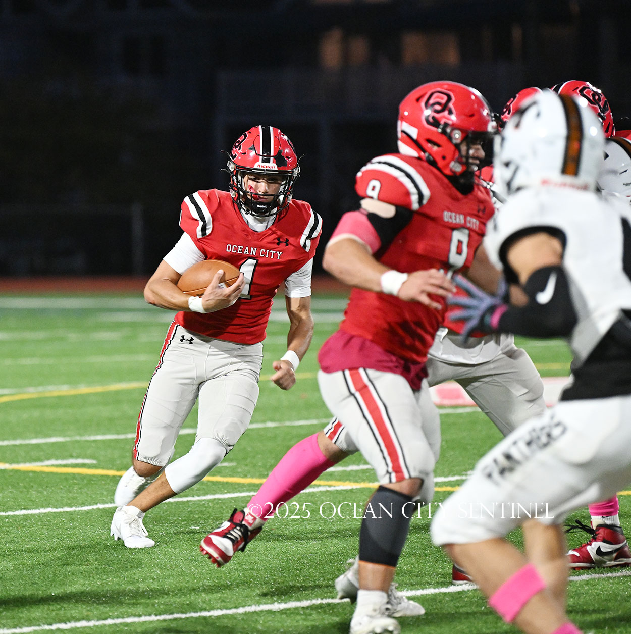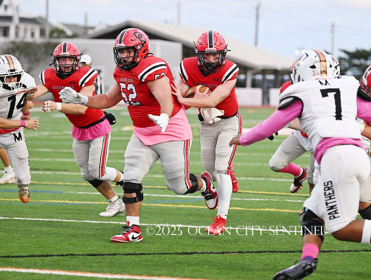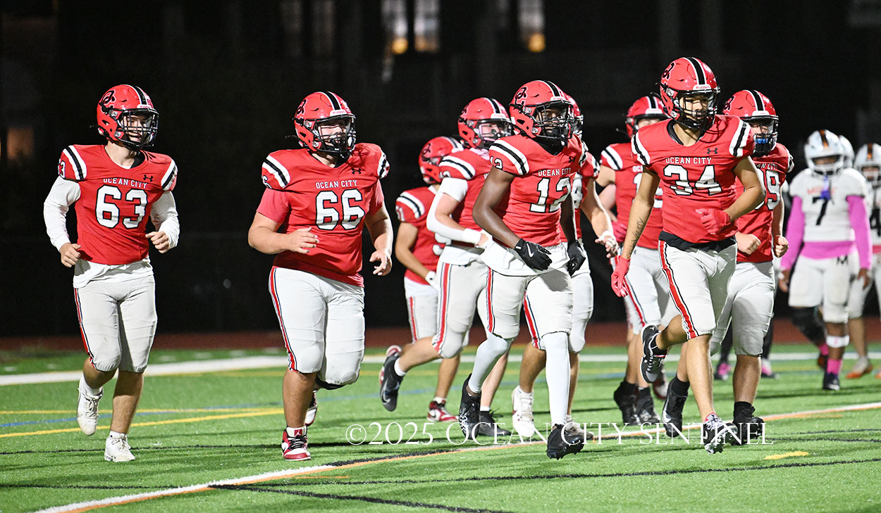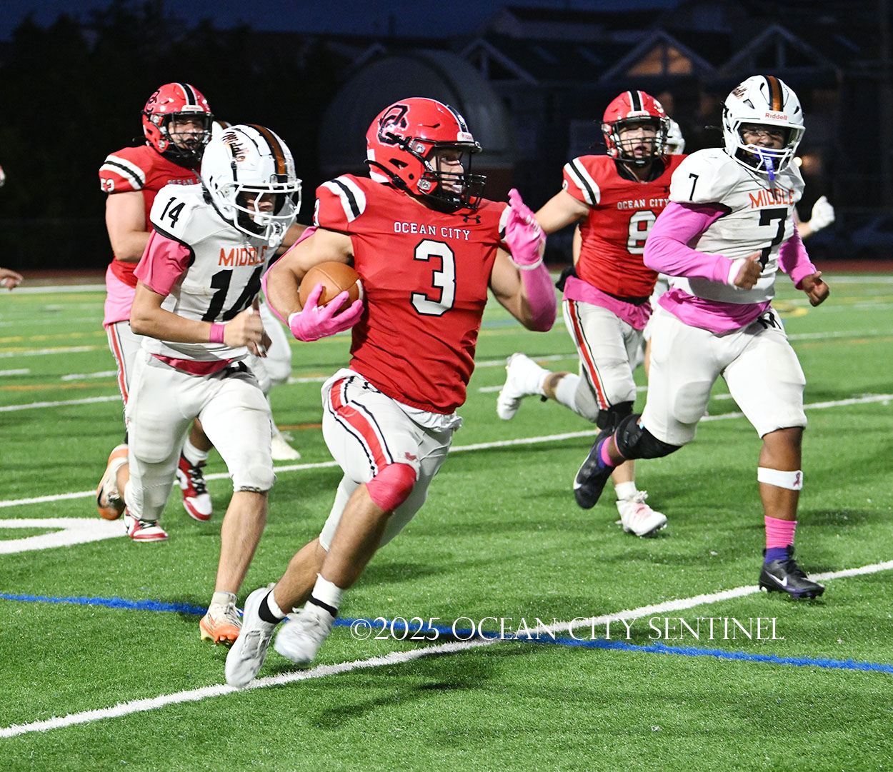 After a disappointing loss the previous week to the Mainland Mustangs, the Raiders bounced back with a clean and efficient 48-0 win over Middle Township High School in the homecoming game Oct. 10. Ocean City’s offense scored seven touchdowns on the first eight drives of the game to cruise past the Panthers.