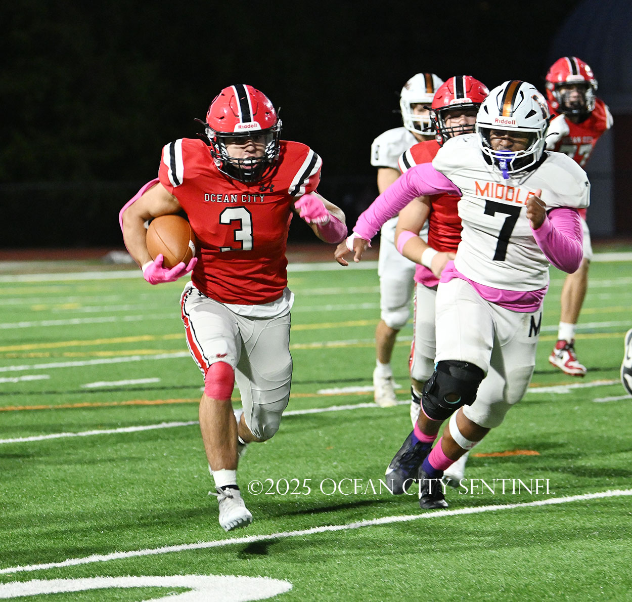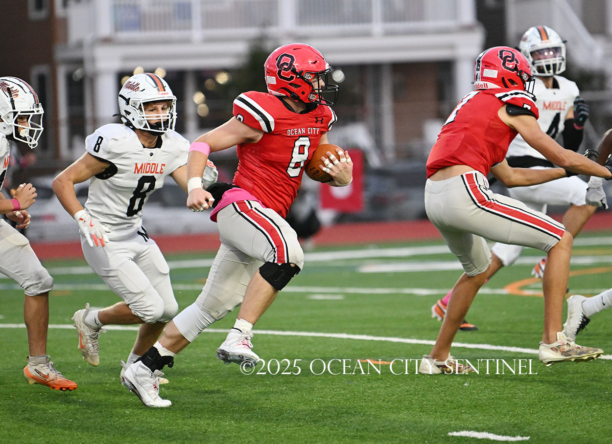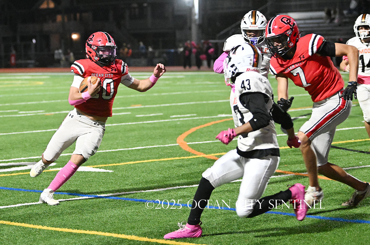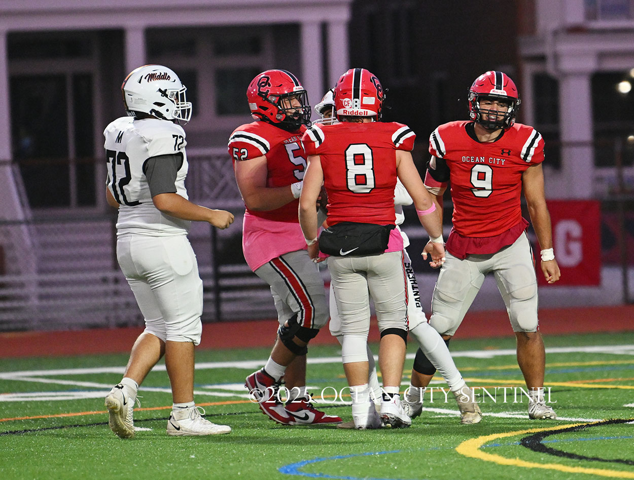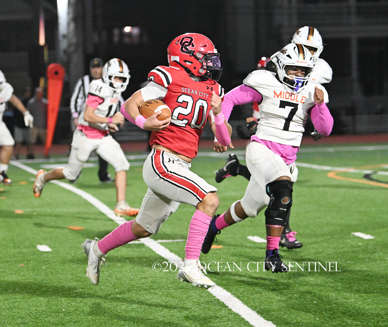 After a disappointing loss the previous week to the Mainland Mustangs, the Raiders bounced back with a clean and efficient 48-0 win over Middle Township High School in the homecoming game Oct. 10. Ocean City’s offense scored seven touchdowns on the first eight drives of the game to cruise past the Panthers.