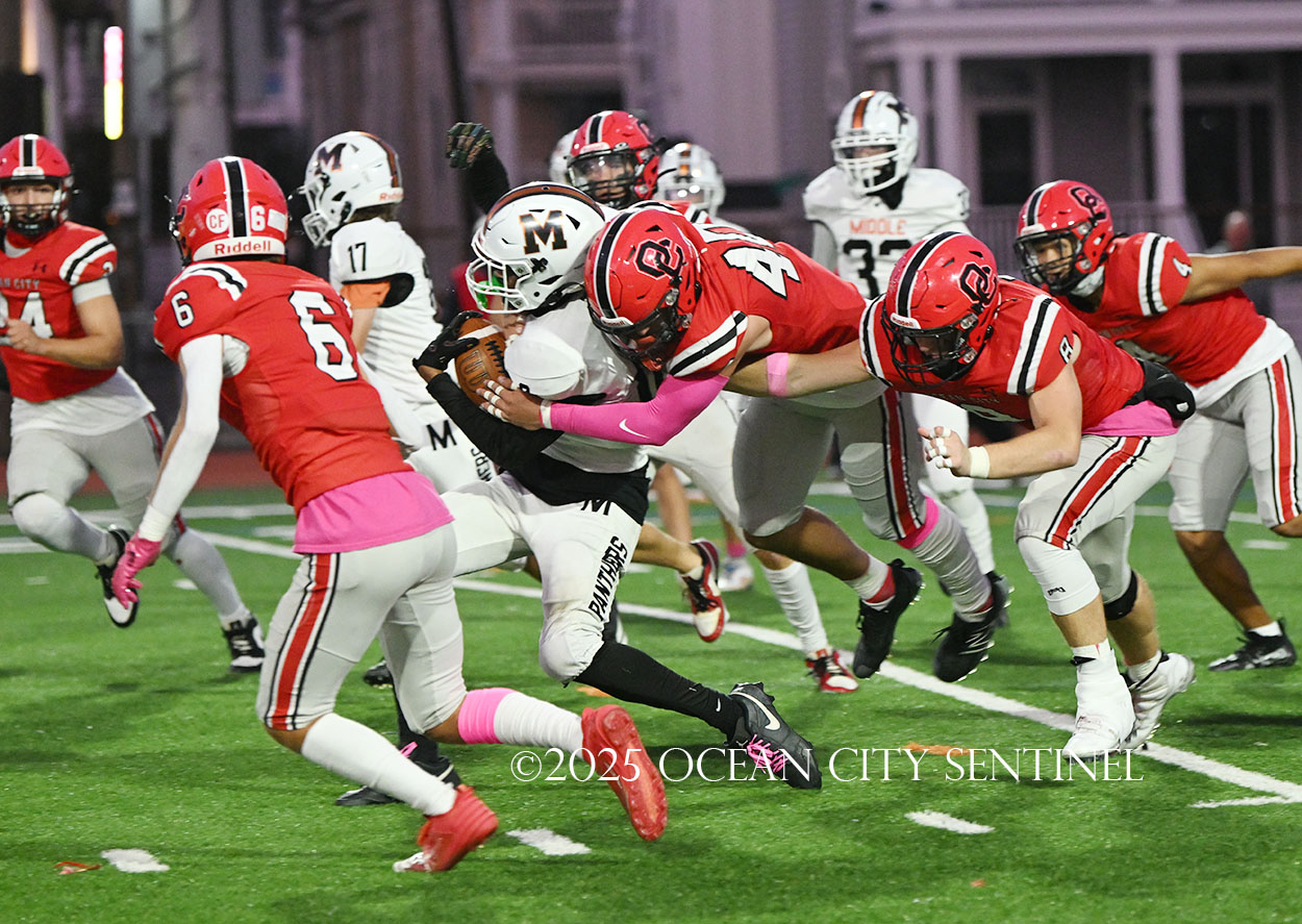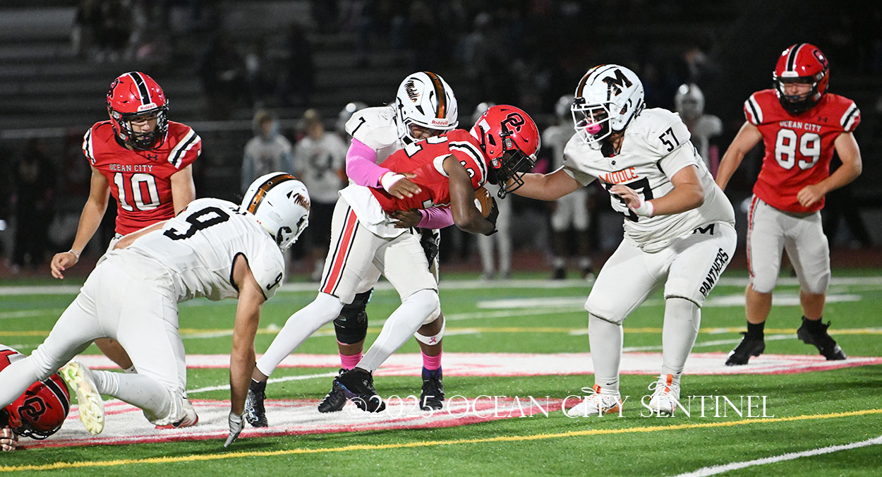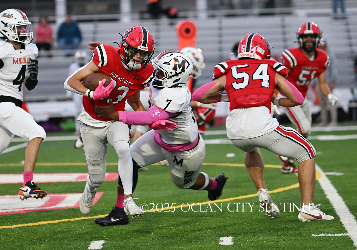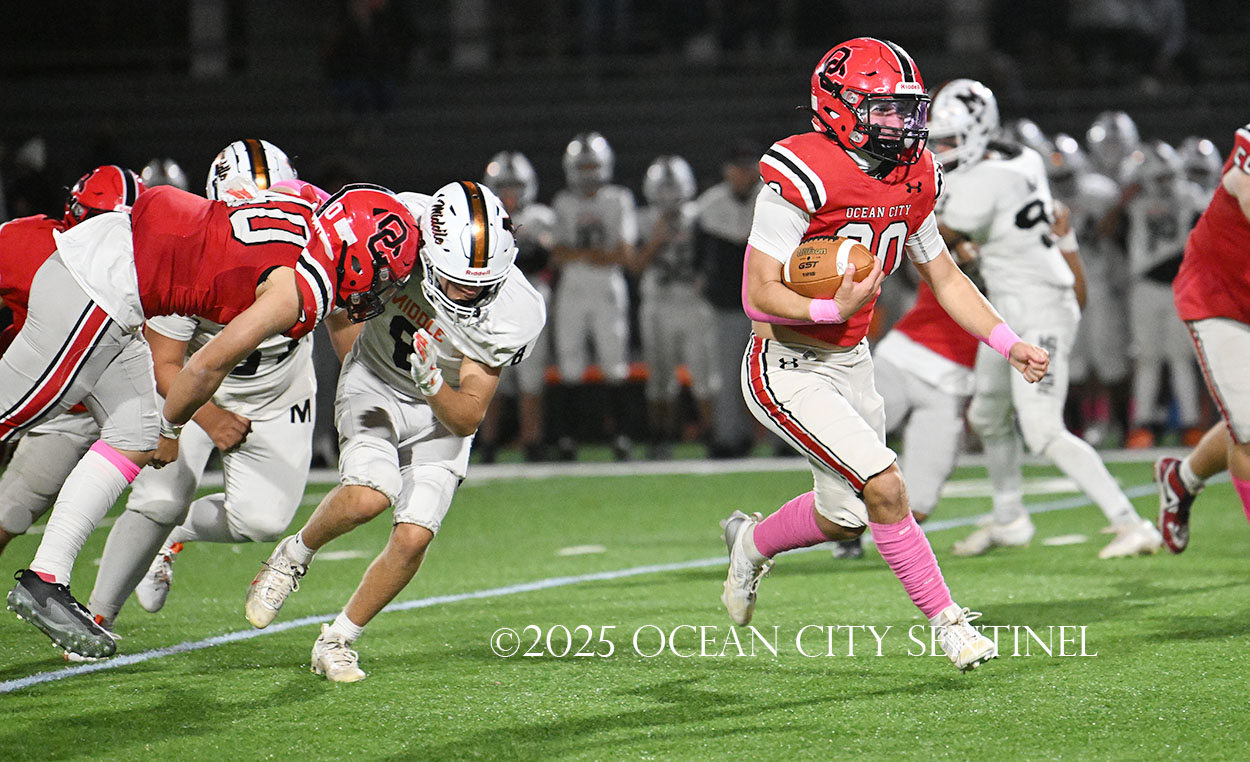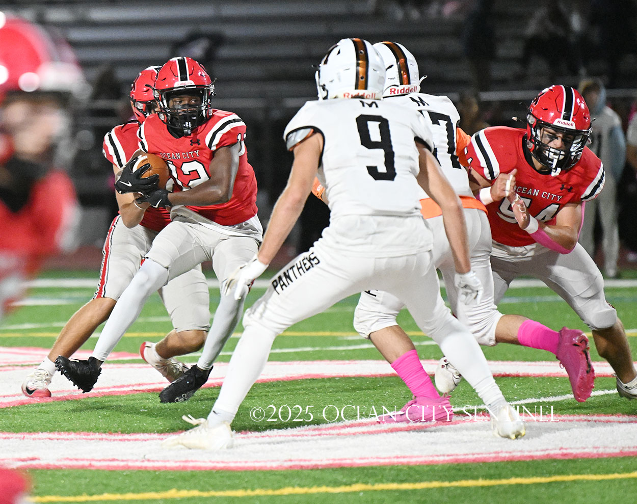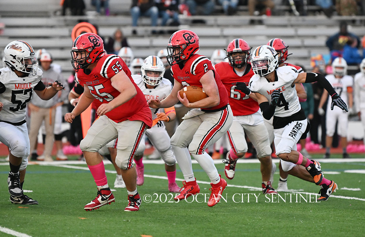 After a disappointing loss the previous week to the Mainland Mustangs, the Raiders bounced back with a clean and efficient 48-0 win over Middle Township High School in the homecoming game Oct. 10. Ocean City’s offense scored seven touchdowns on the first eight drives of the game to cruise past the Panthers.