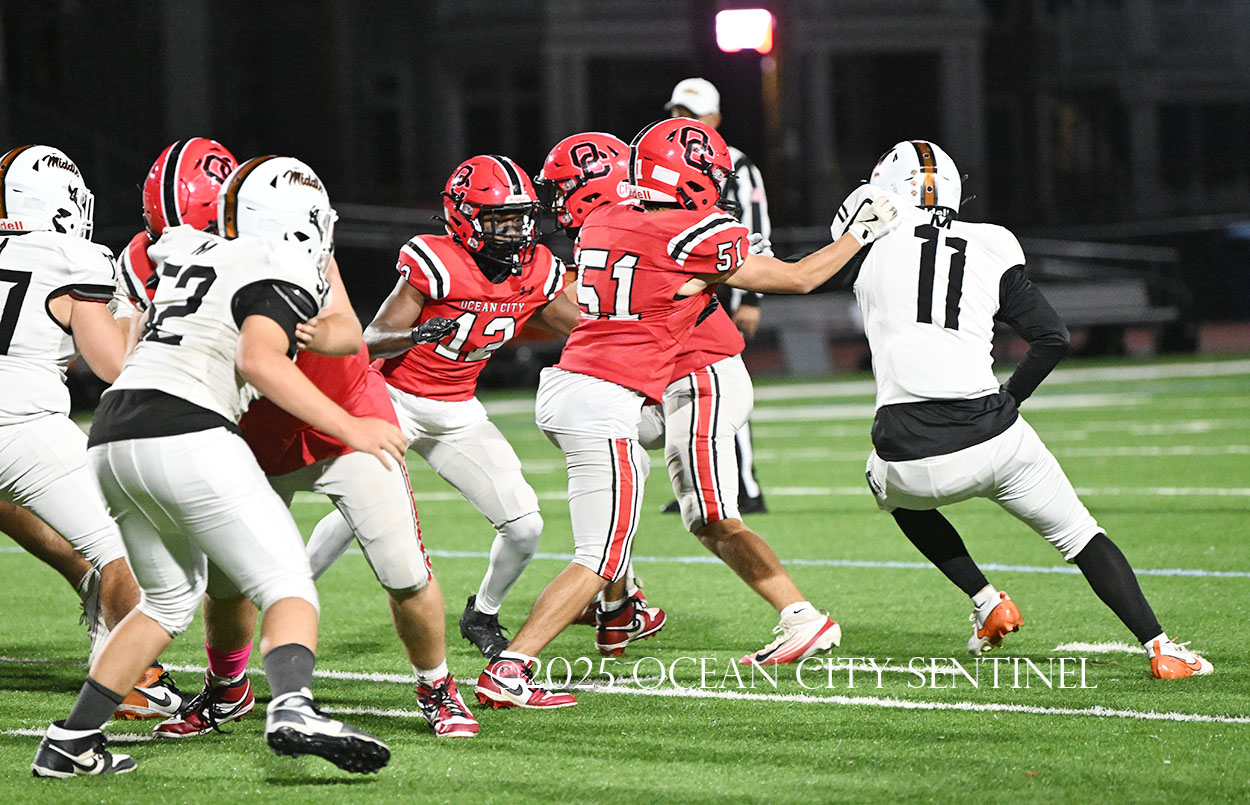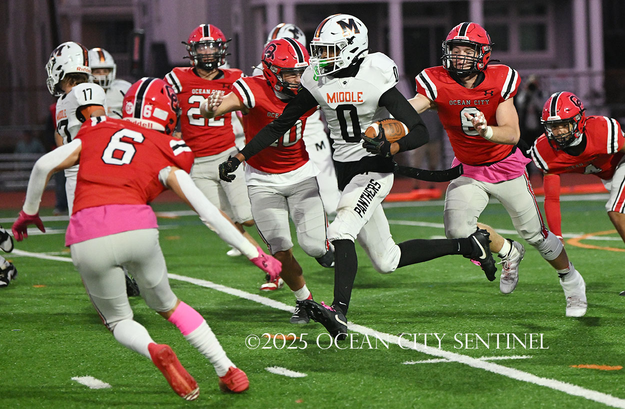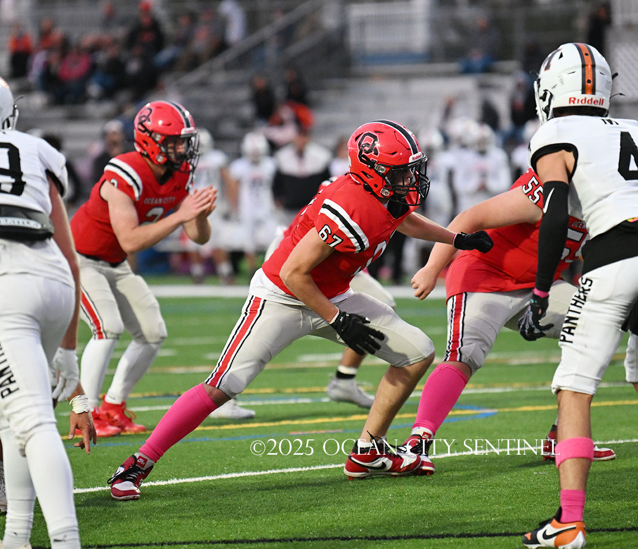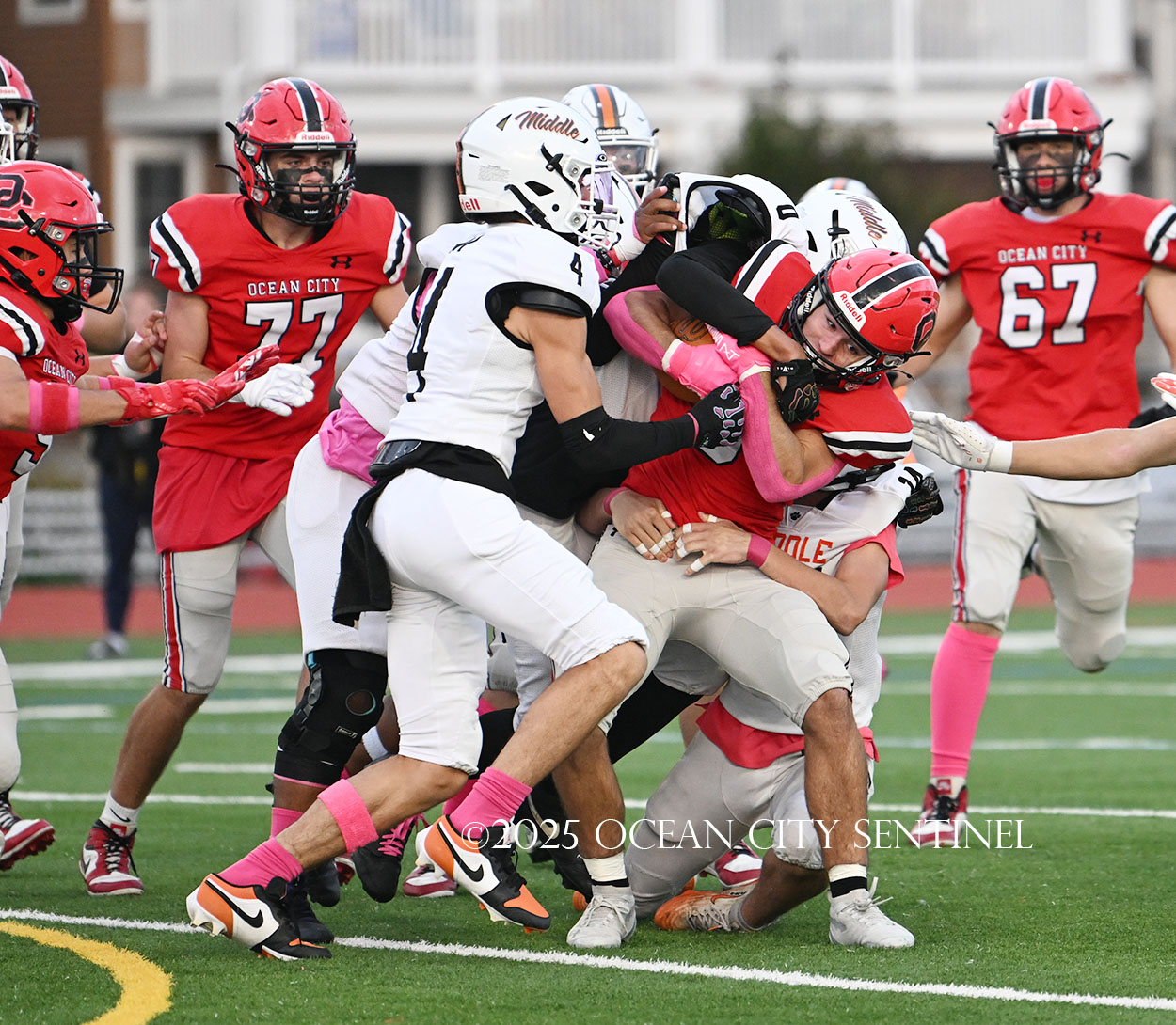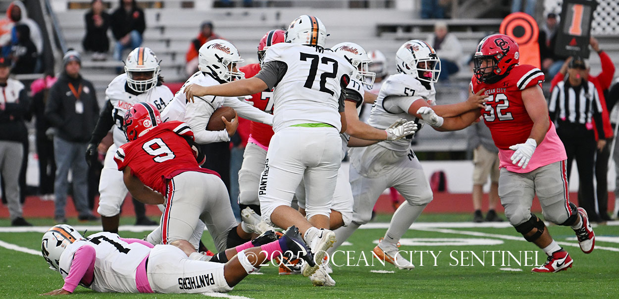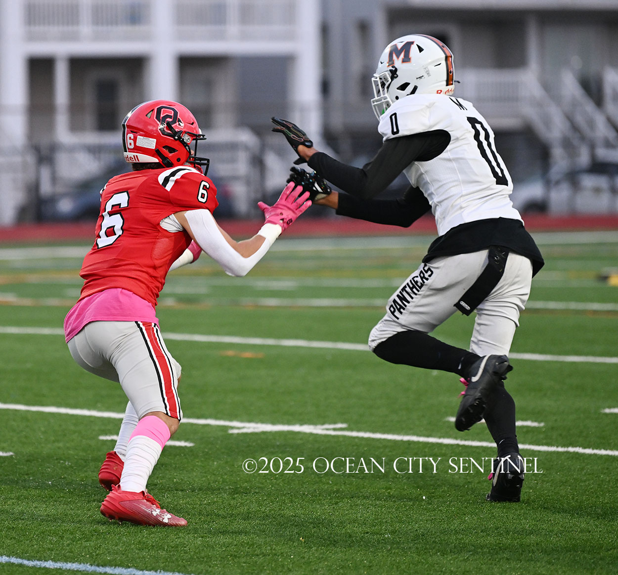 After a disappointing loss the previous week to the Mainland Mustangs, the Raiders bounced back with a clean and efficient 48-0 win over Middle Township High School in the homecoming game Oct. 10. Ocean City’s offense scored seven touchdowns on the first eight drives of the game to cruise past the Panthers.