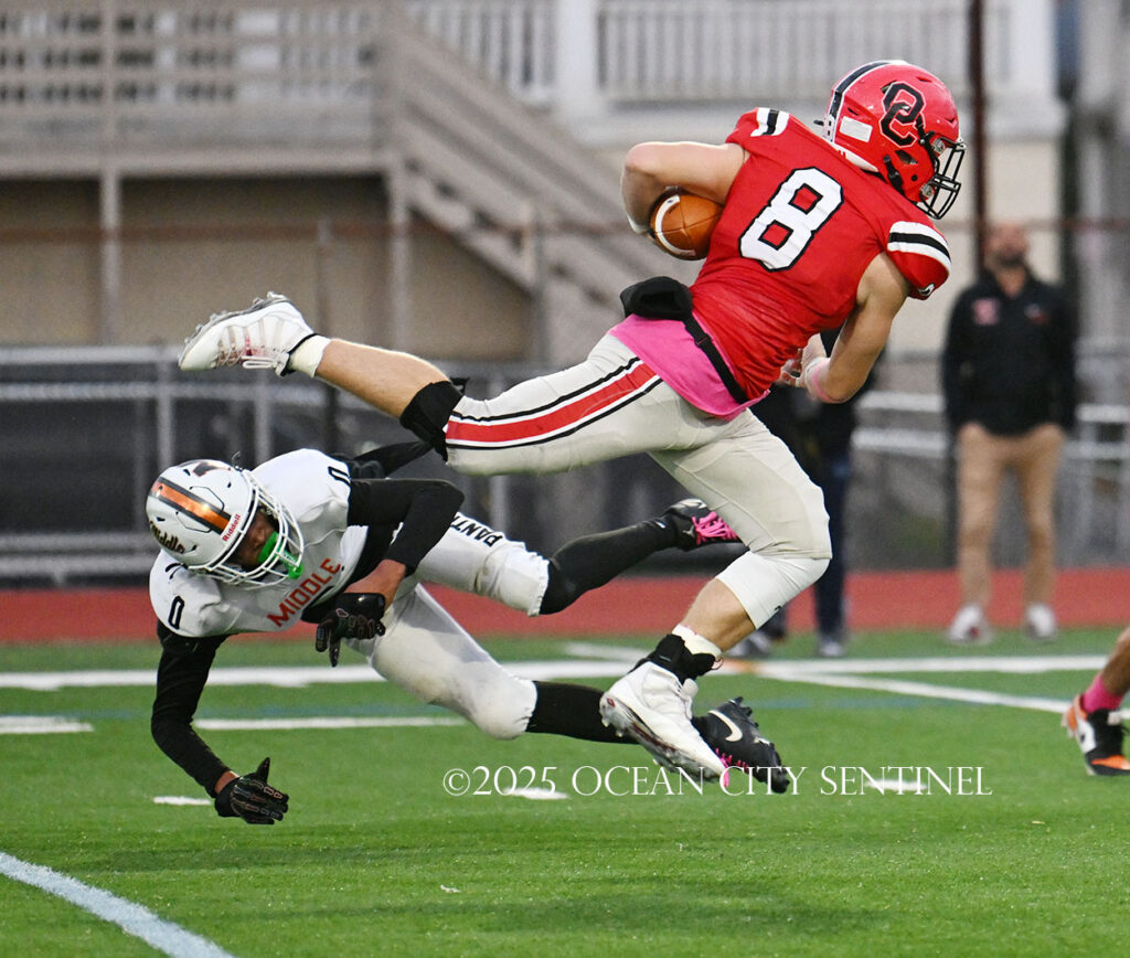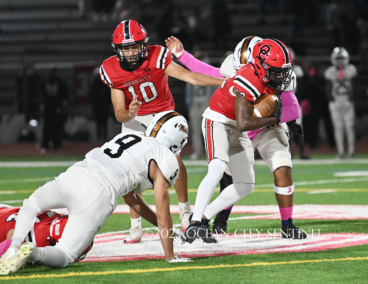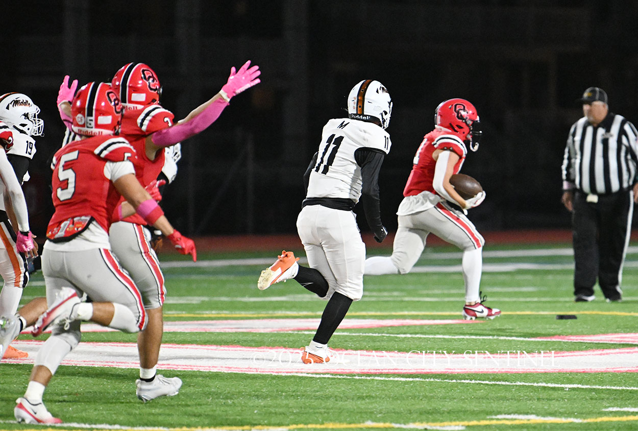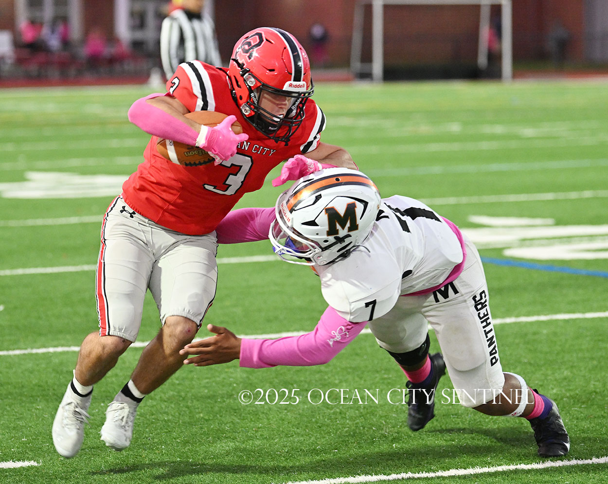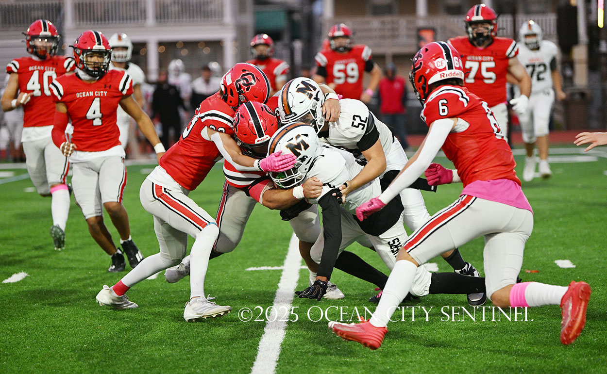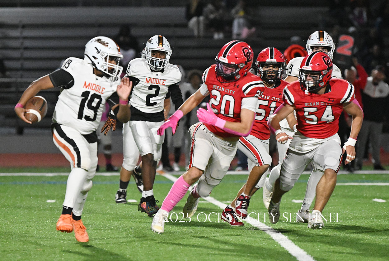 After a disappointing loss the previous week to the Mainland Mustangs, the Raiders bounced back with a clean and efficient 48-0 win over Middle Township High School in the homecoming game Oct. 10. Ocean City’s offense scored seven touchdowns on the first eight drives of the game to cruise past the Panthers.