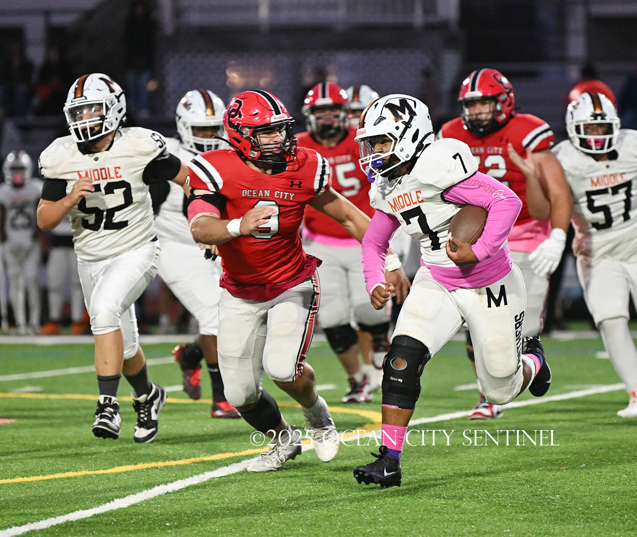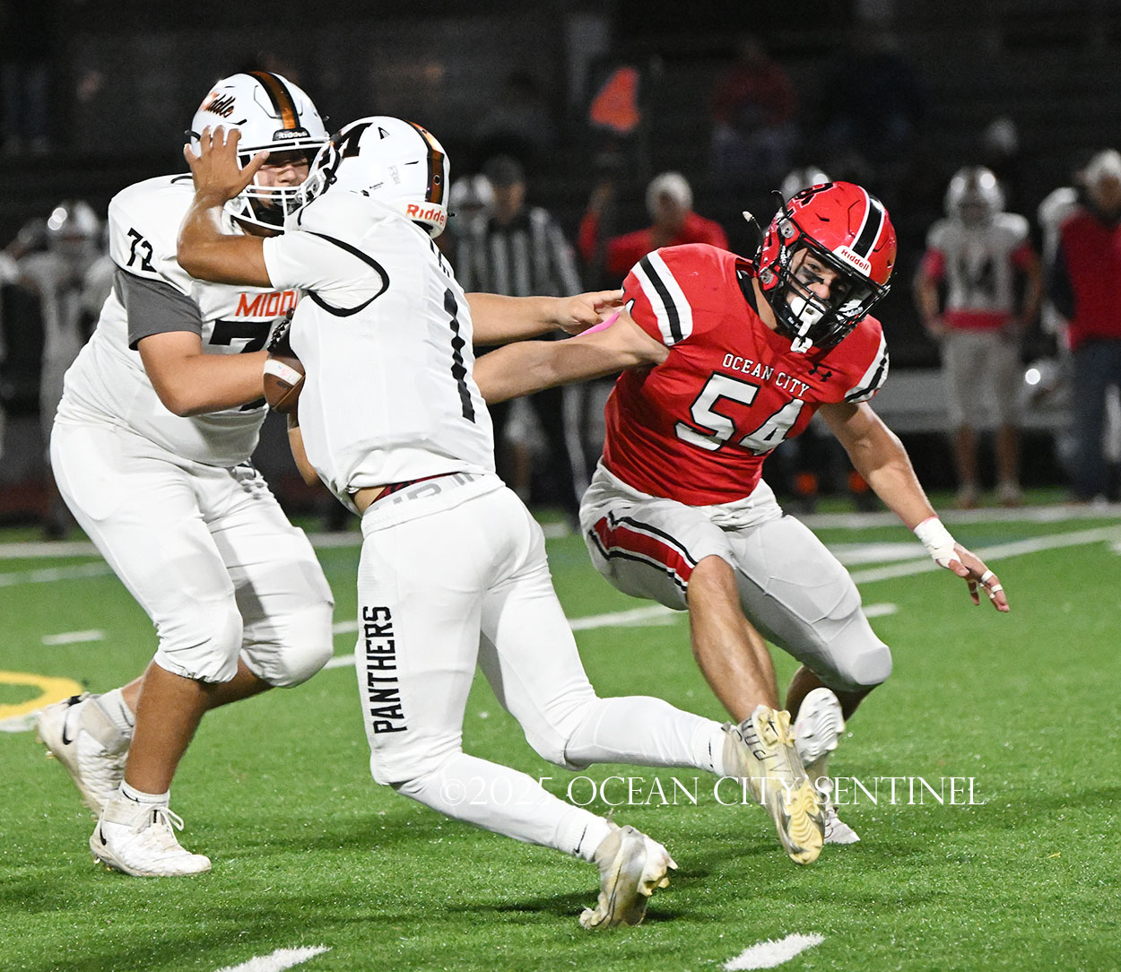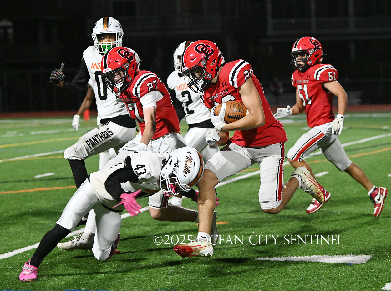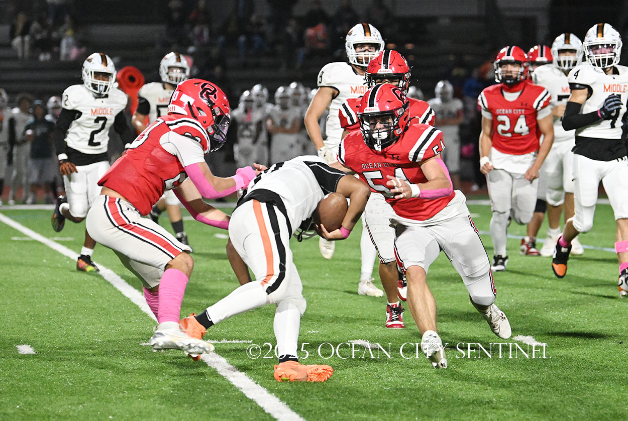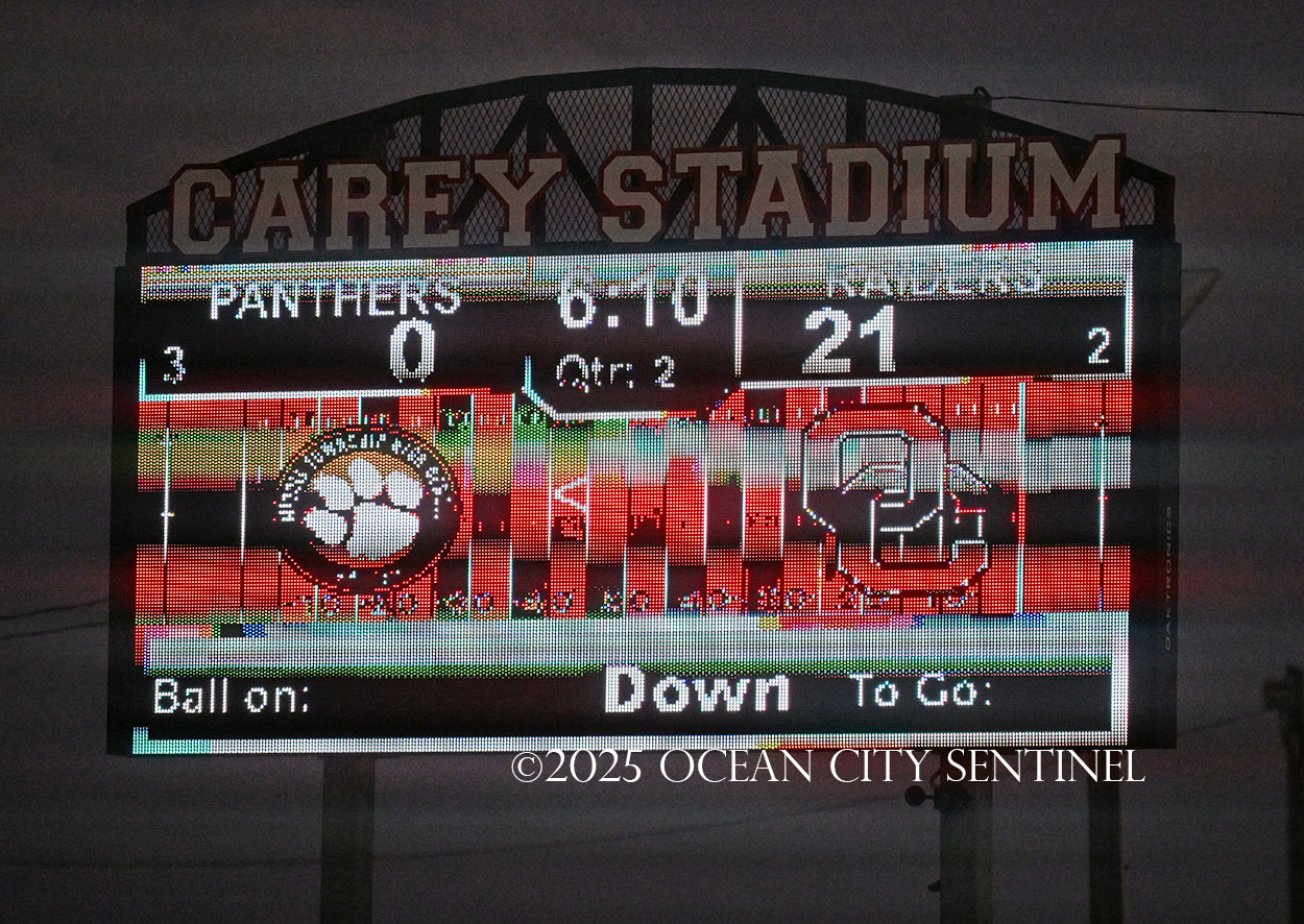After a disappointing loss the previous week to the Mainland Mustangs, the Raiders bounced back with a clean and efficient 48-0 win over Middle Township High School in the homecoming game Oct. 10. Ocean City’s offense scored seven touchdowns on the first eight drives of the game to cruise past the Panthers.