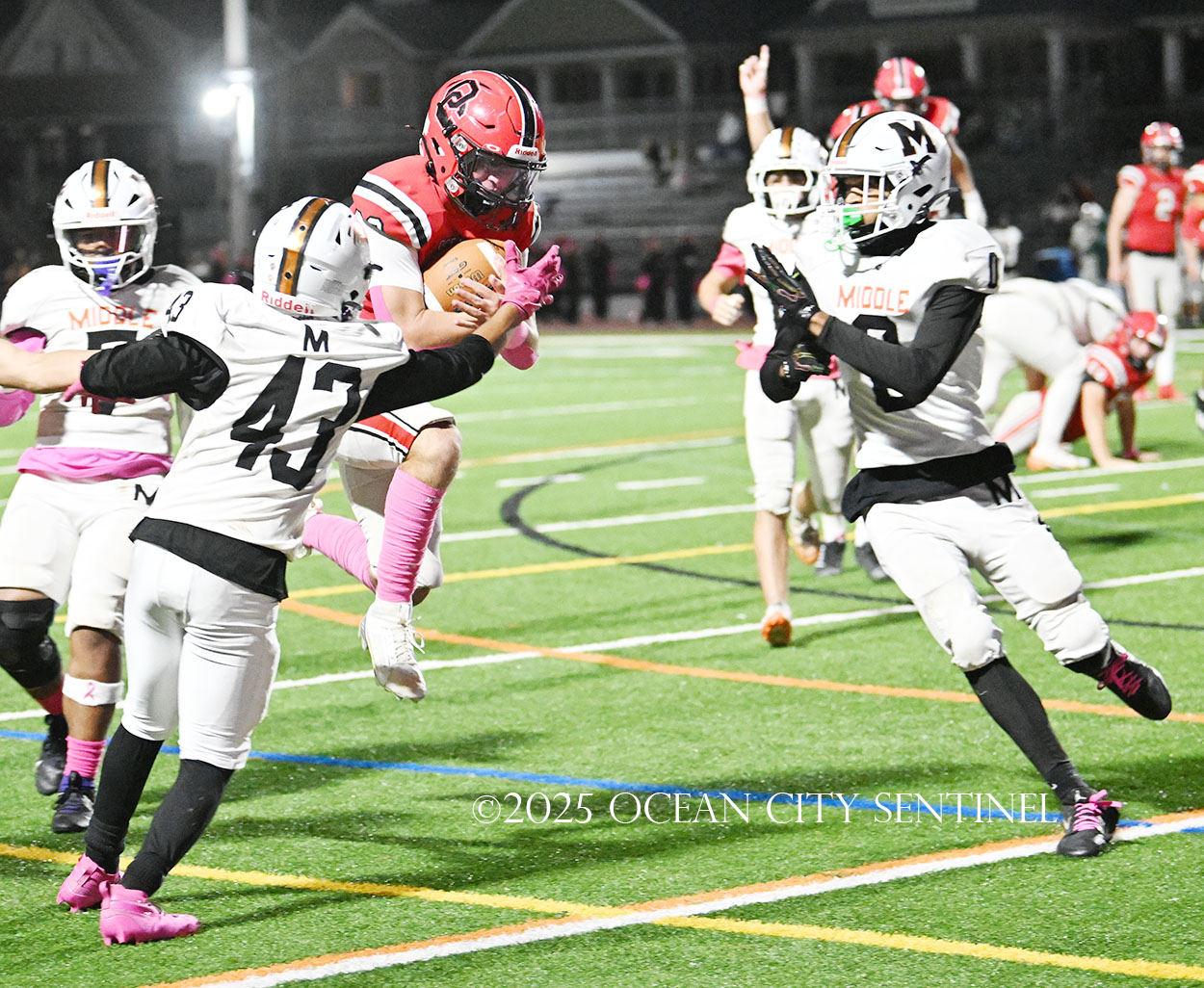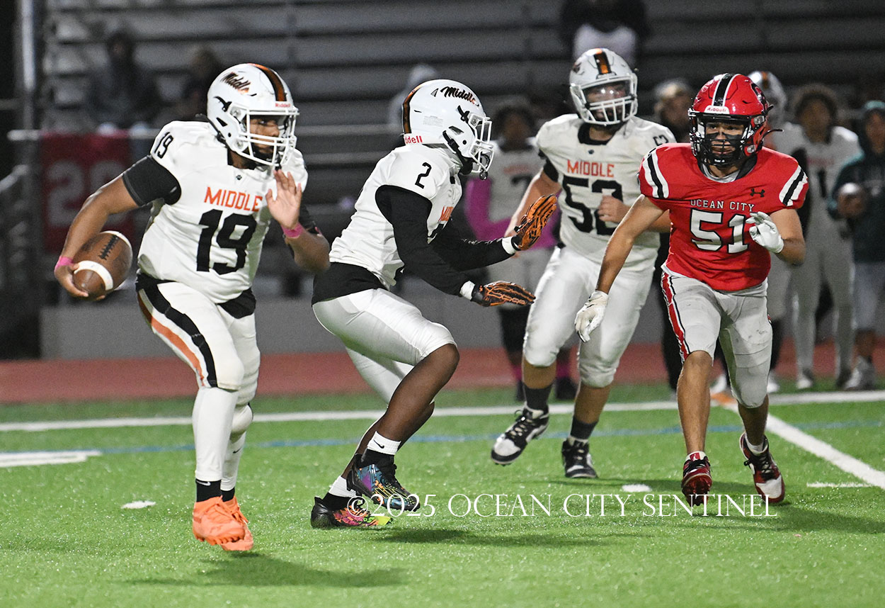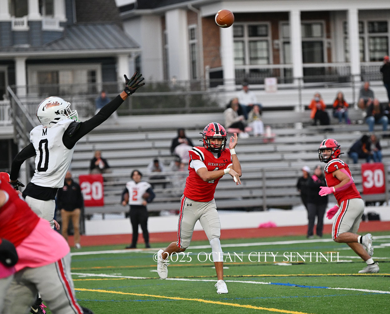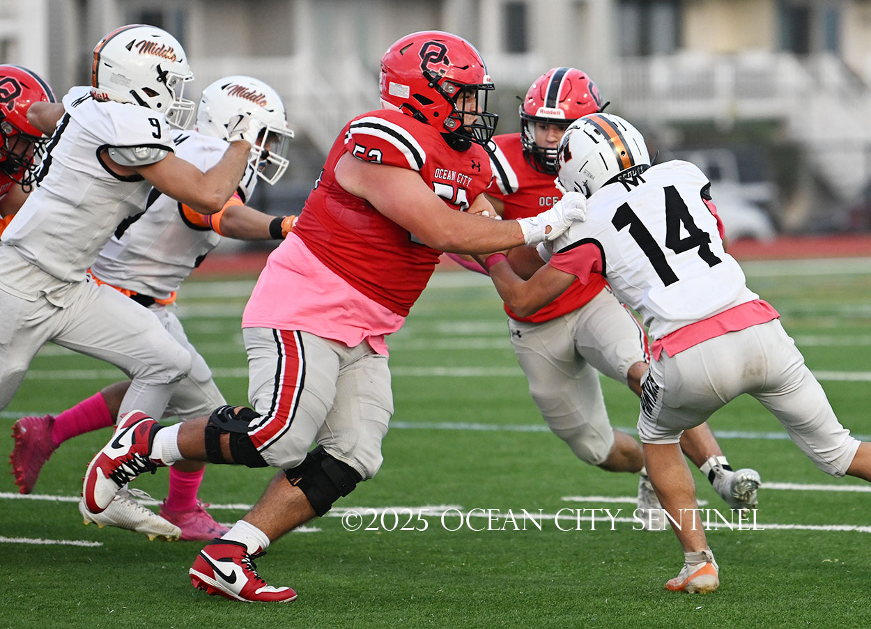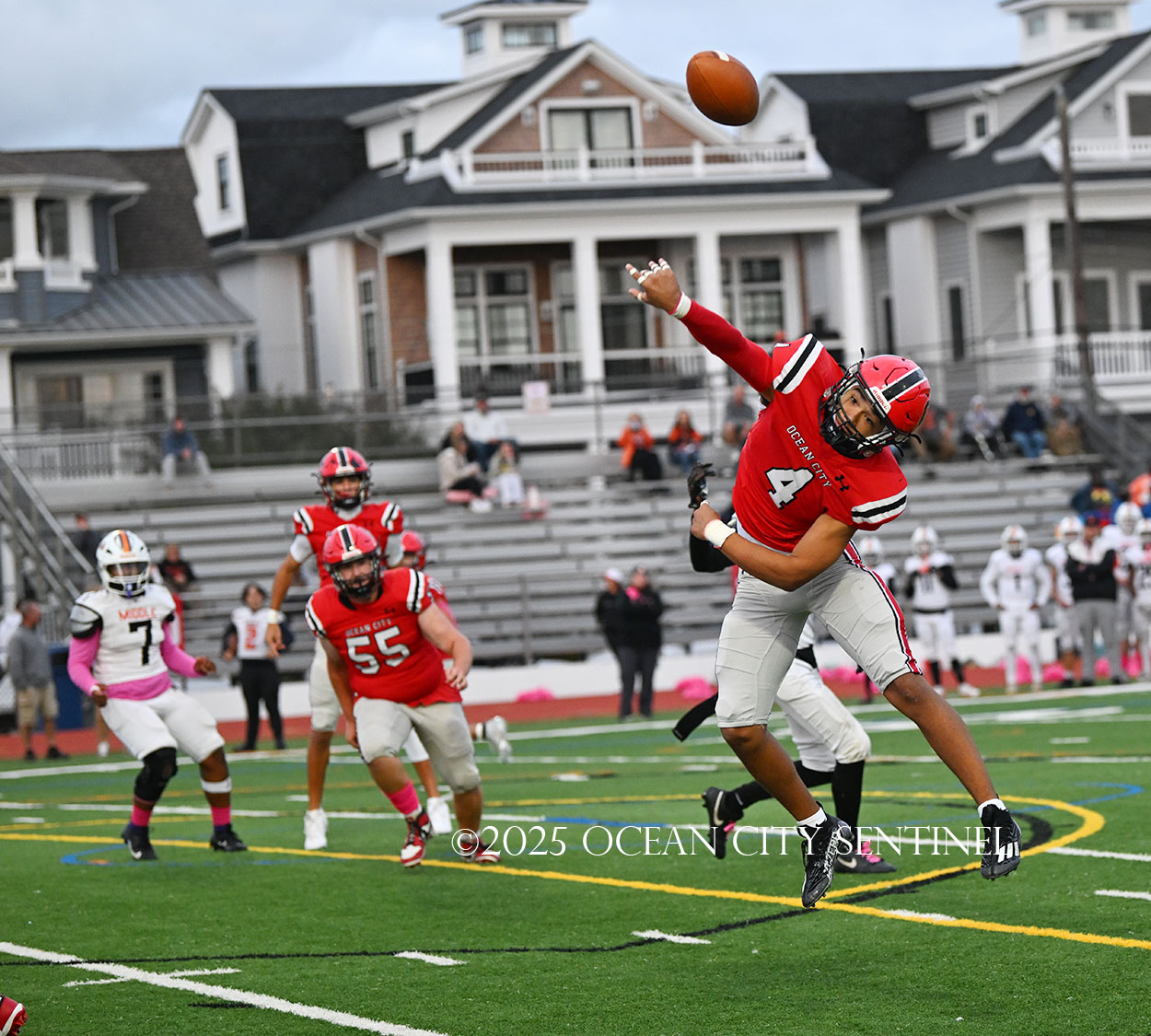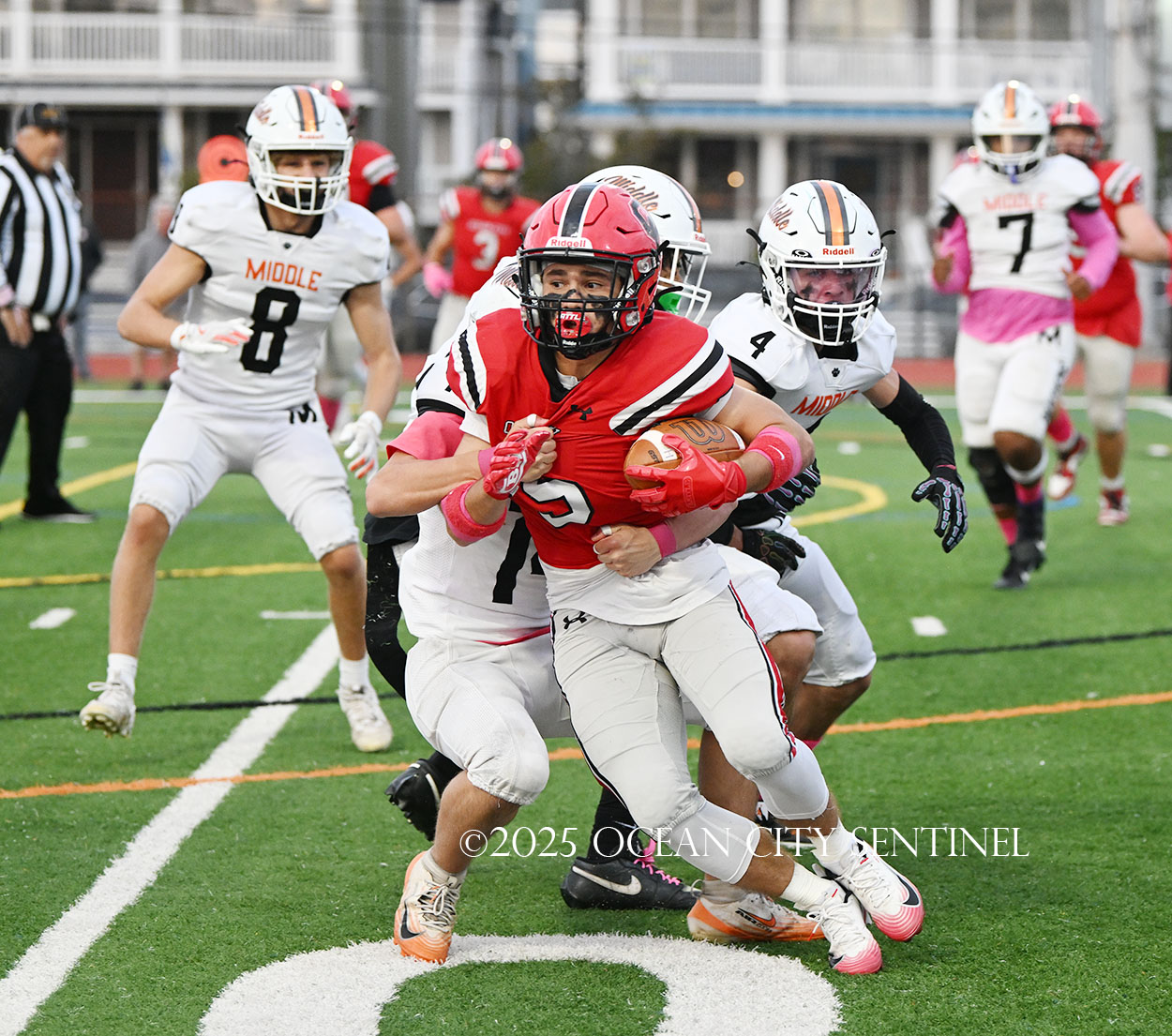 After a disappointing loss the previous week to the Mainland Mustangs, the Raiders bounced back with a clean and efficient 48-0 win over Middle Township High School in the homecoming game Oct. 10. Ocean City’s offense scored seven touchdowns on the first eight drives of the game to cruise past the Panthers.