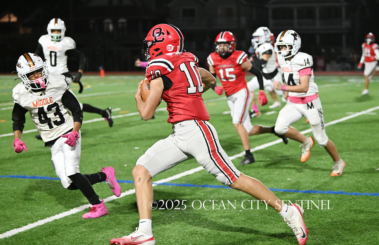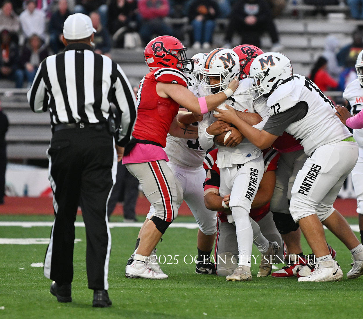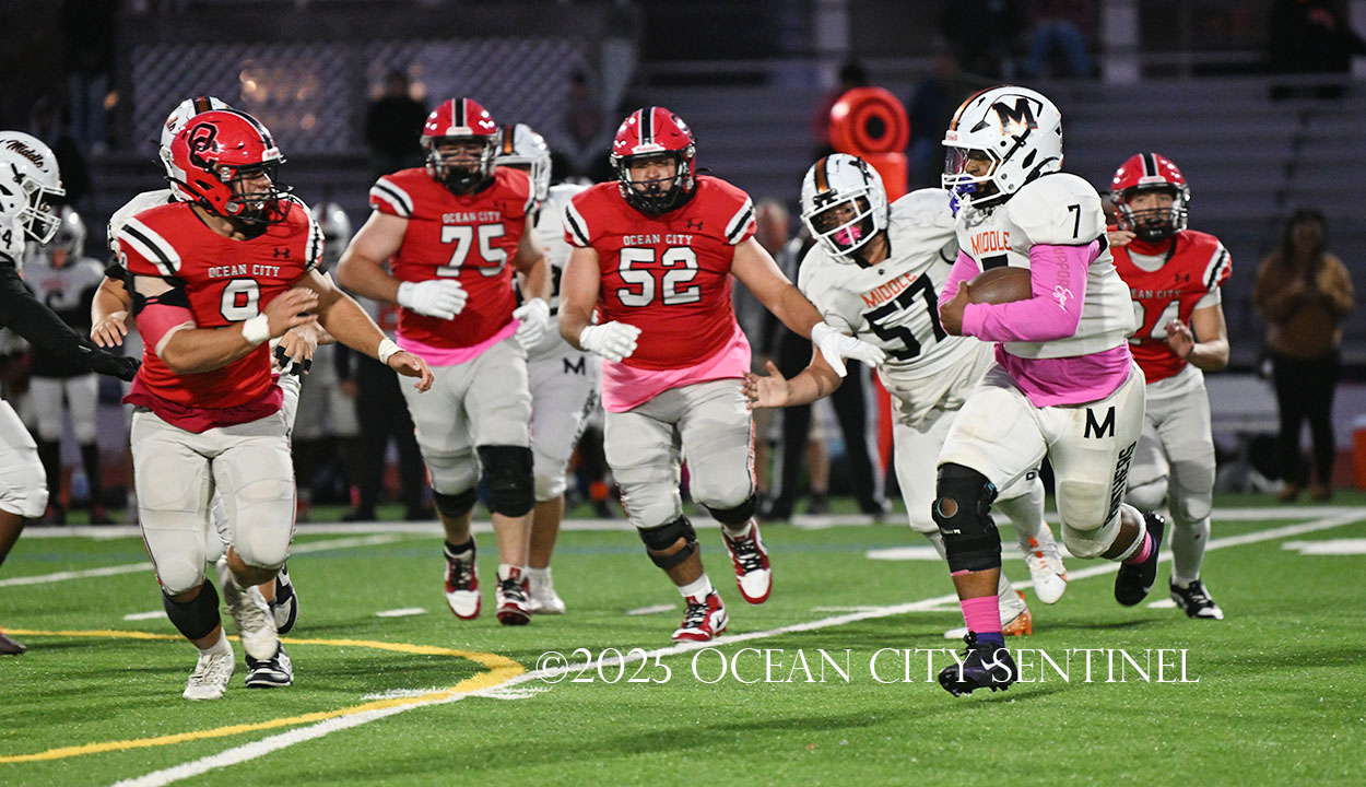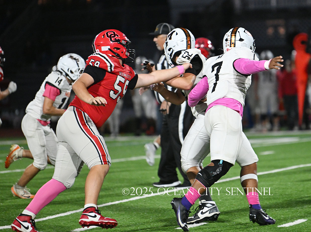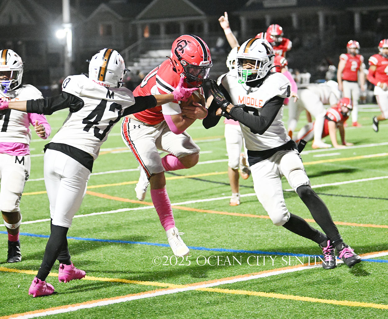 After a disappointing loss the previous week to the Mainland Mustangs, the Raiders bounced back with a clean and efficient 48-0 win over Middle Township High School in the homecoming game Oct. 10. Ocean City’s offense scored seven touchdowns on the first eight drives of the game to cruise past the Panthers.