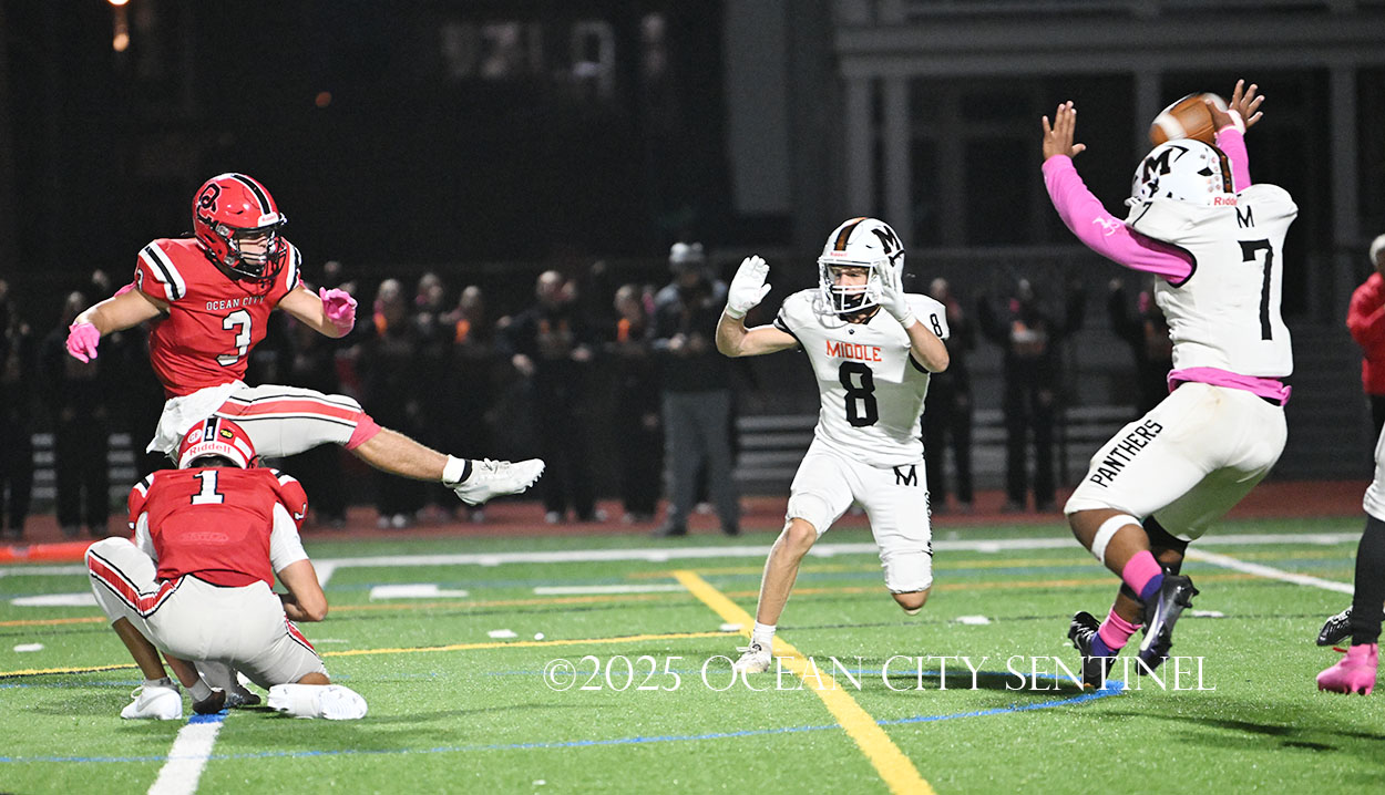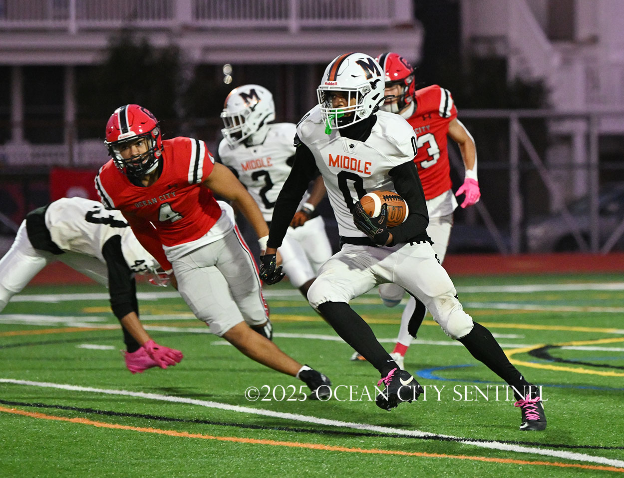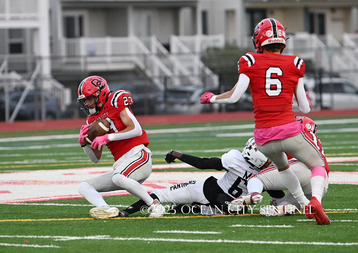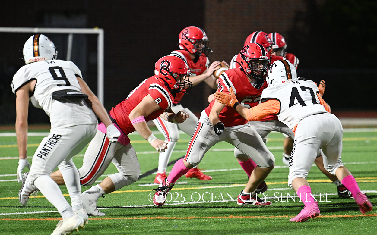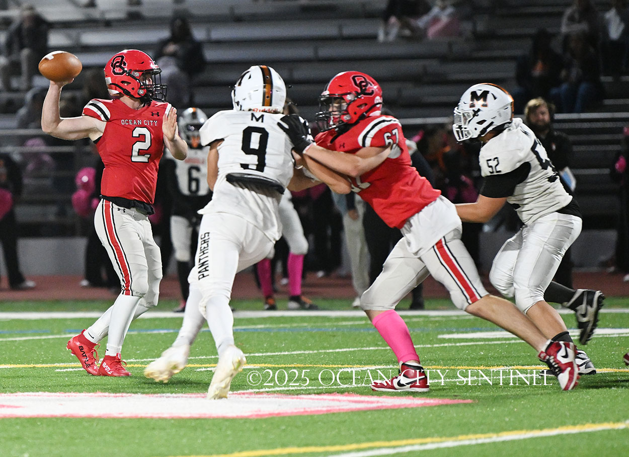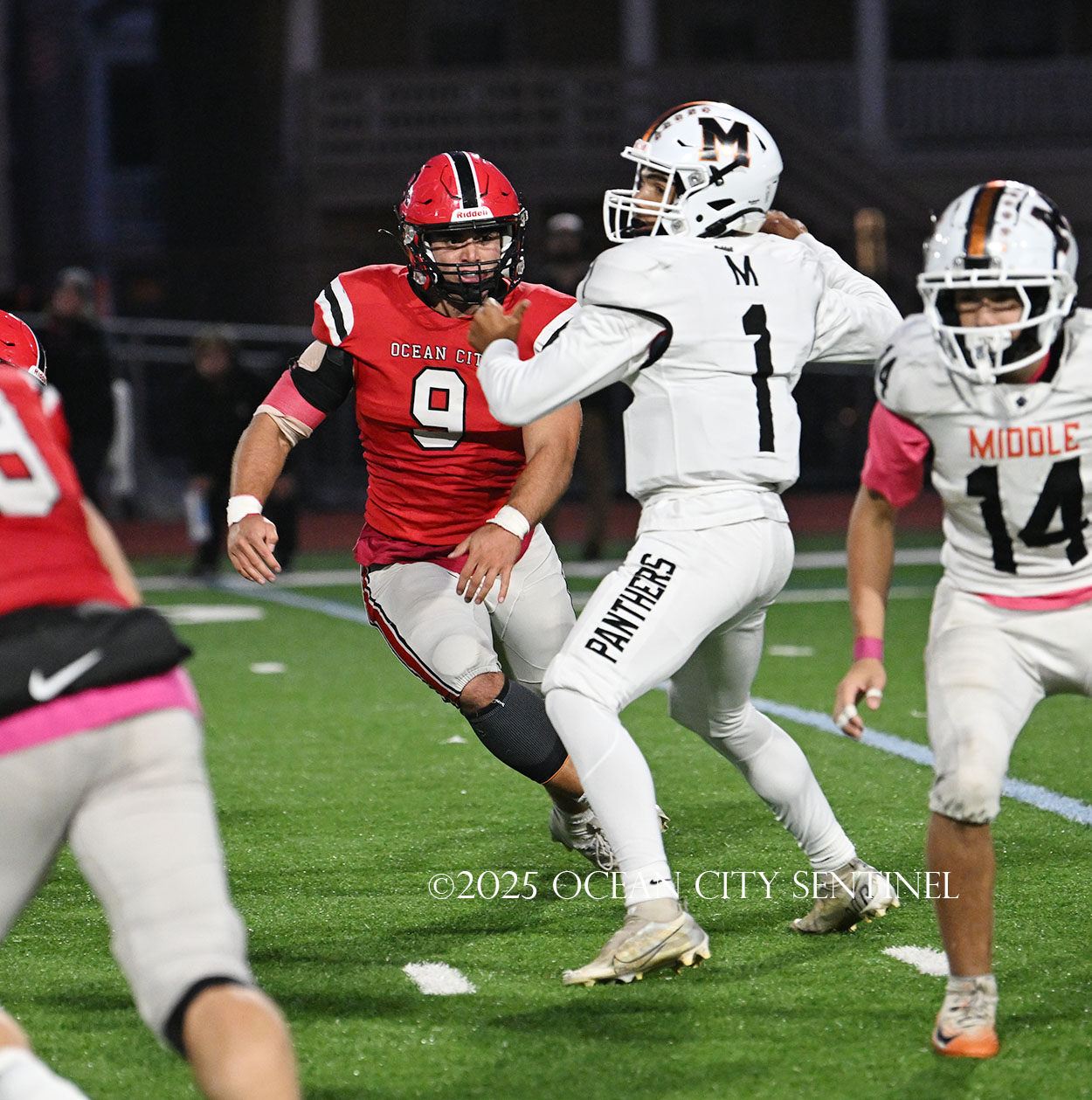 After a disappointing loss the previous week to the Mainland Mustangs, the Raiders bounced back with a clean and efficient 48-0 win over Middle Township High School in the homecoming game Oct. 10. Ocean City’s offense scored seven touchdowns on the first eight drives of the game to cruise past the Panthers.