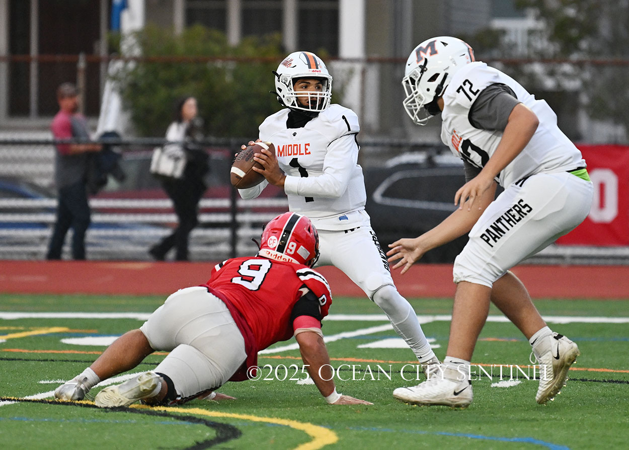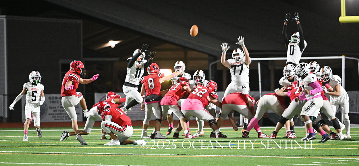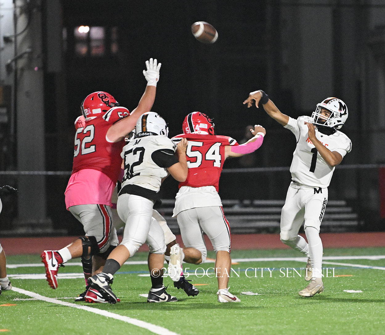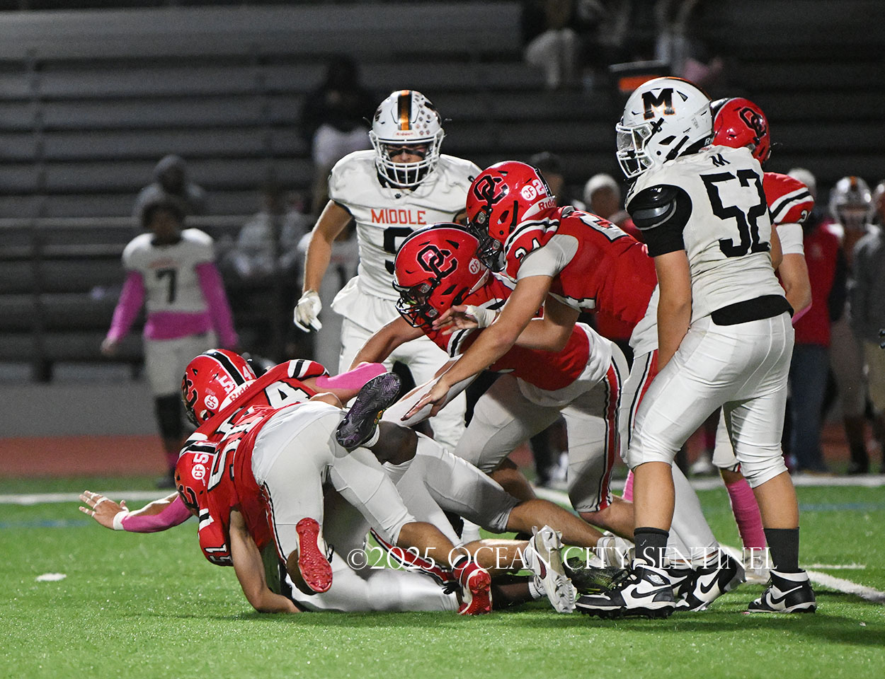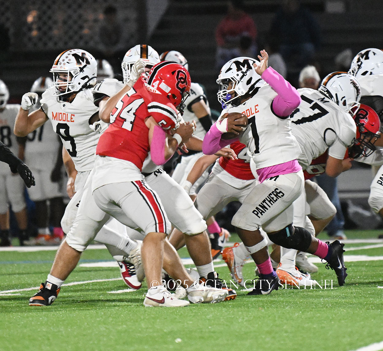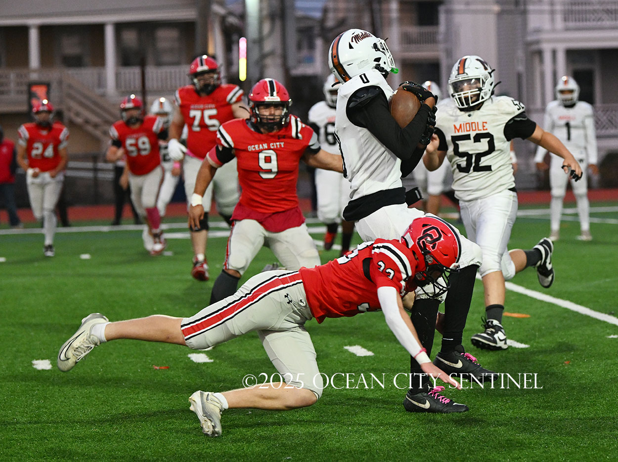 After a disappointing loss the previous week to the Mainland Mustangs, the Raiders bounced back with a clean and efficient 48-0 win over Middle Township High School in the homecoming game Oct. 10. Ocean City’s offense scored seven touchdowns on the first eight drives of the game to cruise past the Panthers.