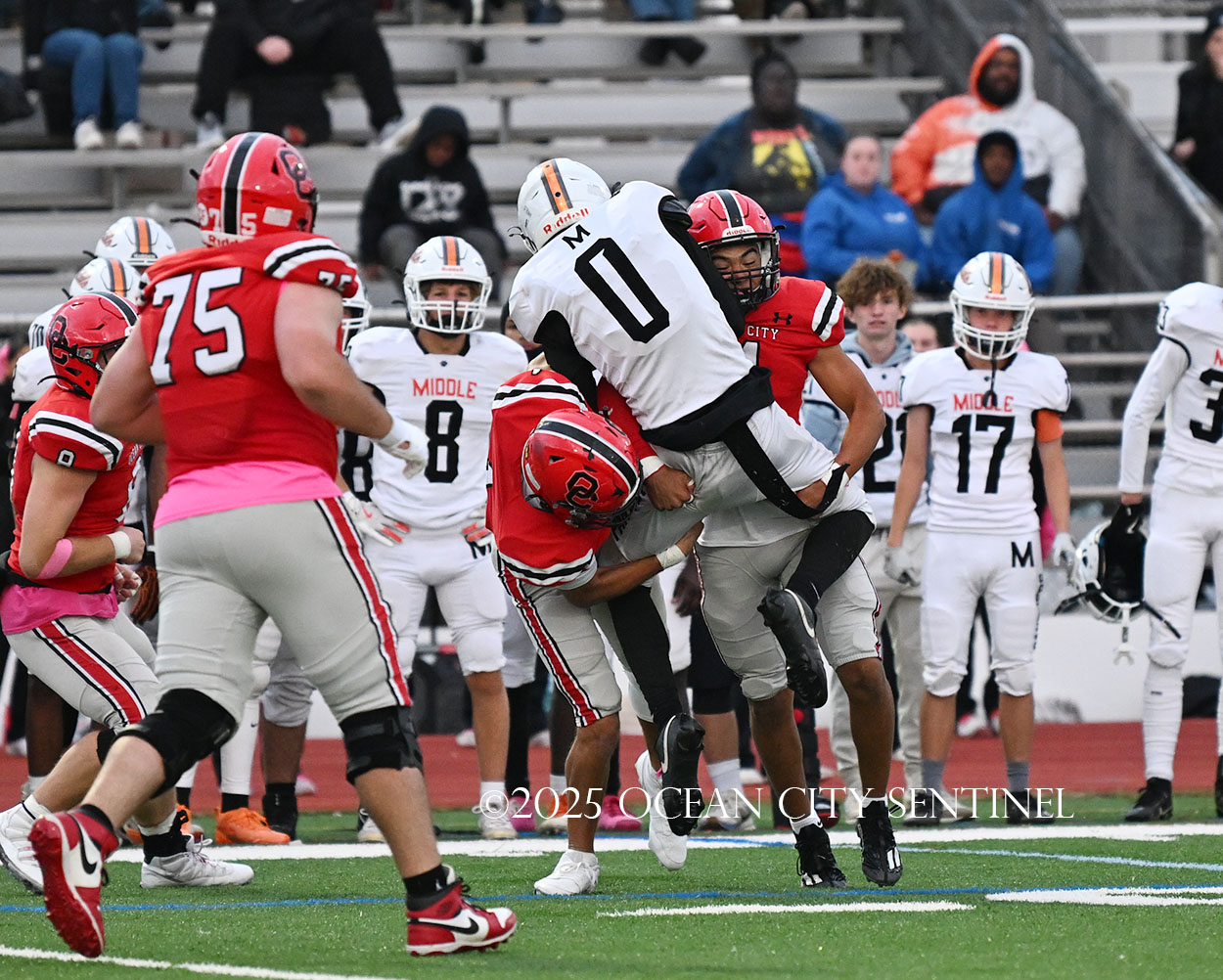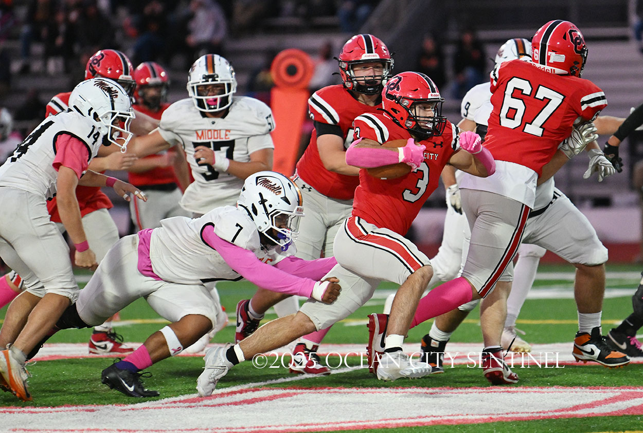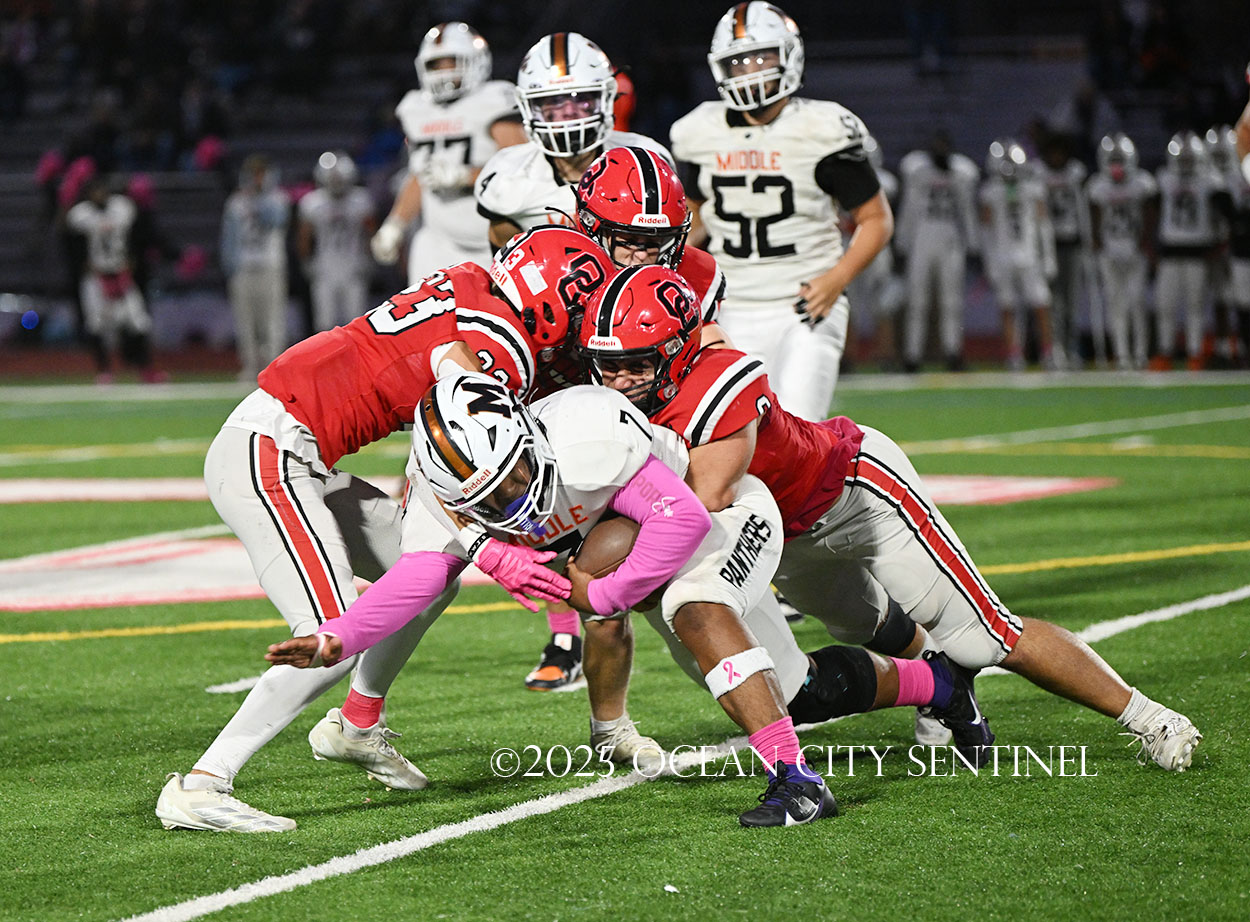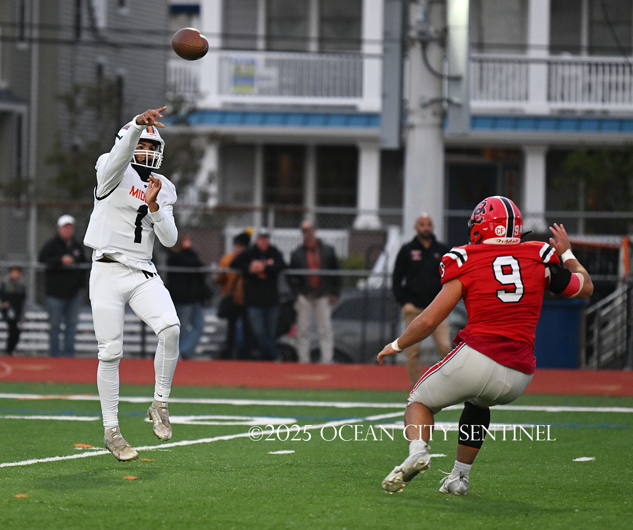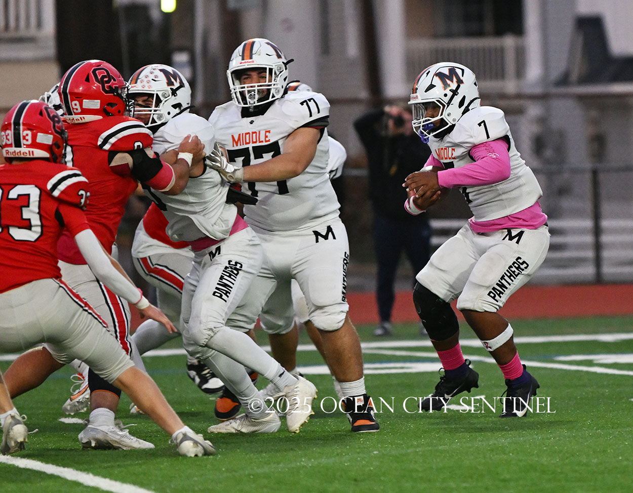 After a disappointing loss the previous week to the Mainland Mustangs, the Raiders bounced back with a clean and efficient 48-0 win over Middle Township High School in the homecoming game Oct. 10. Ocean City’s offense scored seven touchdowns on the first eight drives of the game to cruise past the Panthers.