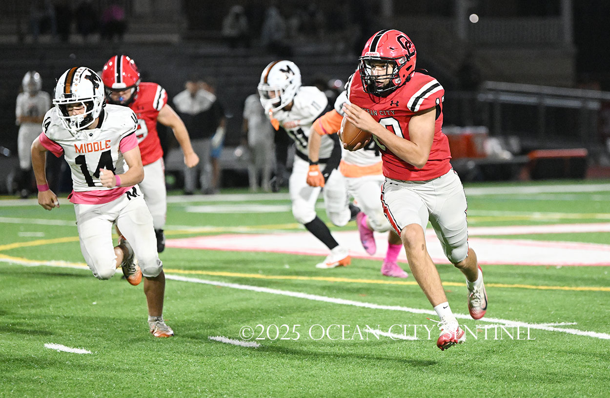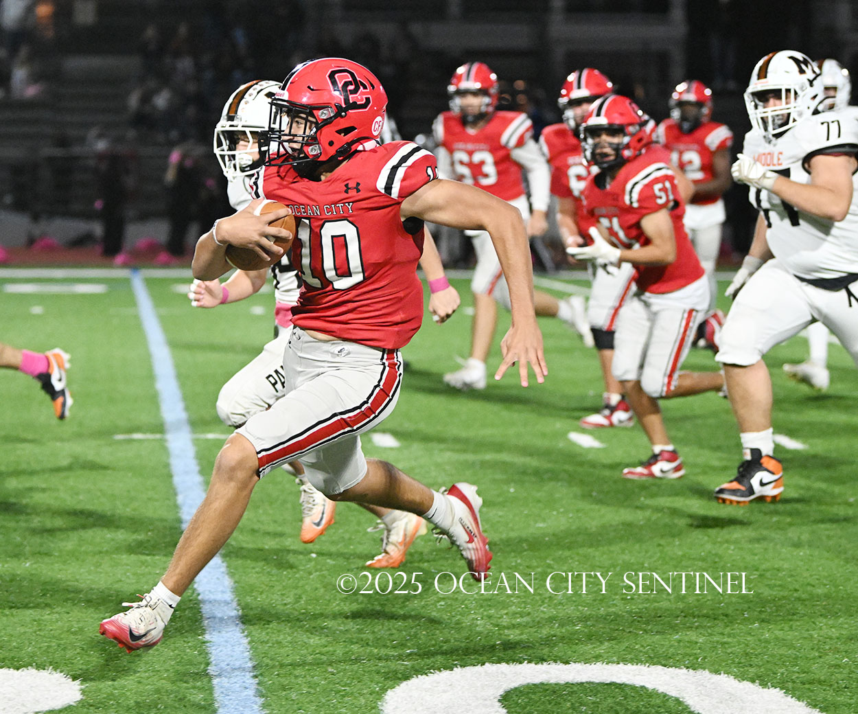 Winning games gets a lot easier when every part of the team makes big plays. Cole Garreffi got in on the action and took the second-half kickoff 79 yards for Ocean City’s first kickoff return touchdown of the season.