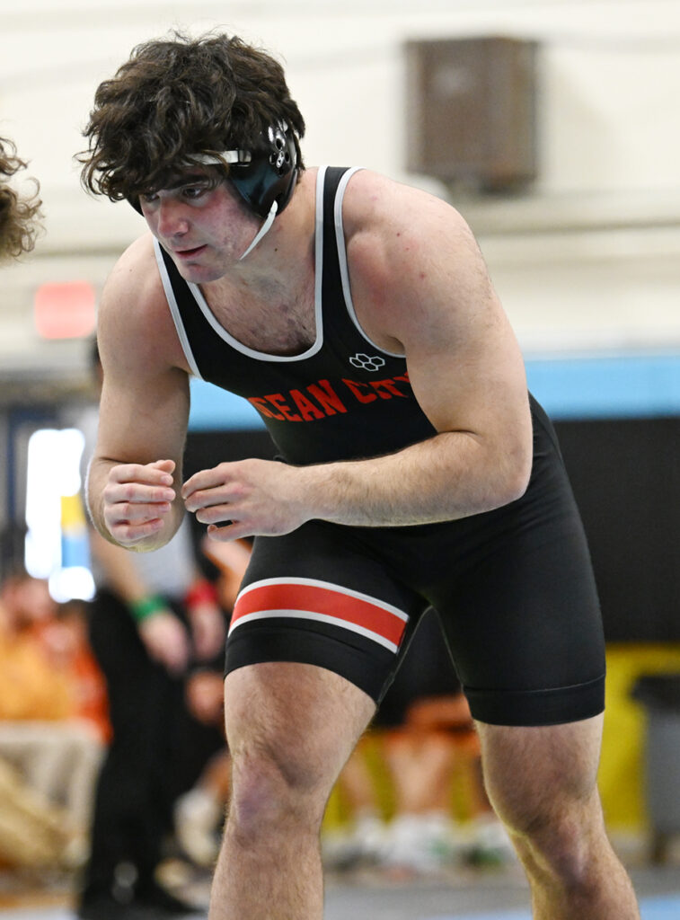 In the 285-pound class, Ocean City’s Will Kutschera, the No. 6 seed, upset No. 3 Shiloh Pressley of Absegami by pinning him at the 4:55 mark. Kutschera lost in the semifinals to No. 2 Nathaniel McCrone by technical fall, 23-6.
