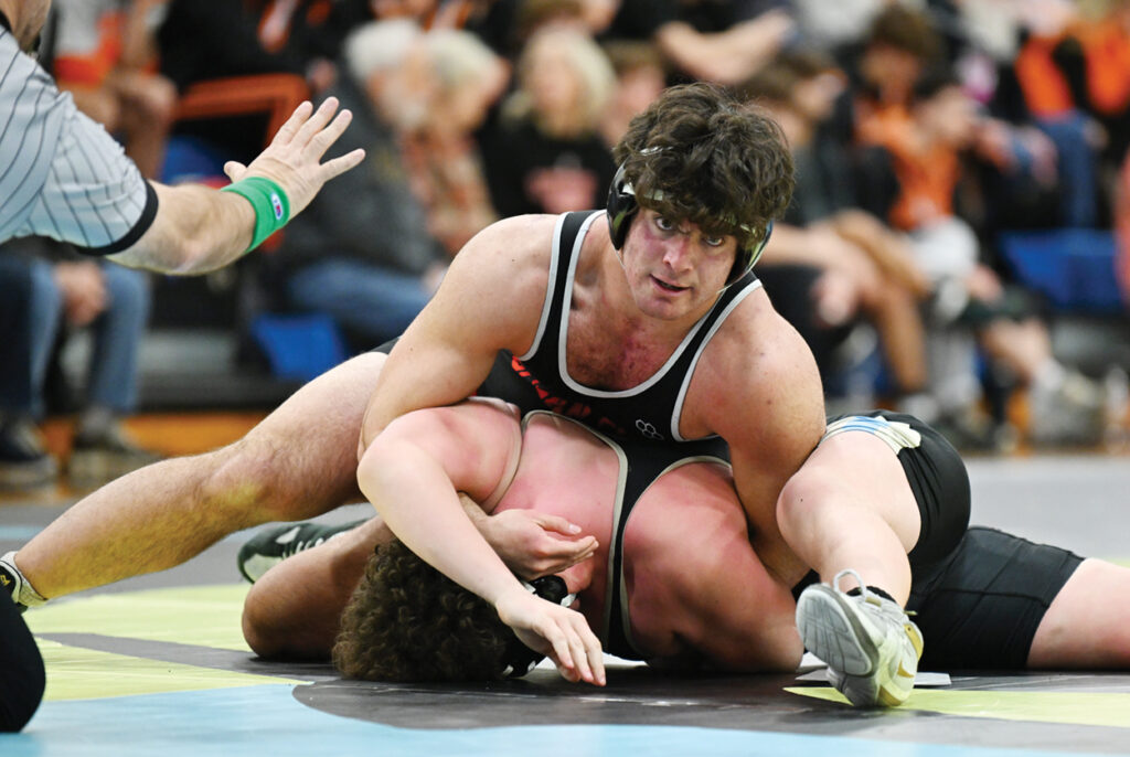 Wrestling in the 215-pound class at the district tournament at Absegami High School Saturday, the junior won by technical fall, 19-4, over Mainland’s Eban Kuhns in a time of 5:13. He earned the title by pinning No. 2 seed Chris Owen of Kingsway at the 2:39 mark in the finals.