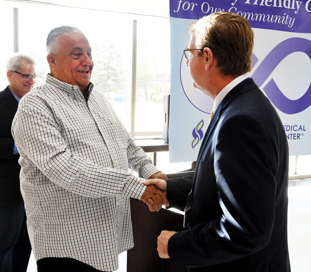Shore Medical CEO David Hughes, right, thanks Mike Monichetti for his help in making the new sensory-friendly outpatient lab program at Shore Medical Center a reality. The lab is part of Shore’s sensory-friendly emergency pediatric care, which is intended to make hospital visits, which can be especially scary and overwhelming for children on the autism spectrum, less frightening. Monichetti raises funds for autism causes with his Mike’s Seafood Run/Walk for Autism in Sea Isle City every February.