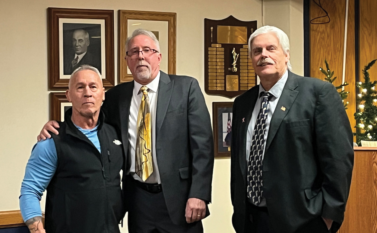 At top, American Legion Post 352 Commander Larry Lemieux, left, poses with Somers Point Mayor Dennis Tapp and City Council President Kirk Gerety on Jan. 2 at City Hall. (Photo by Steve Hornig/Special to the Sentinel)