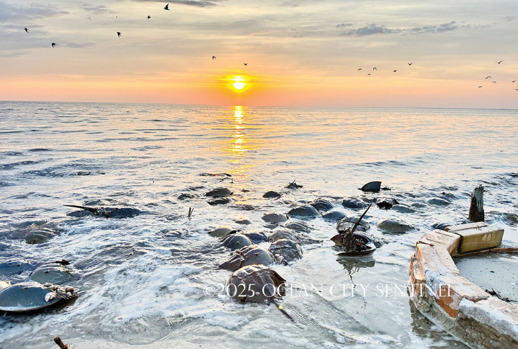 CAPE MAY COURT HOUSE — With the backdrop of a beautiful sunset over Delaware Bay on a quite warm mid-June evening, mosquitoes and biting flies were pestering some 75 volunteers gathered at the narrow Kimbles Beach.