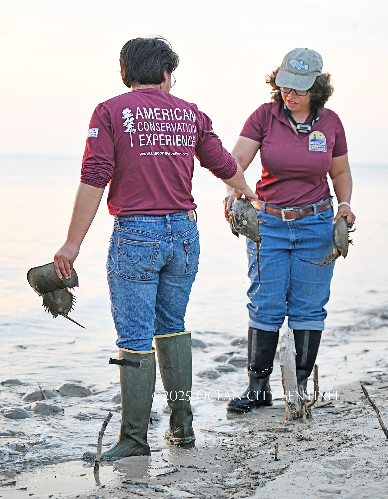 Getting the volunteers involved is important in two ways. The first is because of sheer numbers — the group tags 500 horseshoe crabs each of the nights, a task that couldn’t be handled by the Fish & Wildlife staff and the two interns from the American Conservation Experience. (See related story.)
