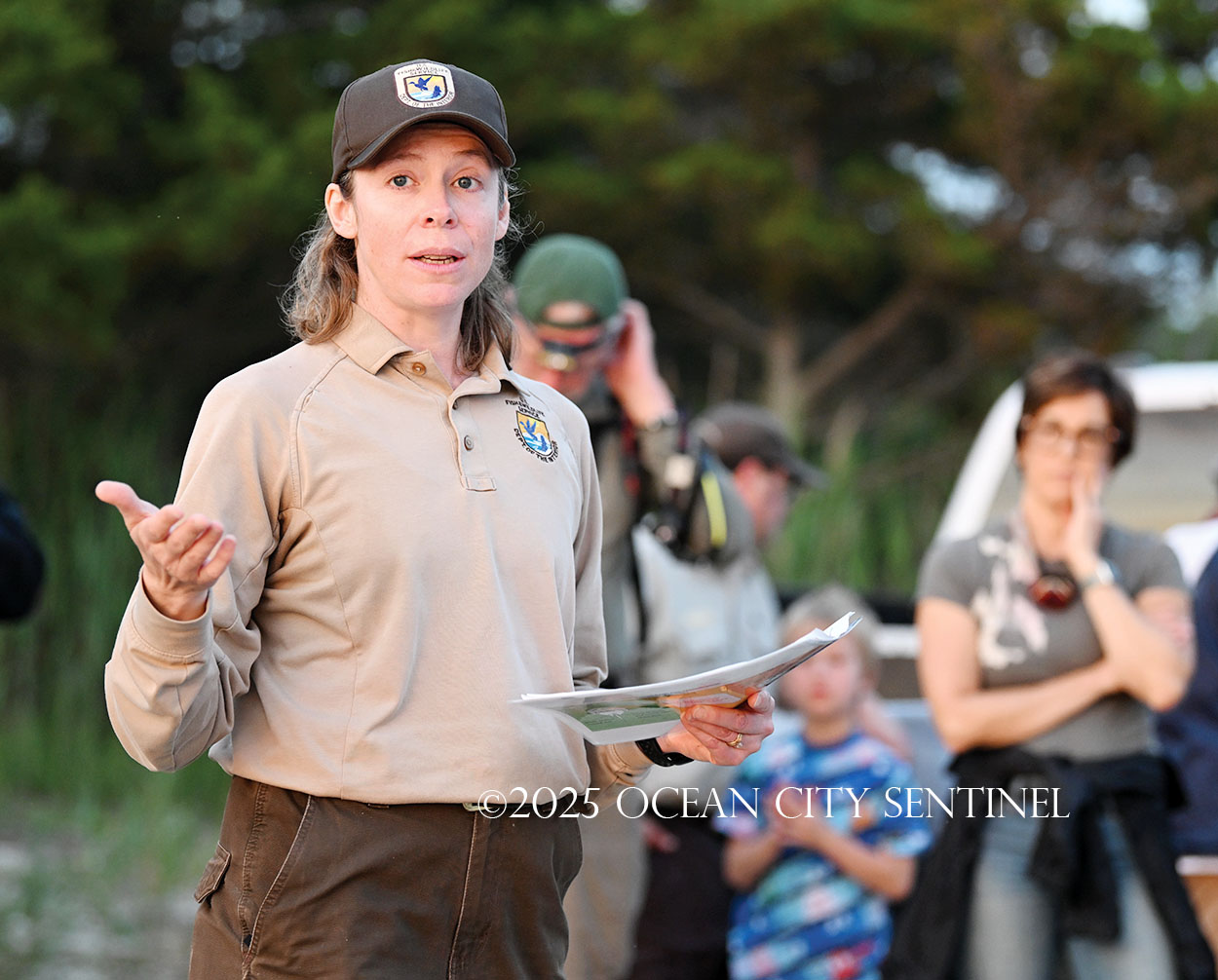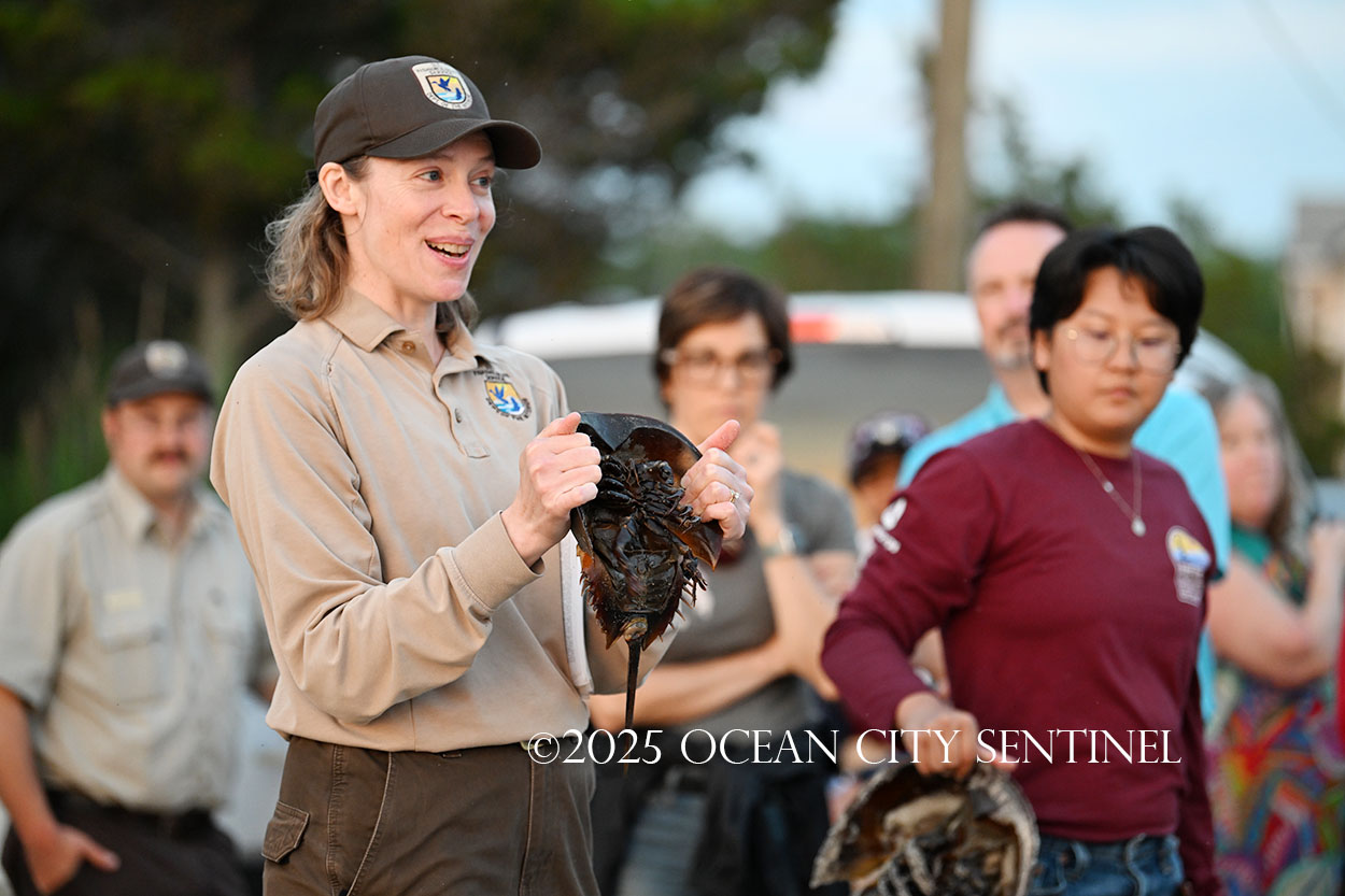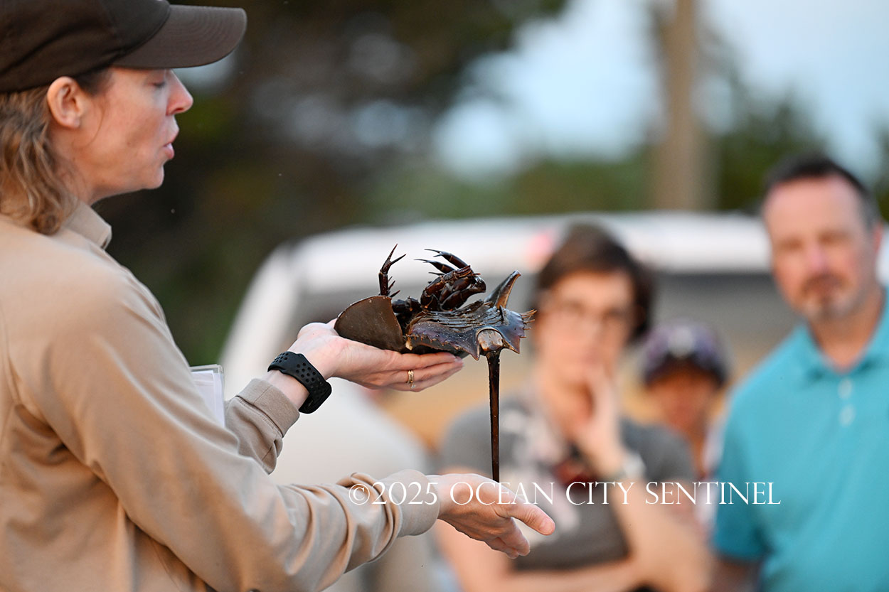 Heidi Hanlon, a wildlife biologist with the U.S. Fish & Wildlife Service stationed just up Kimbles Beach Road in the Cape May National Wildlife Refuge, was telling the group about the horseshoe crabs they would be tagging after sunset.