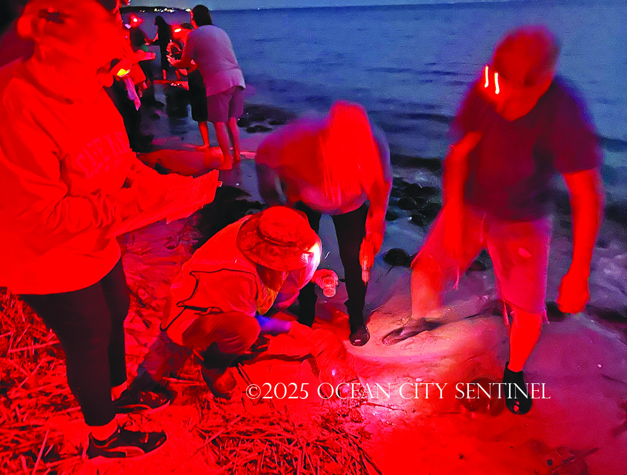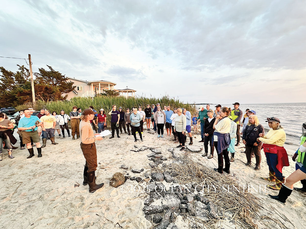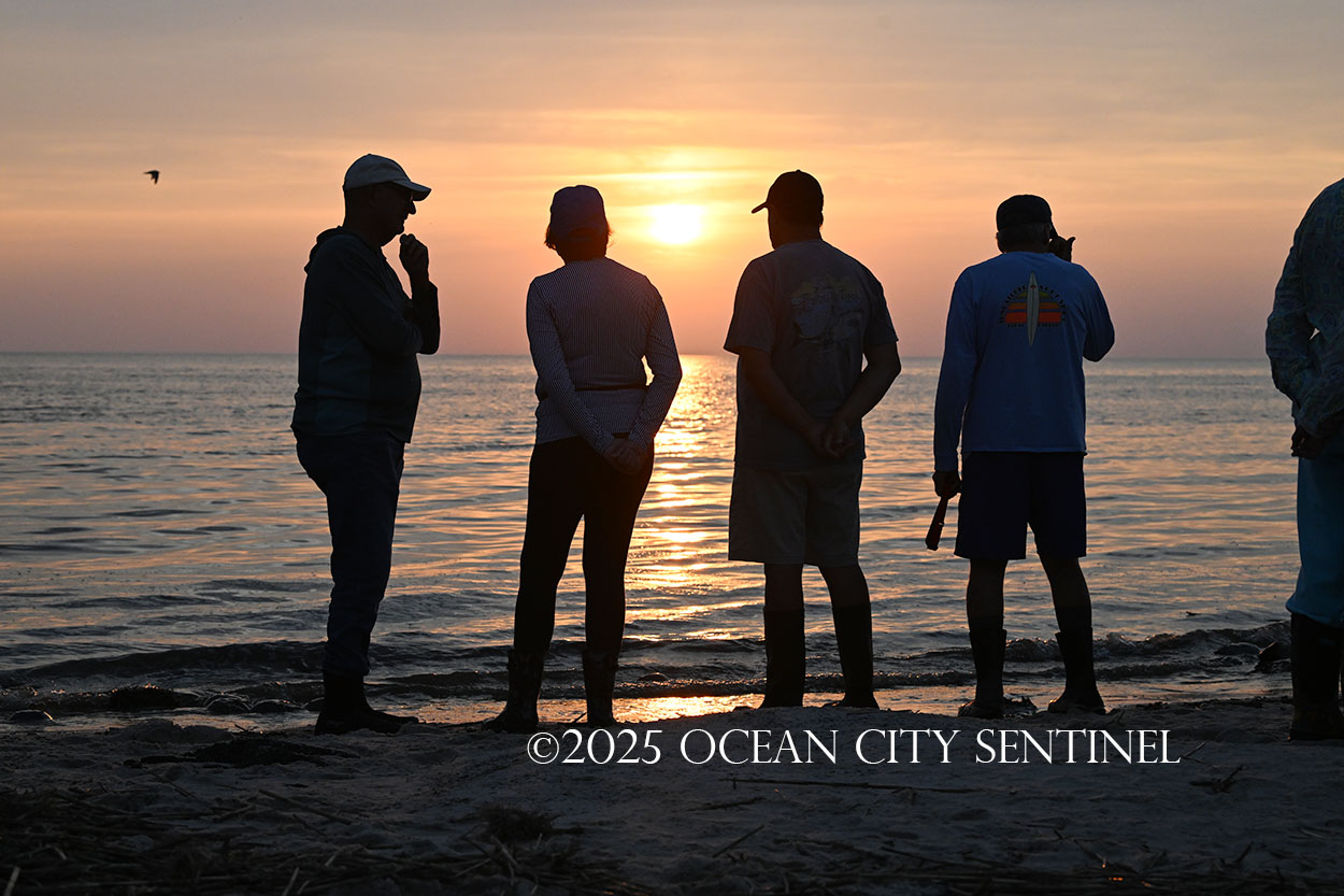 CAPE MAY COURT HOUSE — With the backdrop of a beautiful sunset over Delaware Bay on a quite warm mid-June evening, mosquitoes and biting flies were pestering some 75 volunteers gathered at the narrow Kimbles Beach.