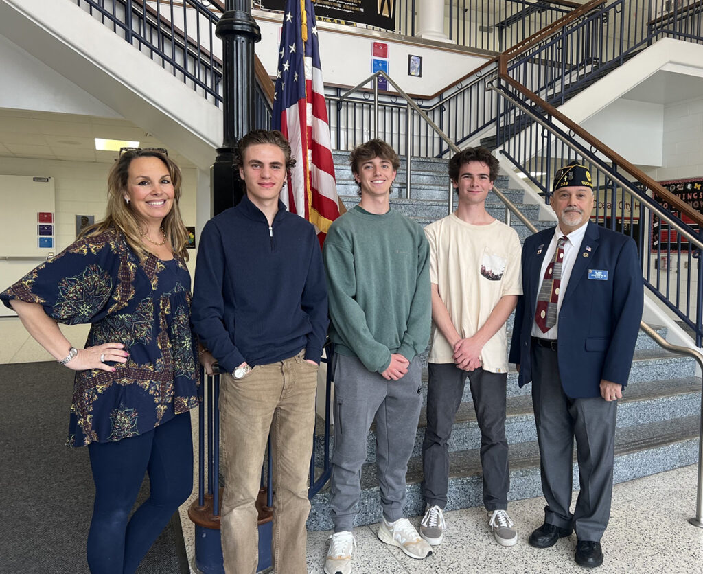 The post’s delegates are Ocean City High School students Gavin Mattina, Lukas Tuthill and Matthew Daher. (They are pictured at top with Ocean City High School counselor Andrea Kuhlberg, Gavin Mattina, Lukas Tuthill, Matthew Daher and American Legion Aaron Wittkamp Colwell Tuckahoe Post 239 Commander Bill Archer.)