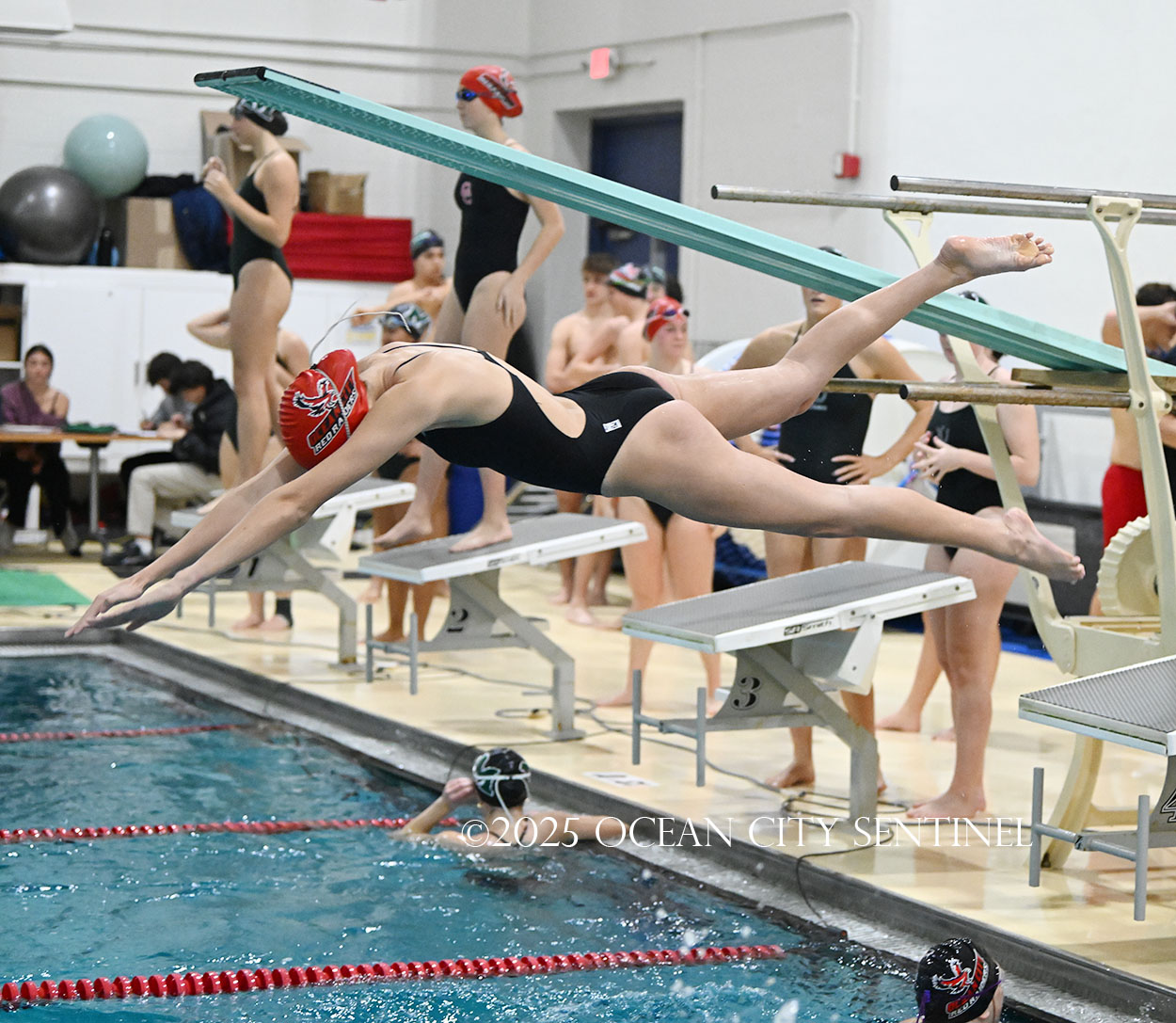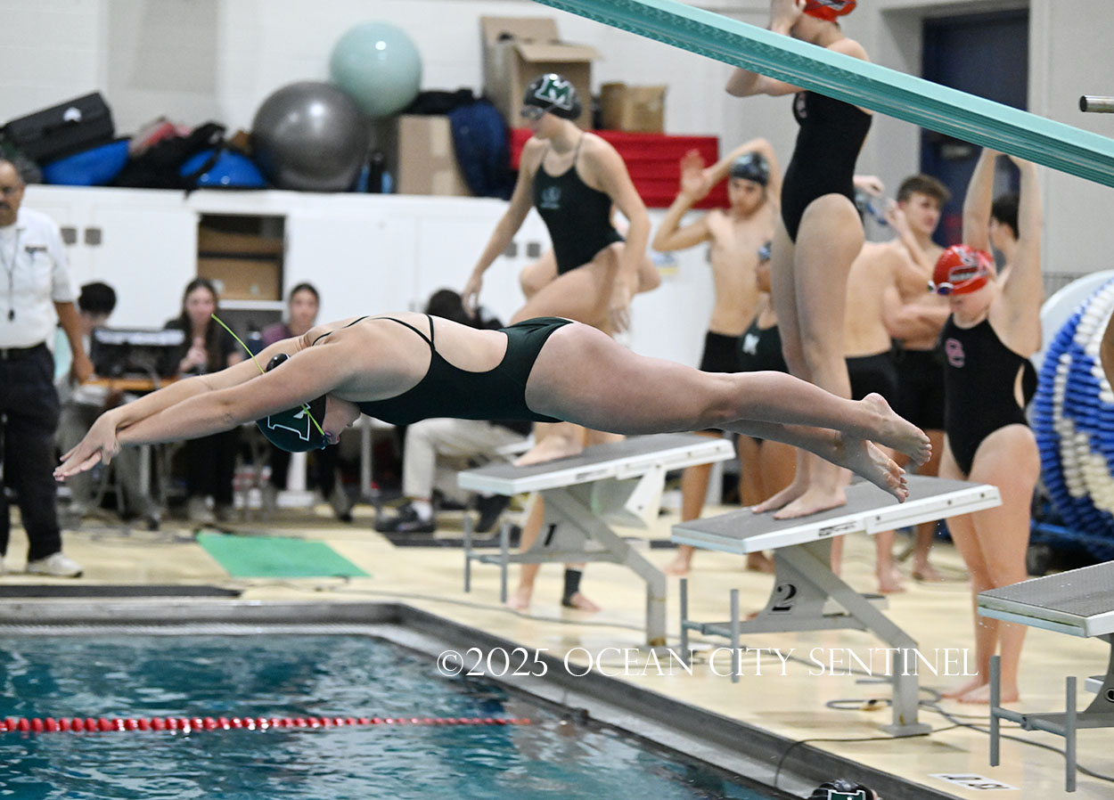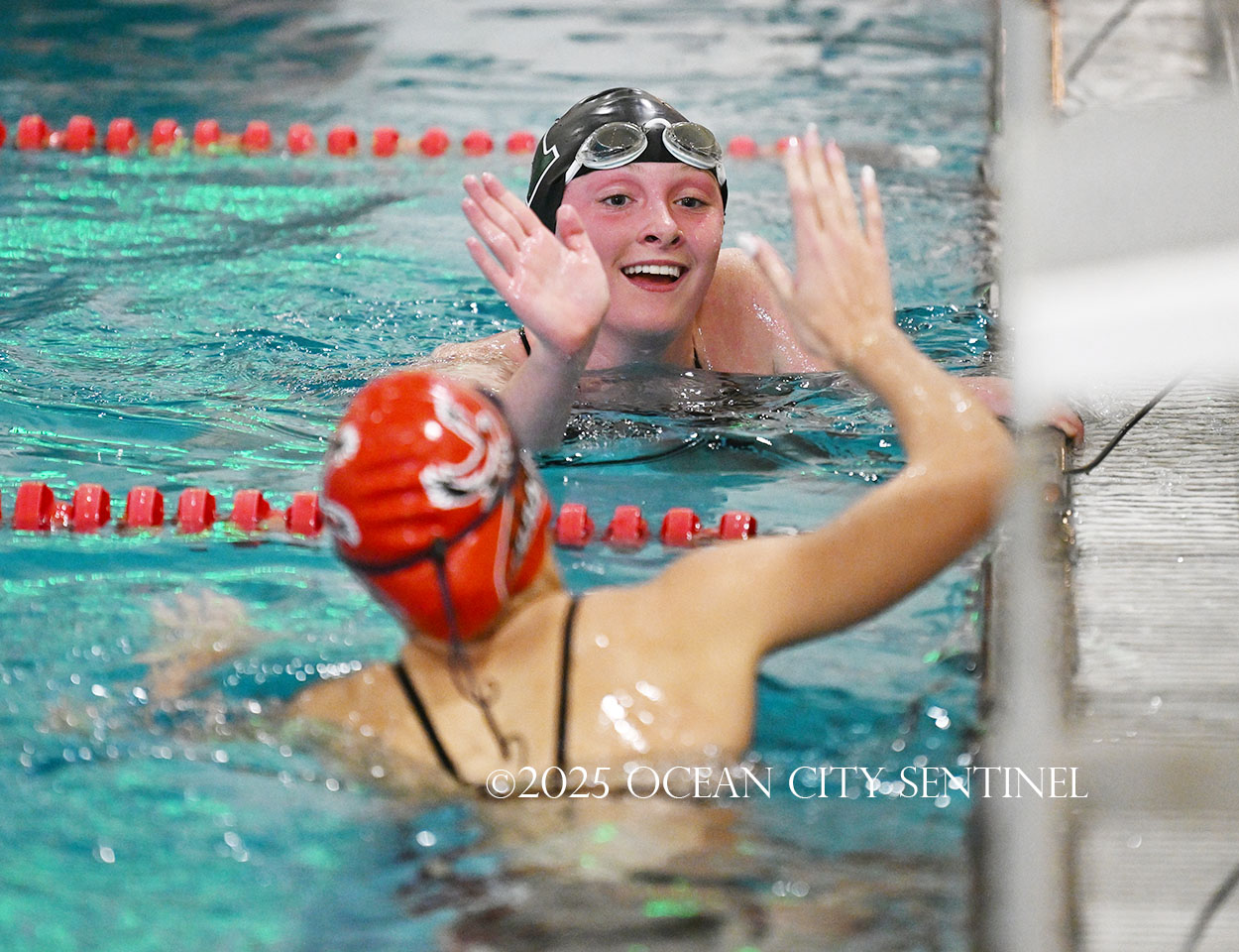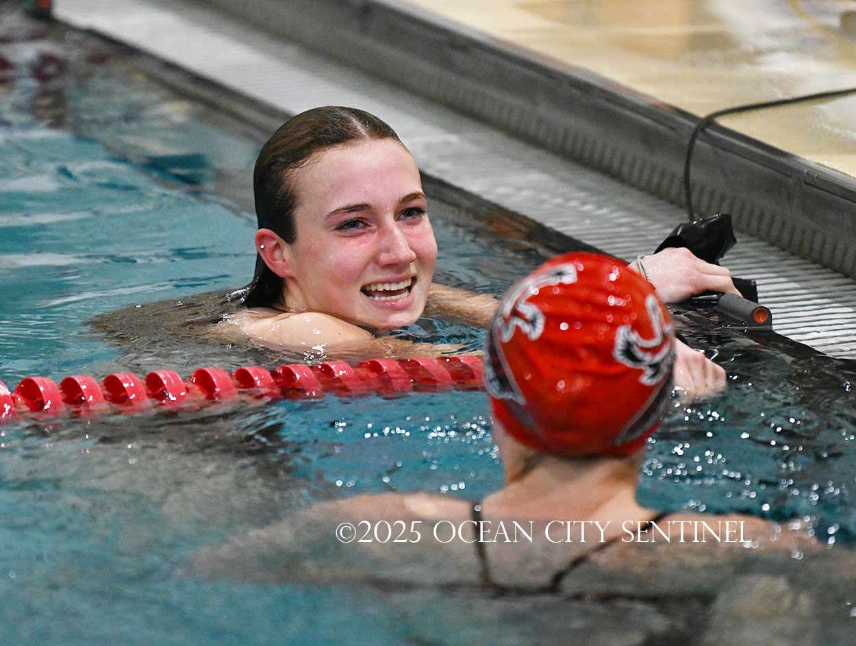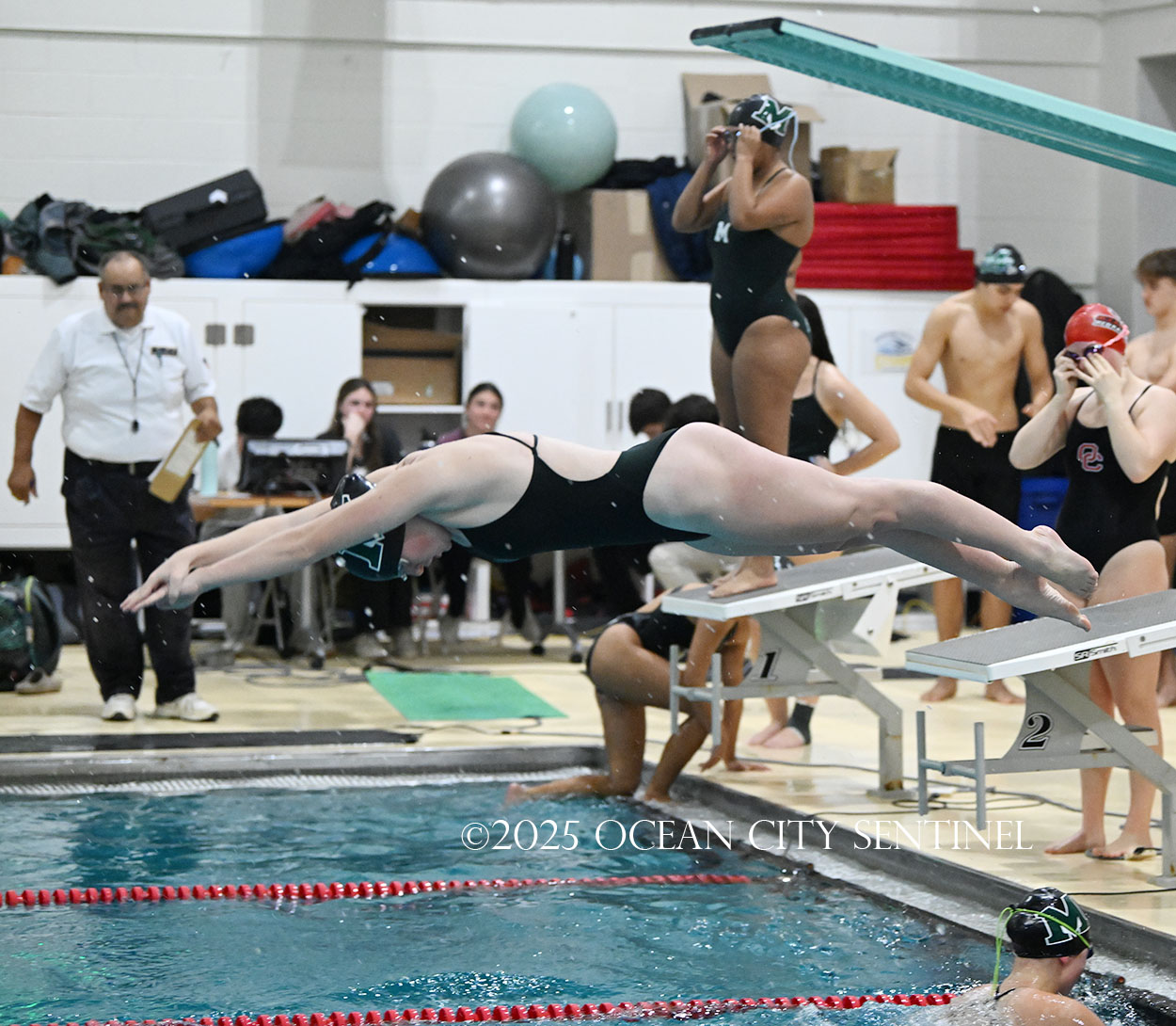 In the team’s Dec. 17 meet against Ocean City, McEvoy and Funk teamed with Avari Thoensen and Ella Wainwright to win the 200-meter medley relay and Lowry joined Funk, Wainwright and Thoensen to win the 200 freestyle relay.