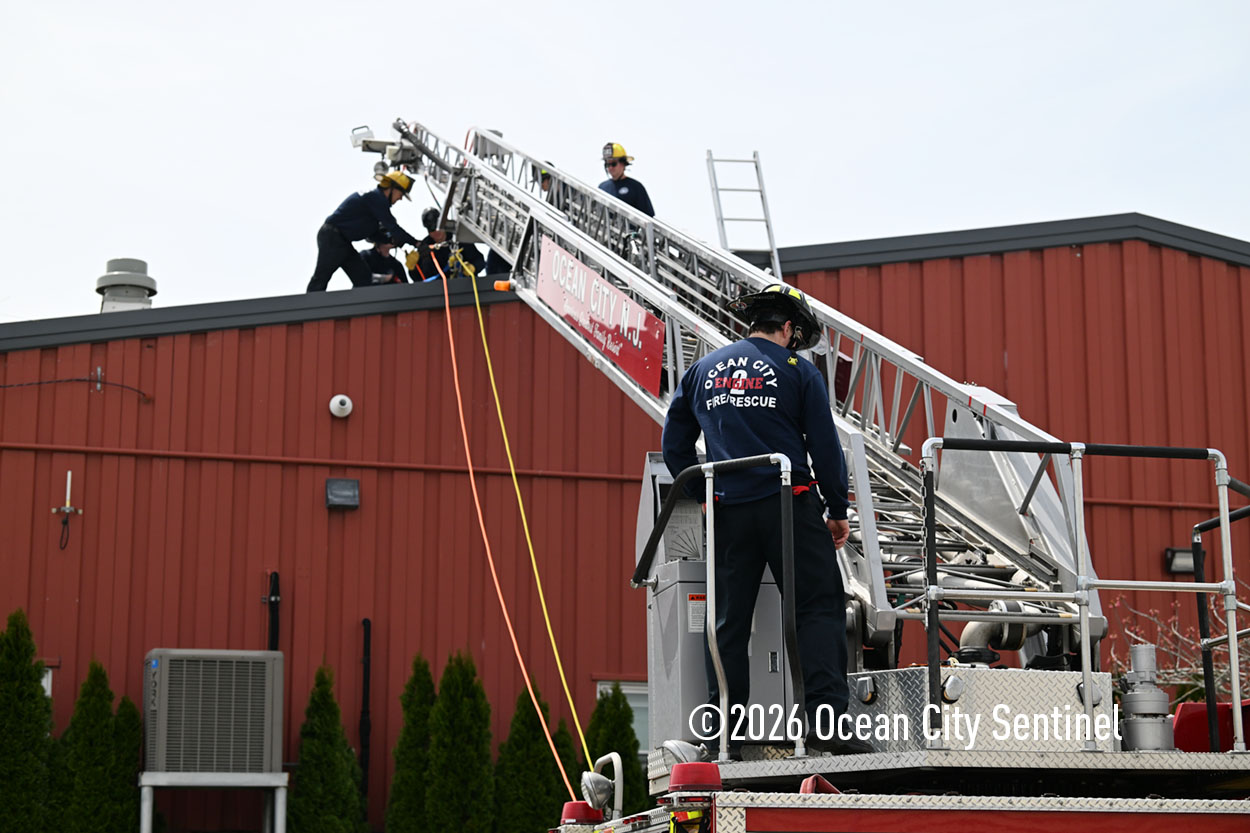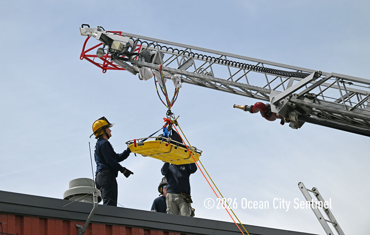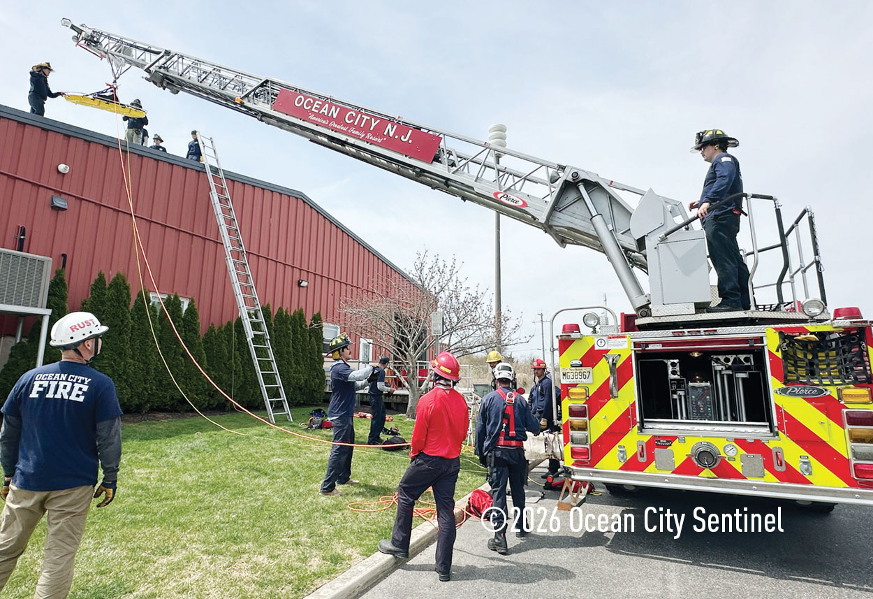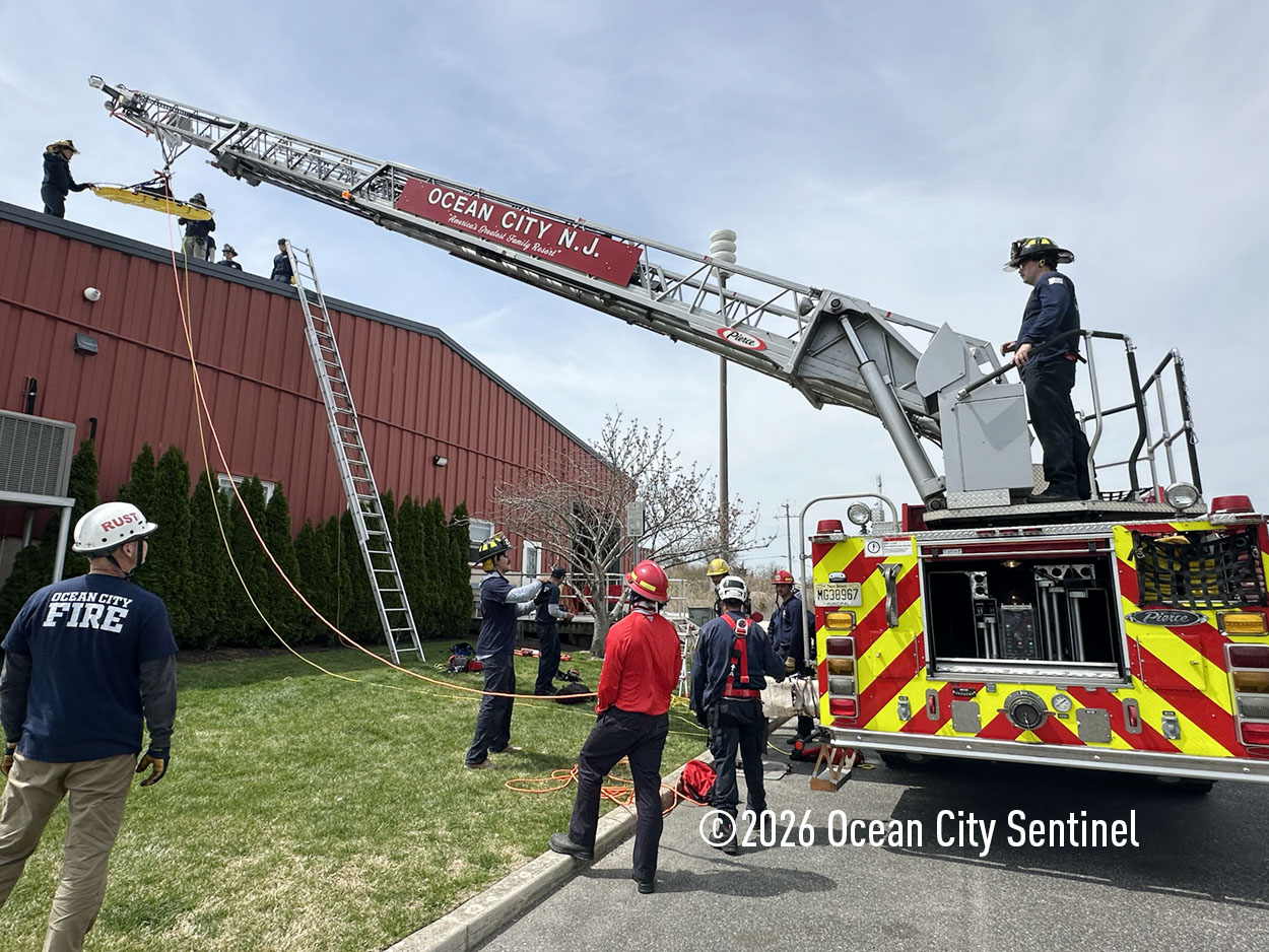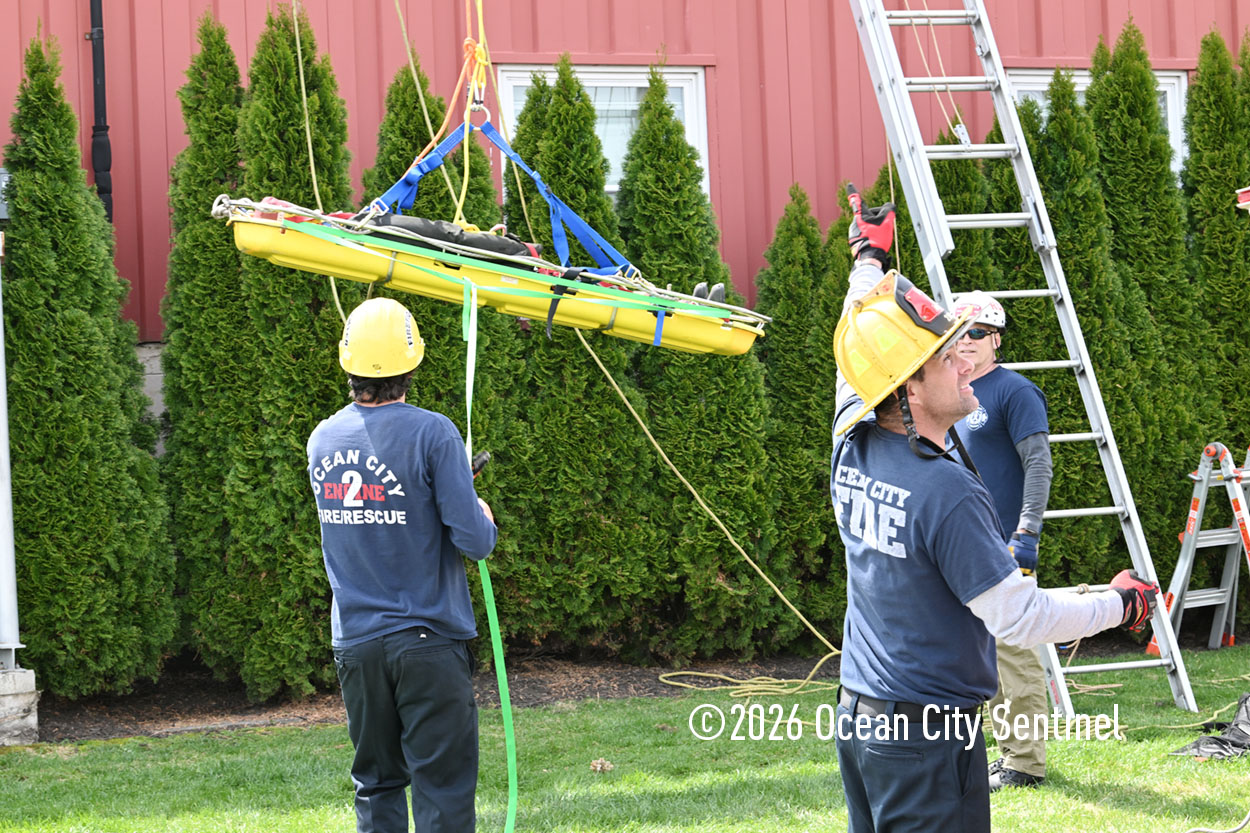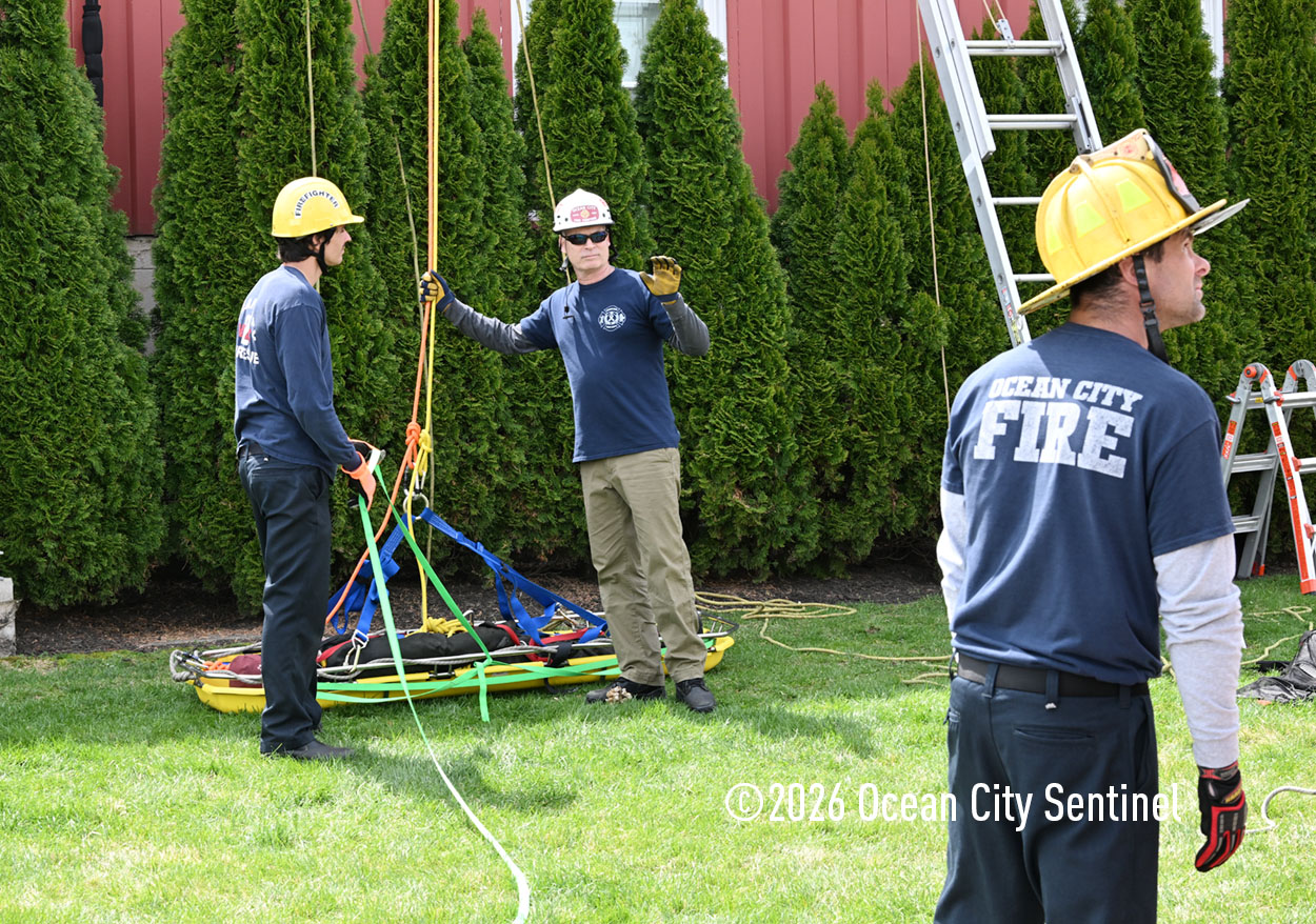 They could be seen atop the 46th Street firehouse in Ocean City, raising and then lowering a stretcher from the roof. Indoors they were working on teaching other skills.