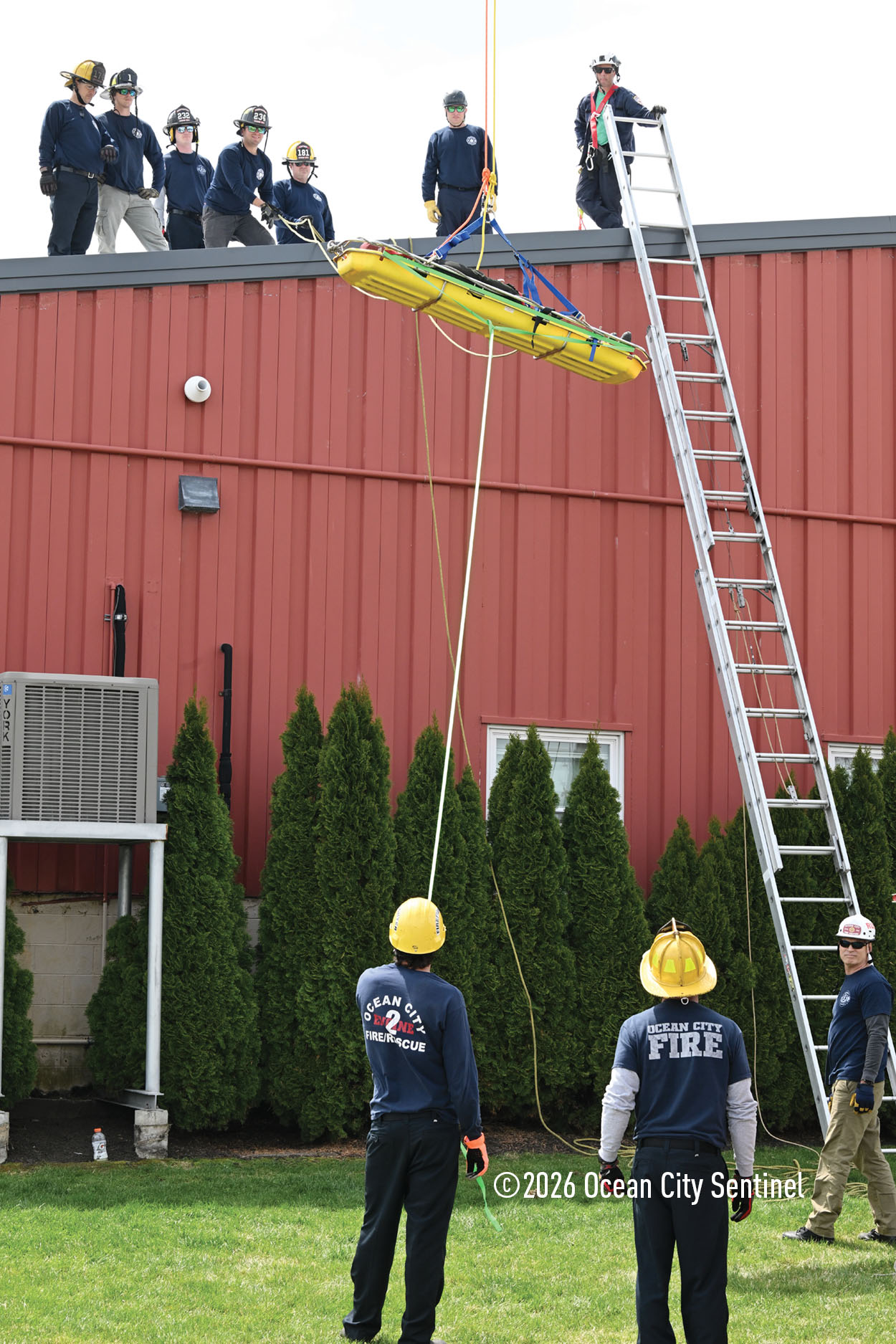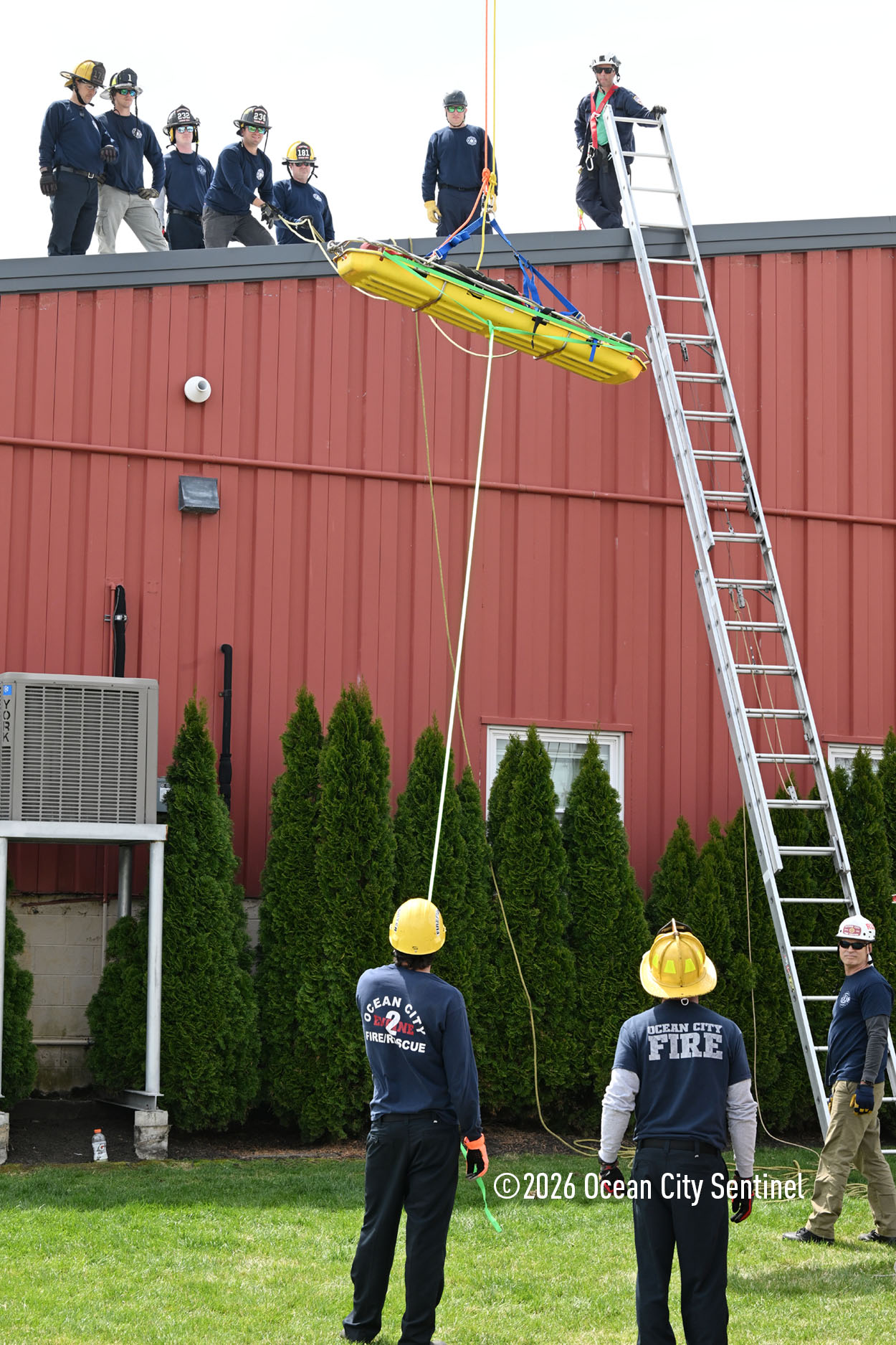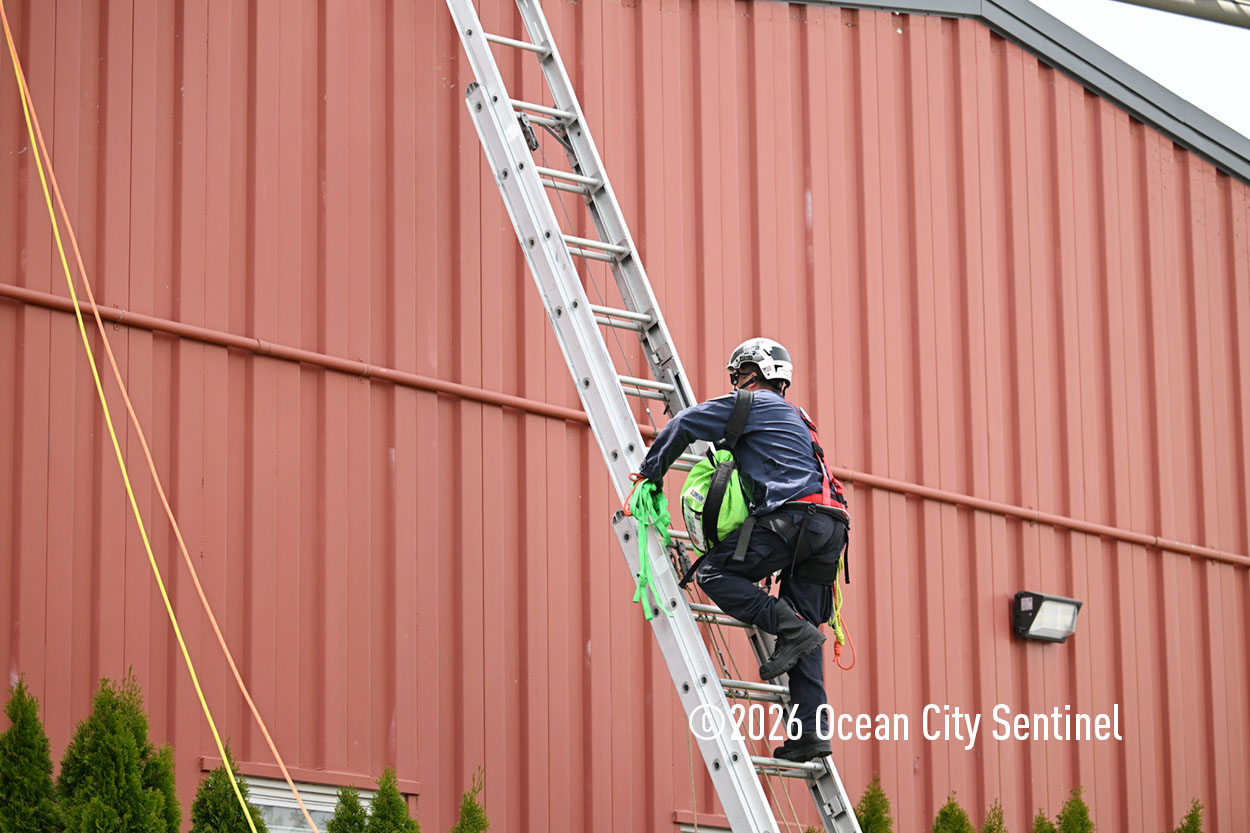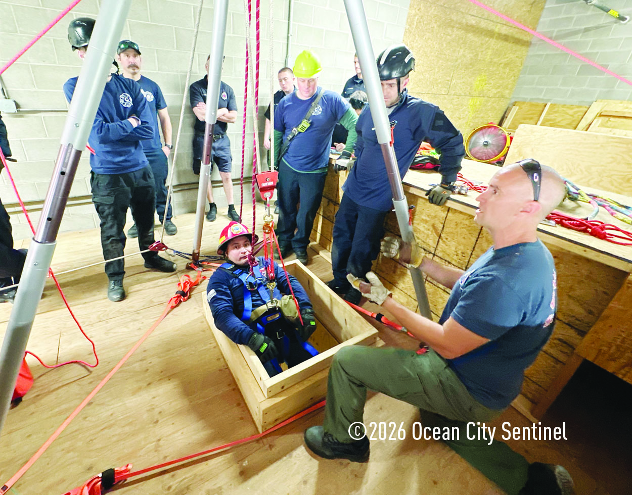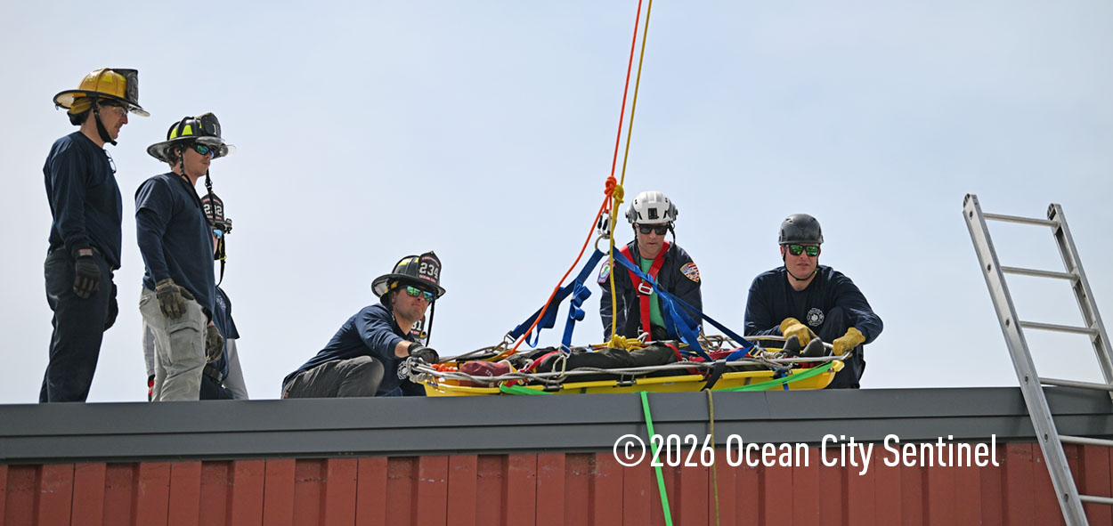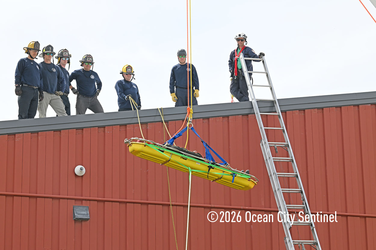 They could be seen atop the 46th Street firehouse in Ocean City, raising and then lowering a stretcher from the roof. Indoors they were working on teaching other skills.