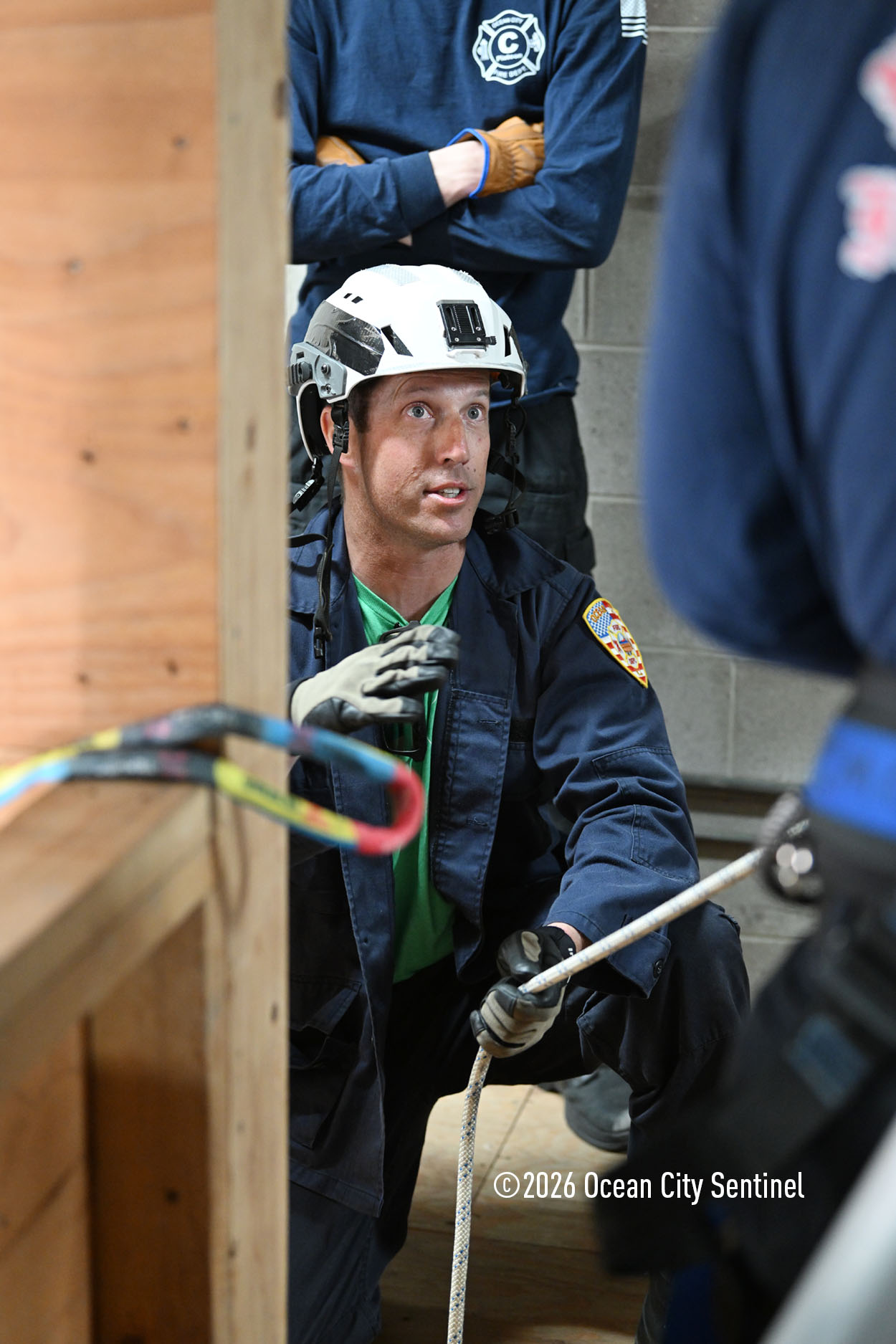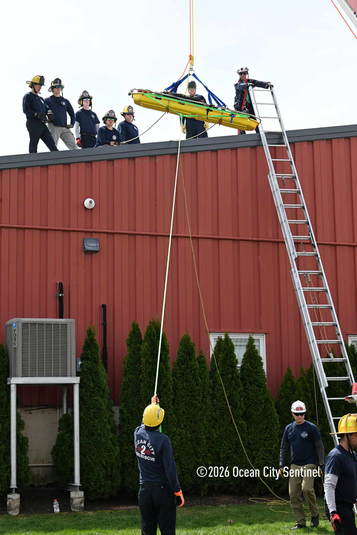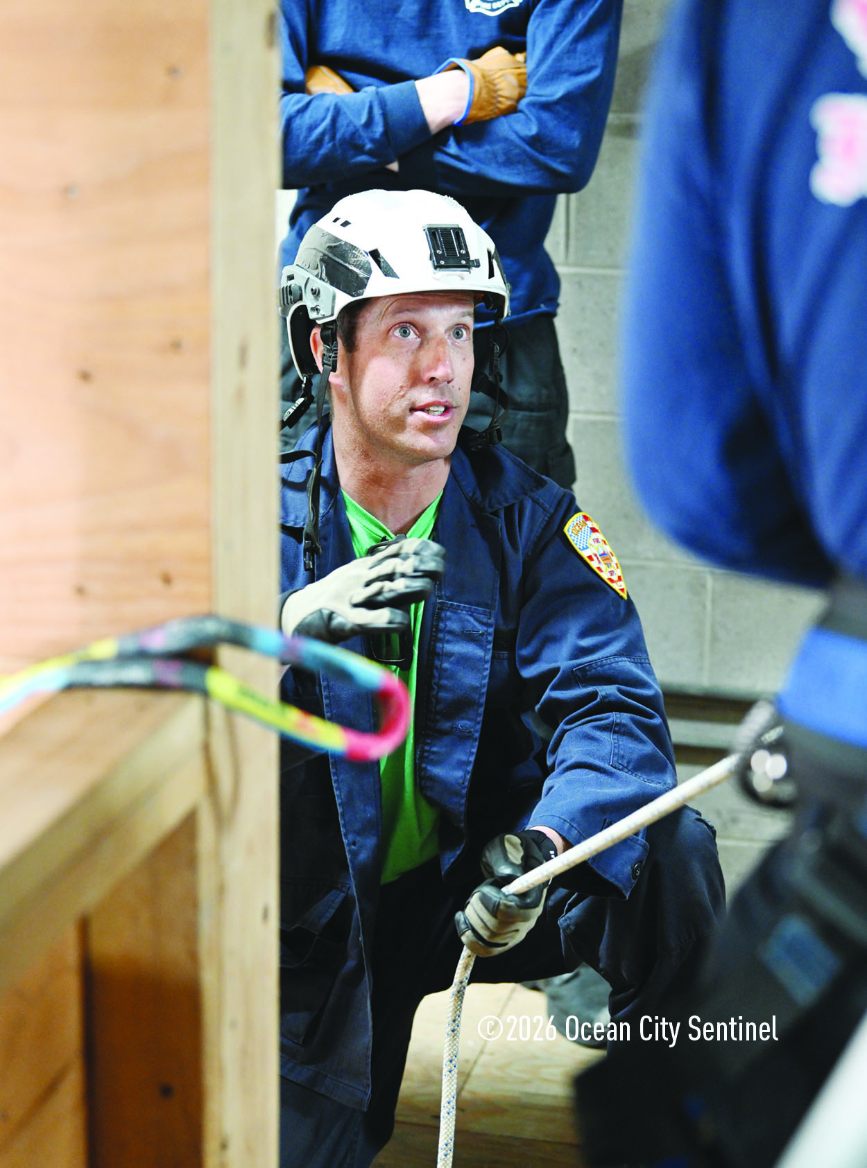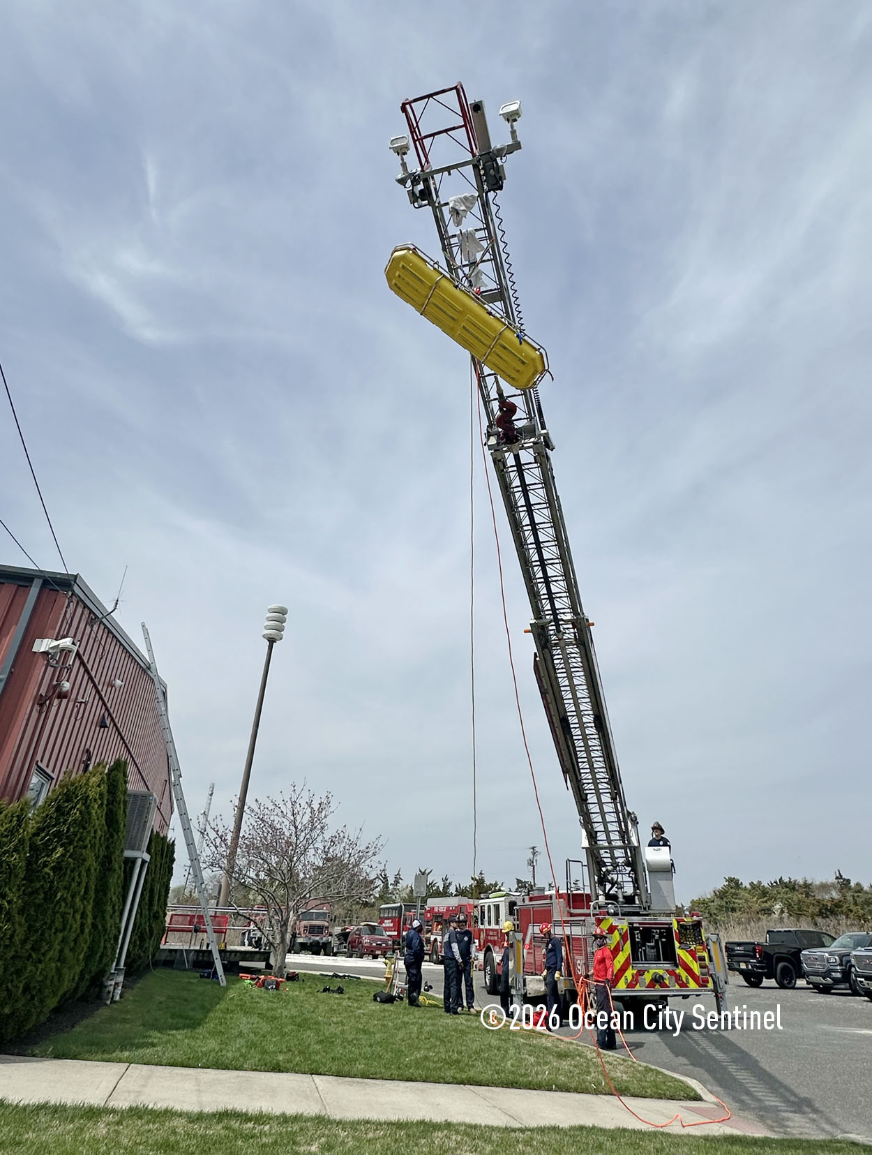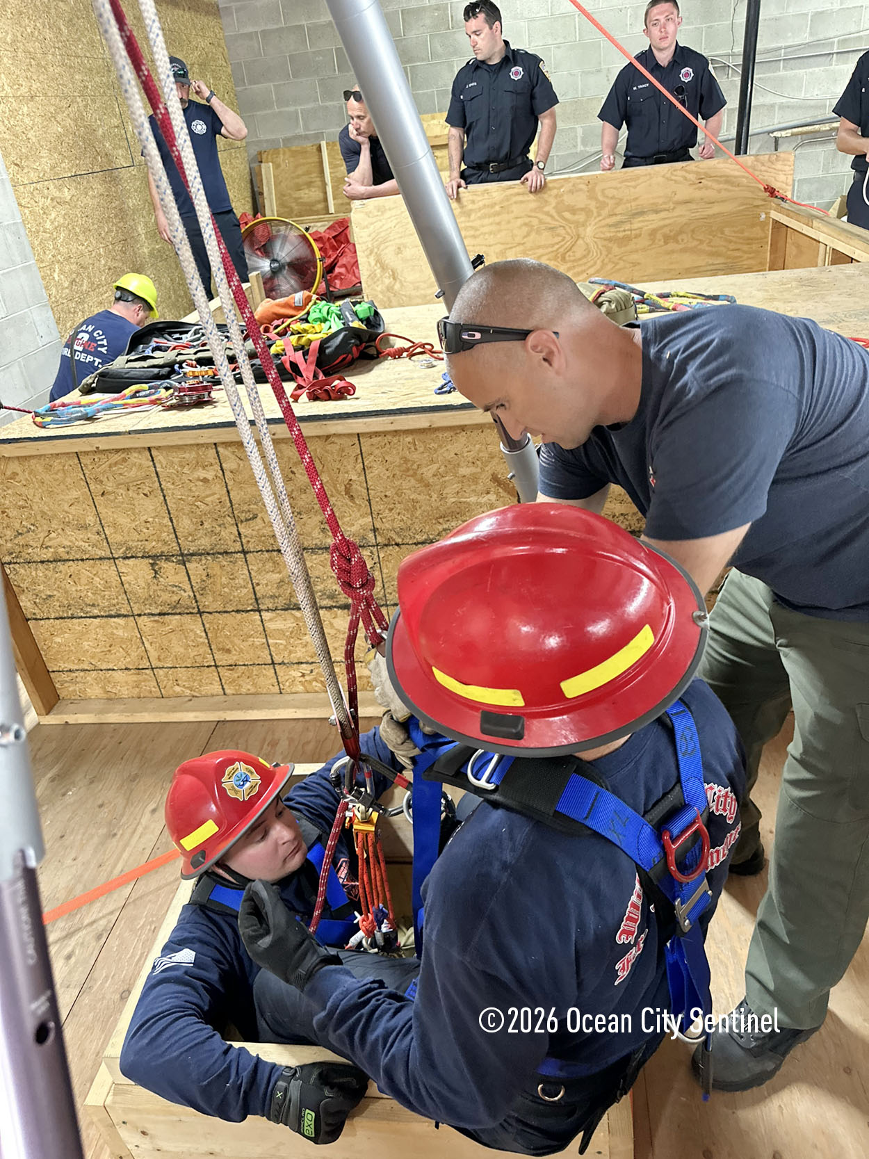 They could be seen atop the 46th Street firehouse in Ocean City, raising and then lowering a stretcher from the roof. Indoors they were working on teaching other skills.