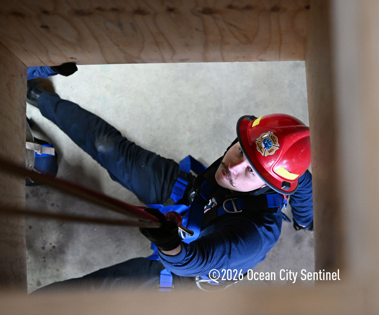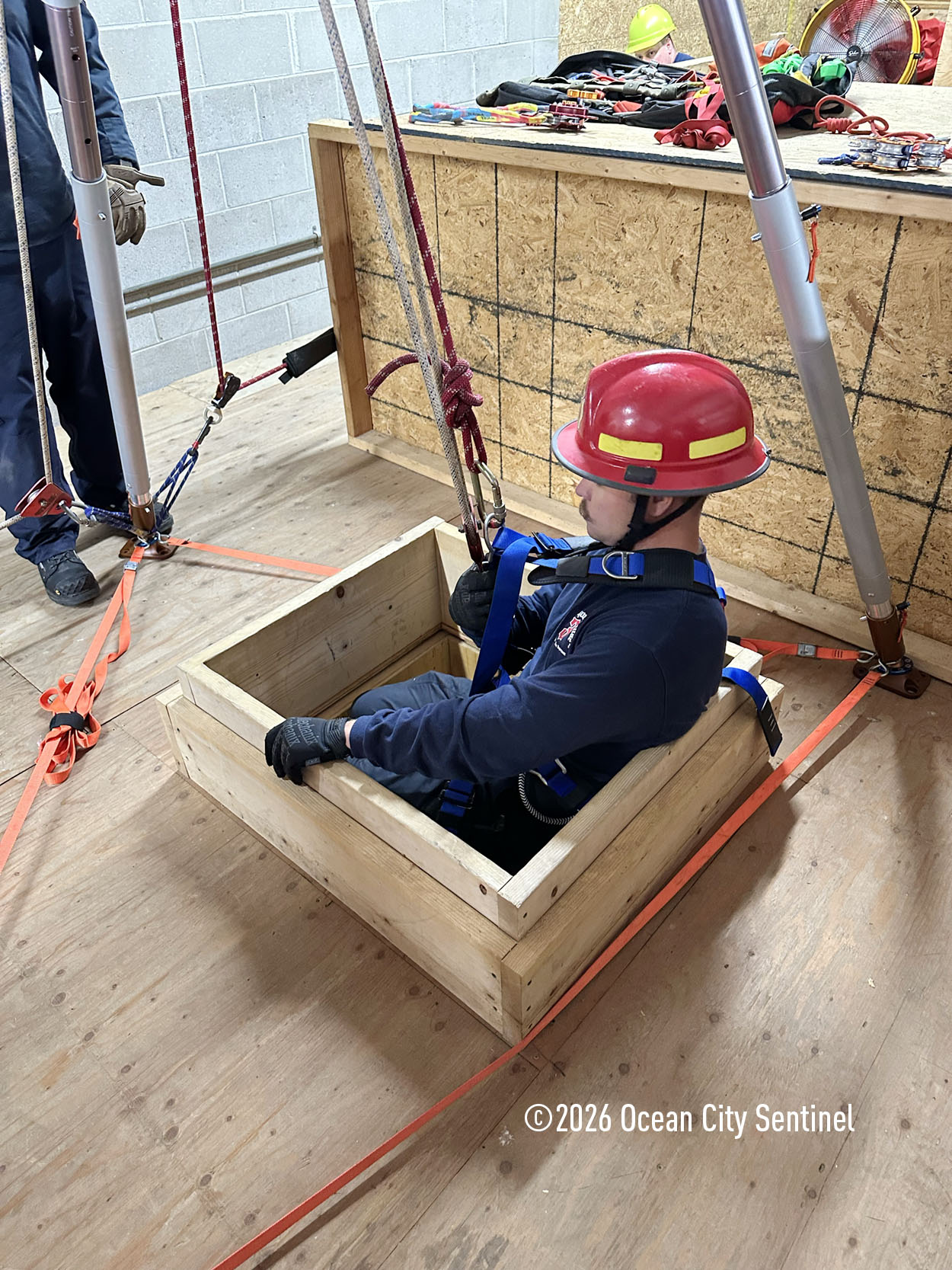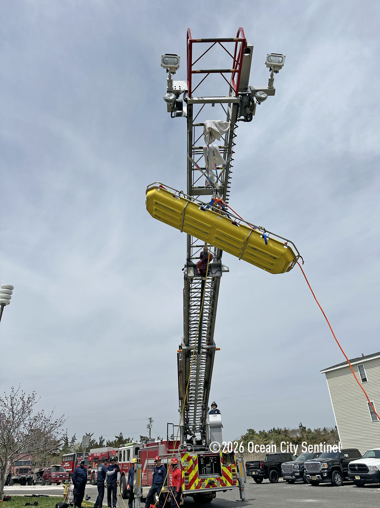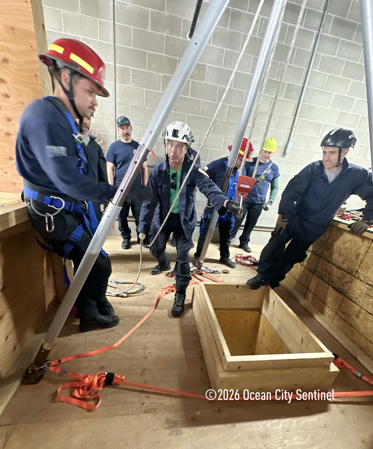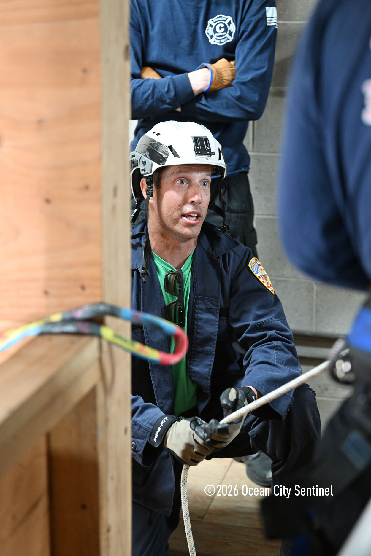 They could be seen atop the 46th Street firehouse in Ocean City, raising and then lowering a stretcher from the roof. Indoors they were working on teaching other skills.