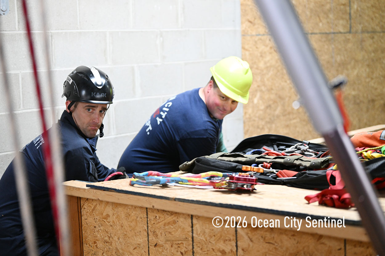 Ocean City firefighter Matt Long and Wildwood firefighter Rich Harron are members of USAR and Task Force One, a tactical rescue team for the state of New Jersey. They spent April 16 teaching members of their respective departments rope skills.