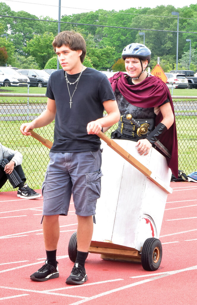Dressed as a gladiator, student Jack Traa, a junior from Linwood, said chariot races was the entertainment of the day.