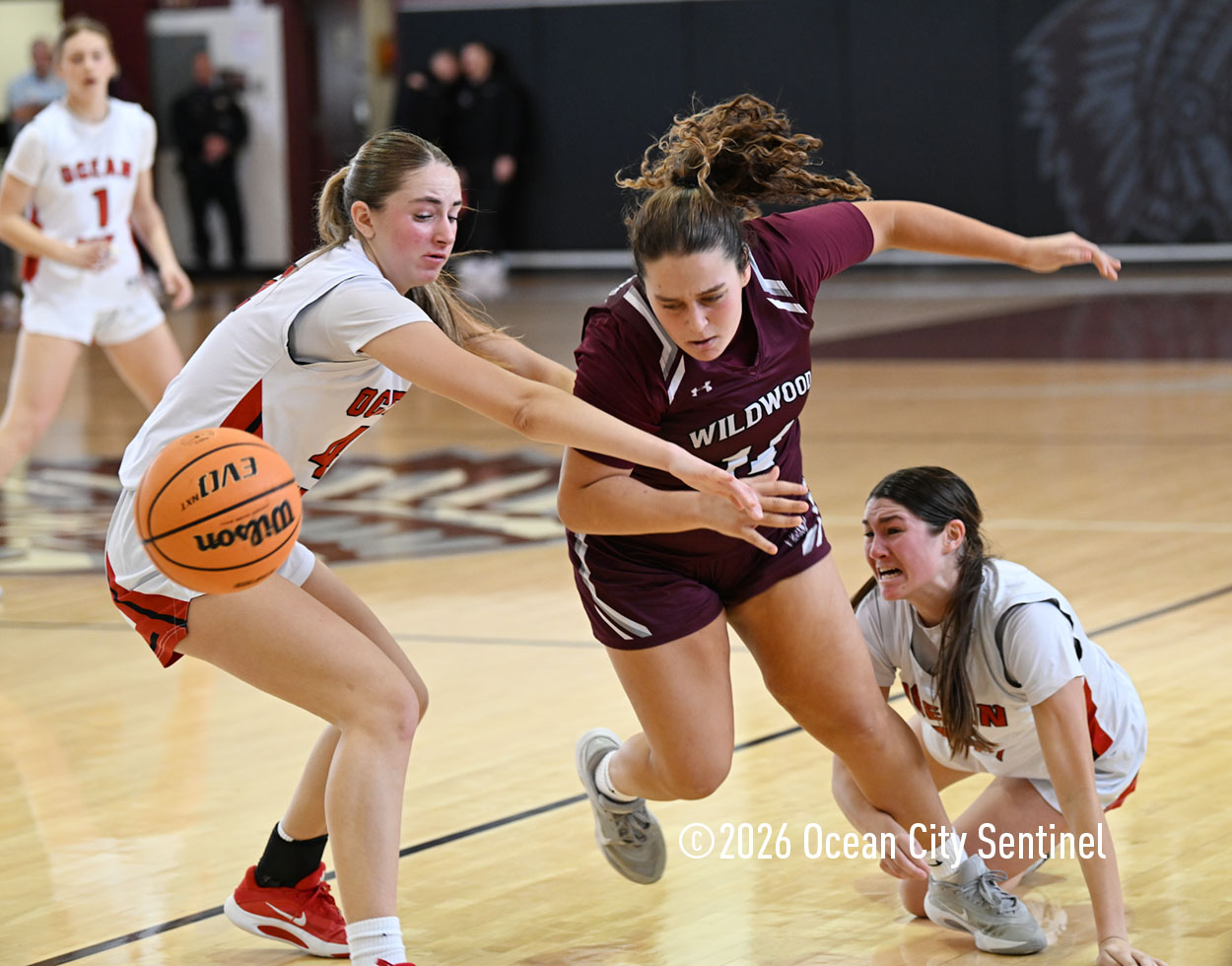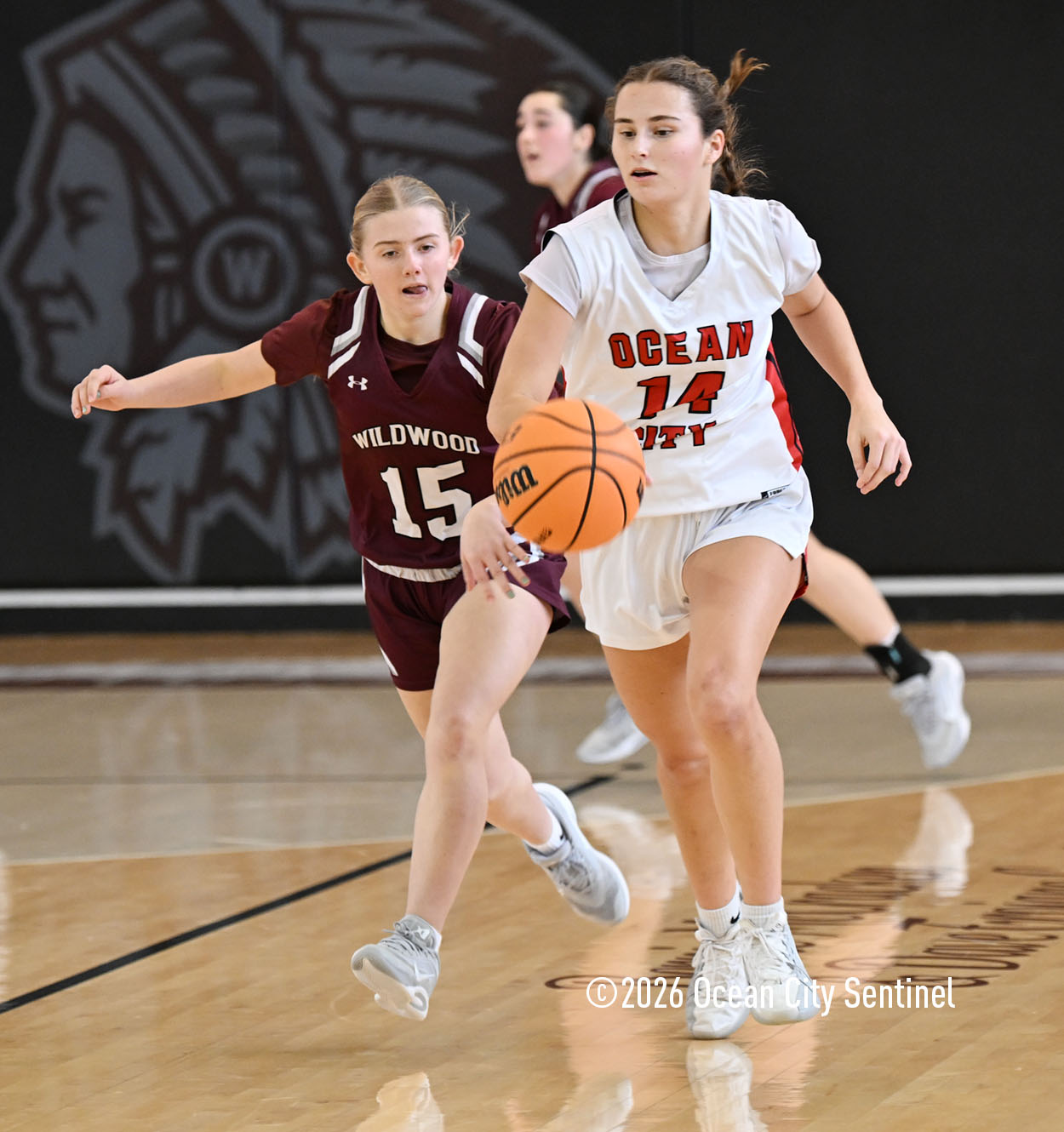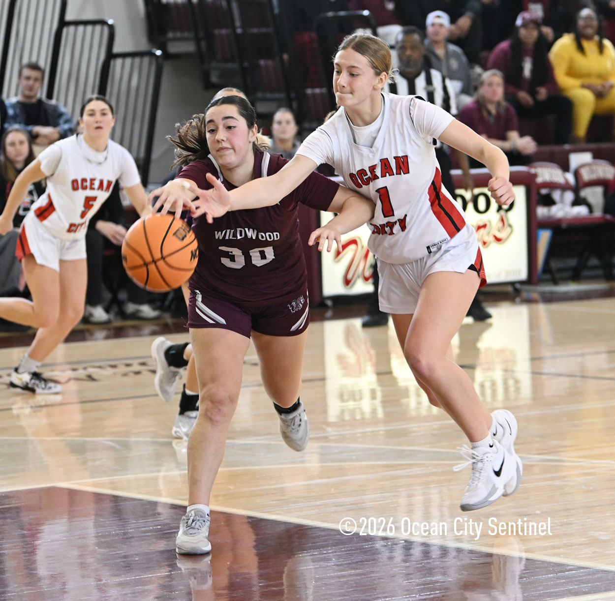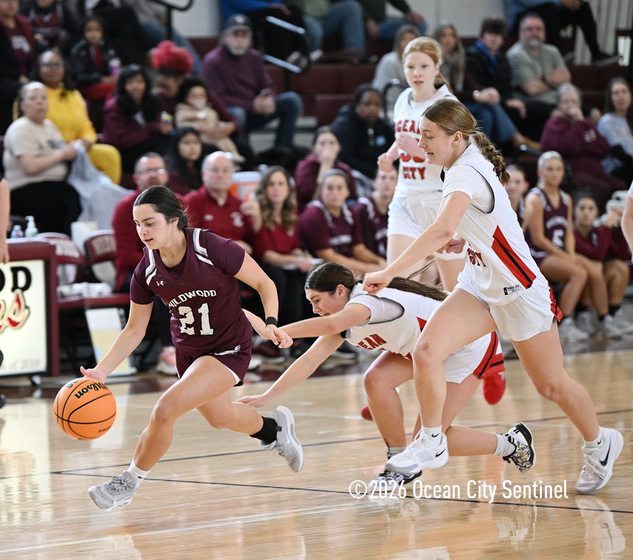 WILDWOOD – One last play separated the Ocean City Red Raider girls from victory after a back-and-forth battle against the Wildwood Warriors was decided on the final shot.