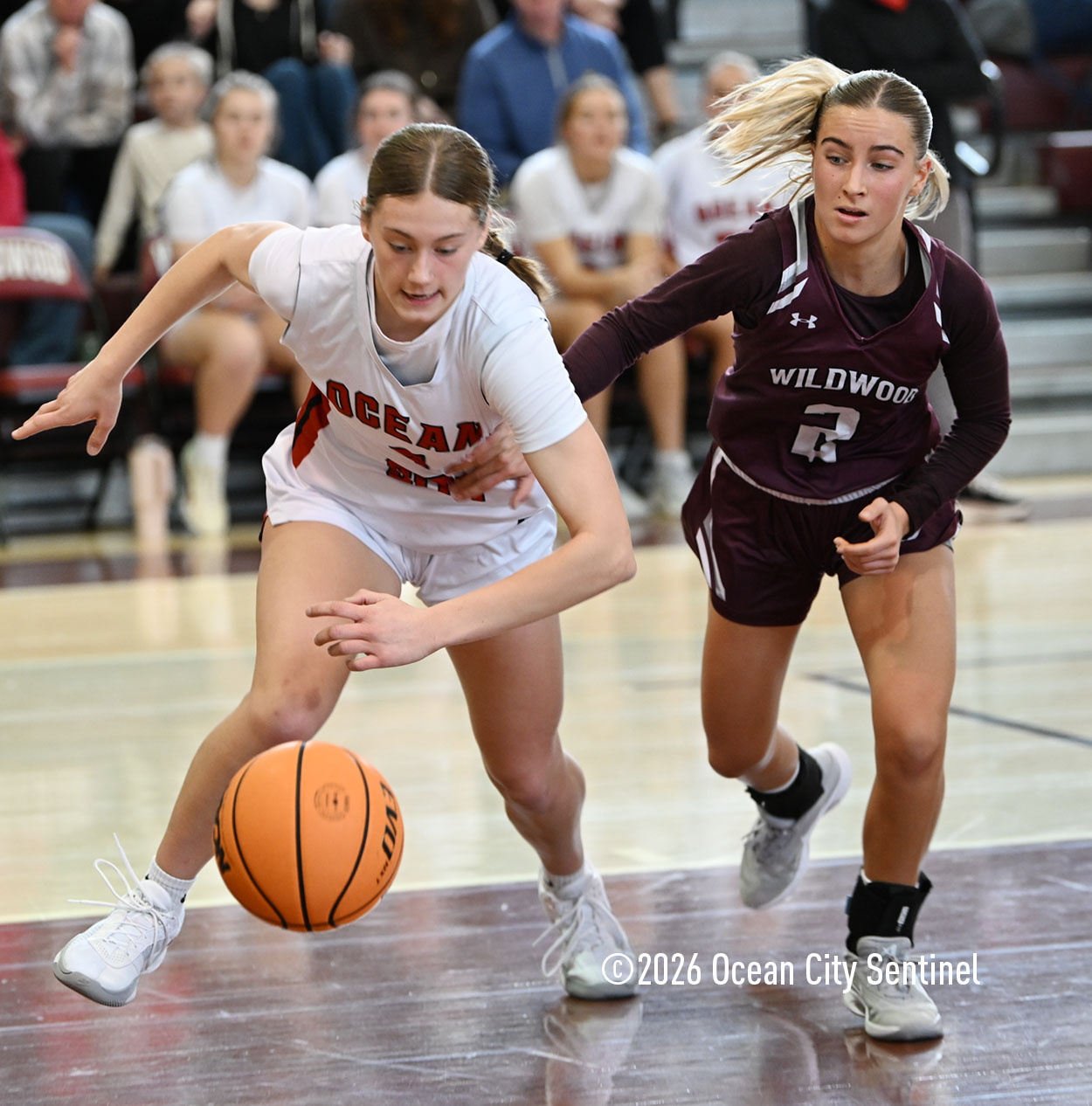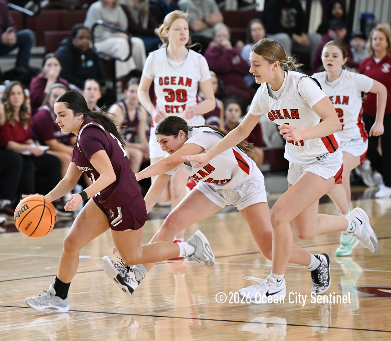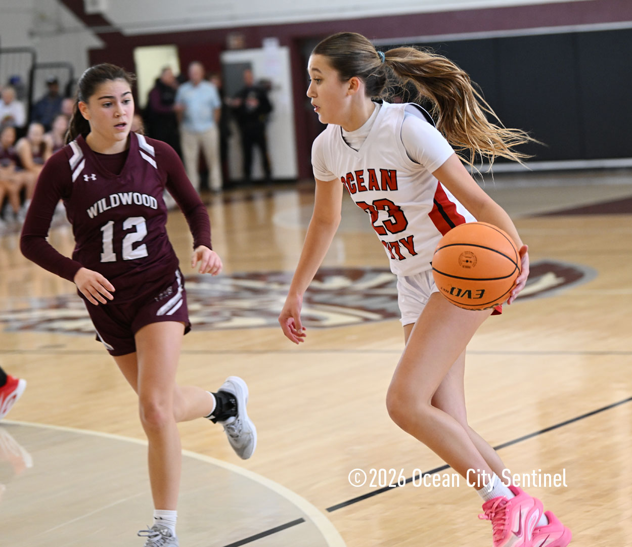 WILDWOOD – One last play separated the Ocean City Red Raider girls from victory after a back-and-forth battle against the Wildwood Warriors was decided on the final shot.