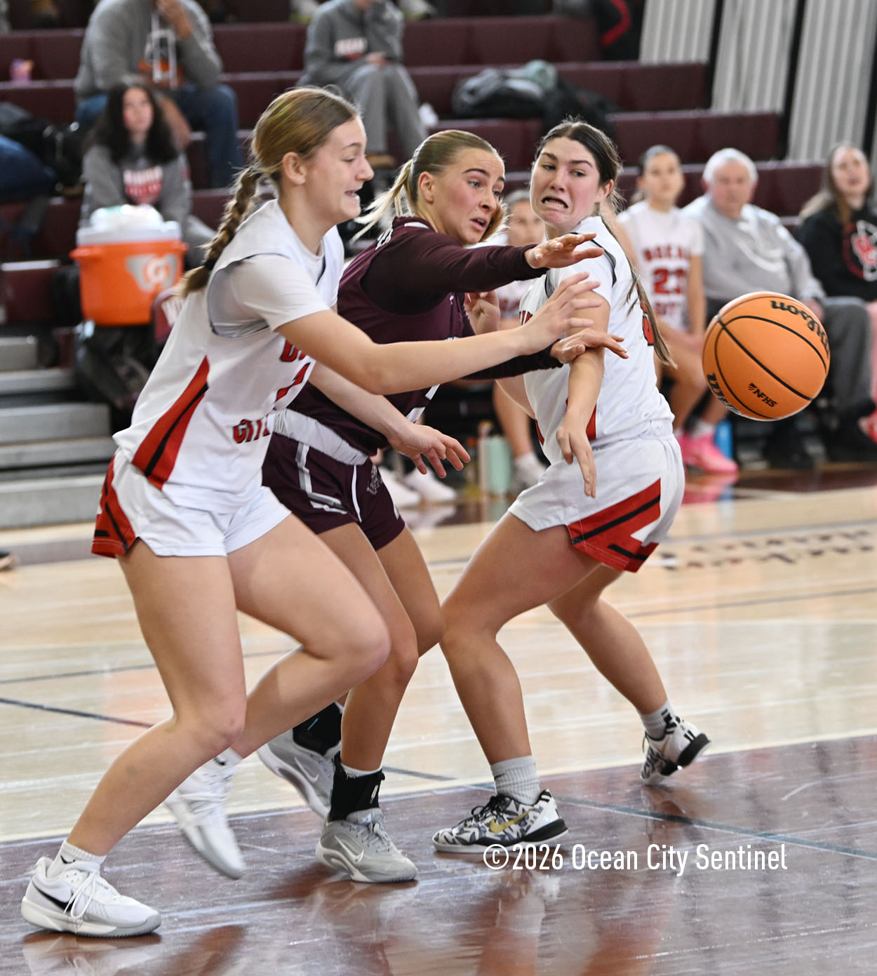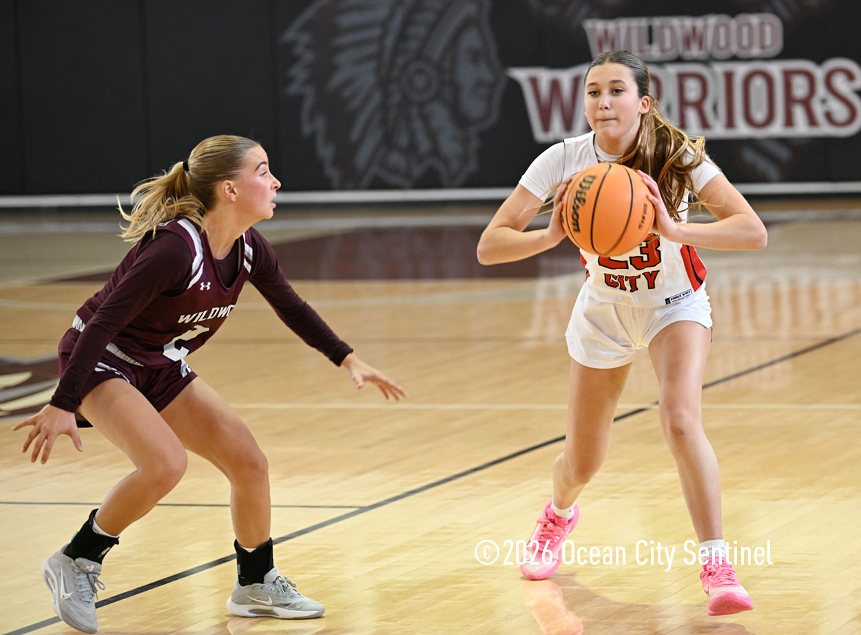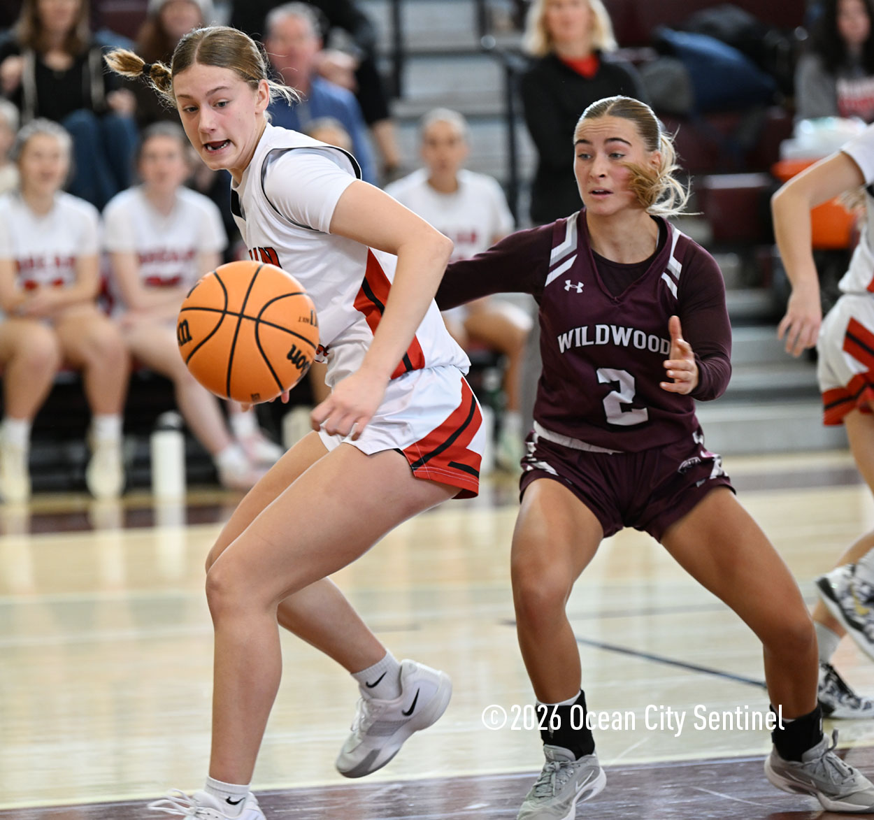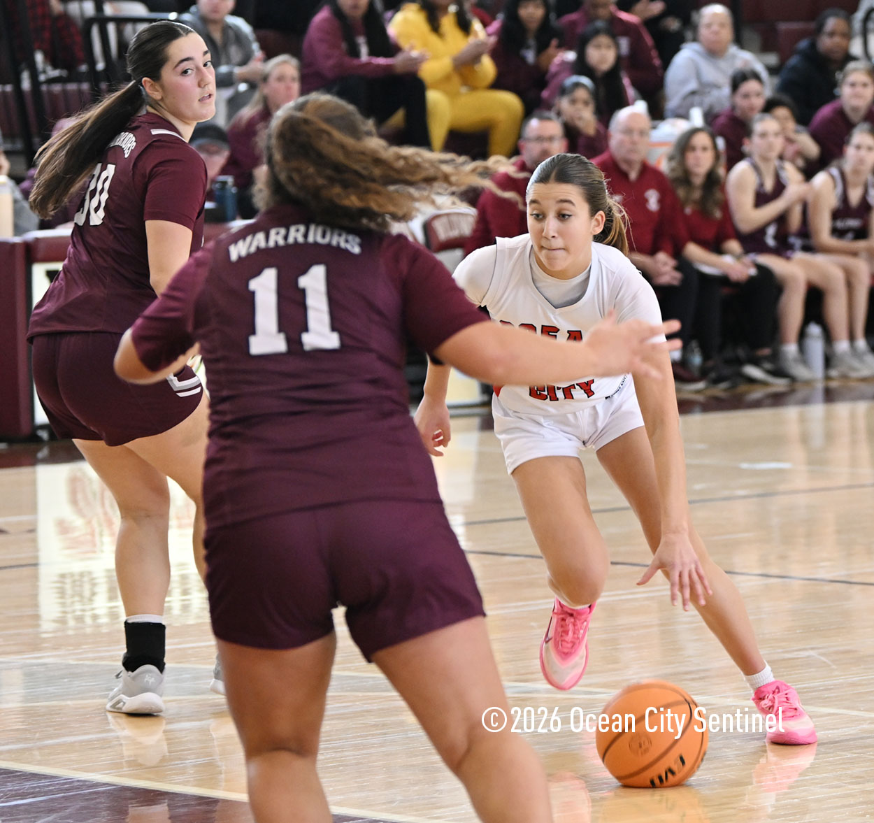WILDWOOD – One last play separated the Ocean City Red Raider girls from victory after a back-and-forth battle against the Wildwood Warriors was decided on the final shot.