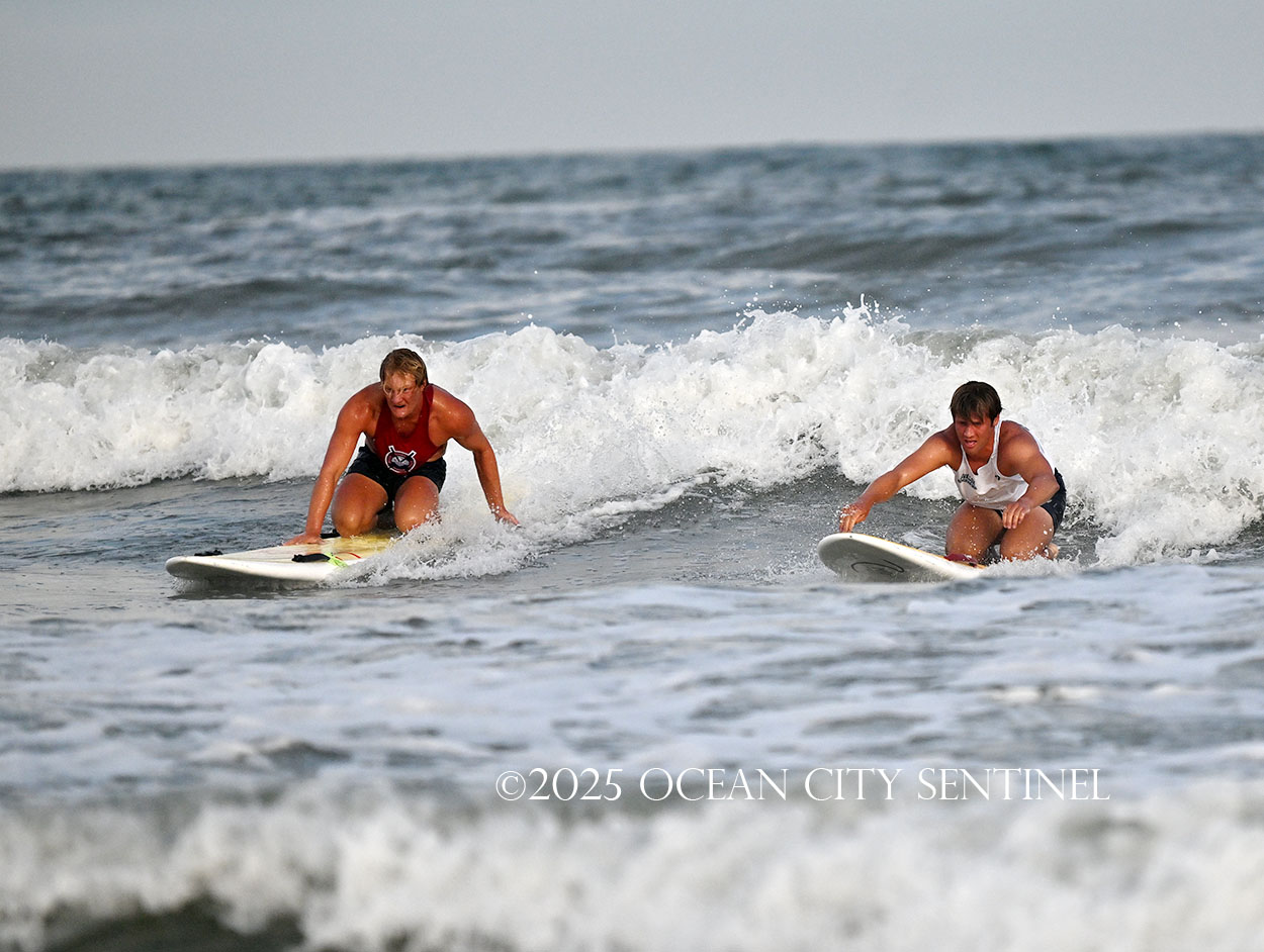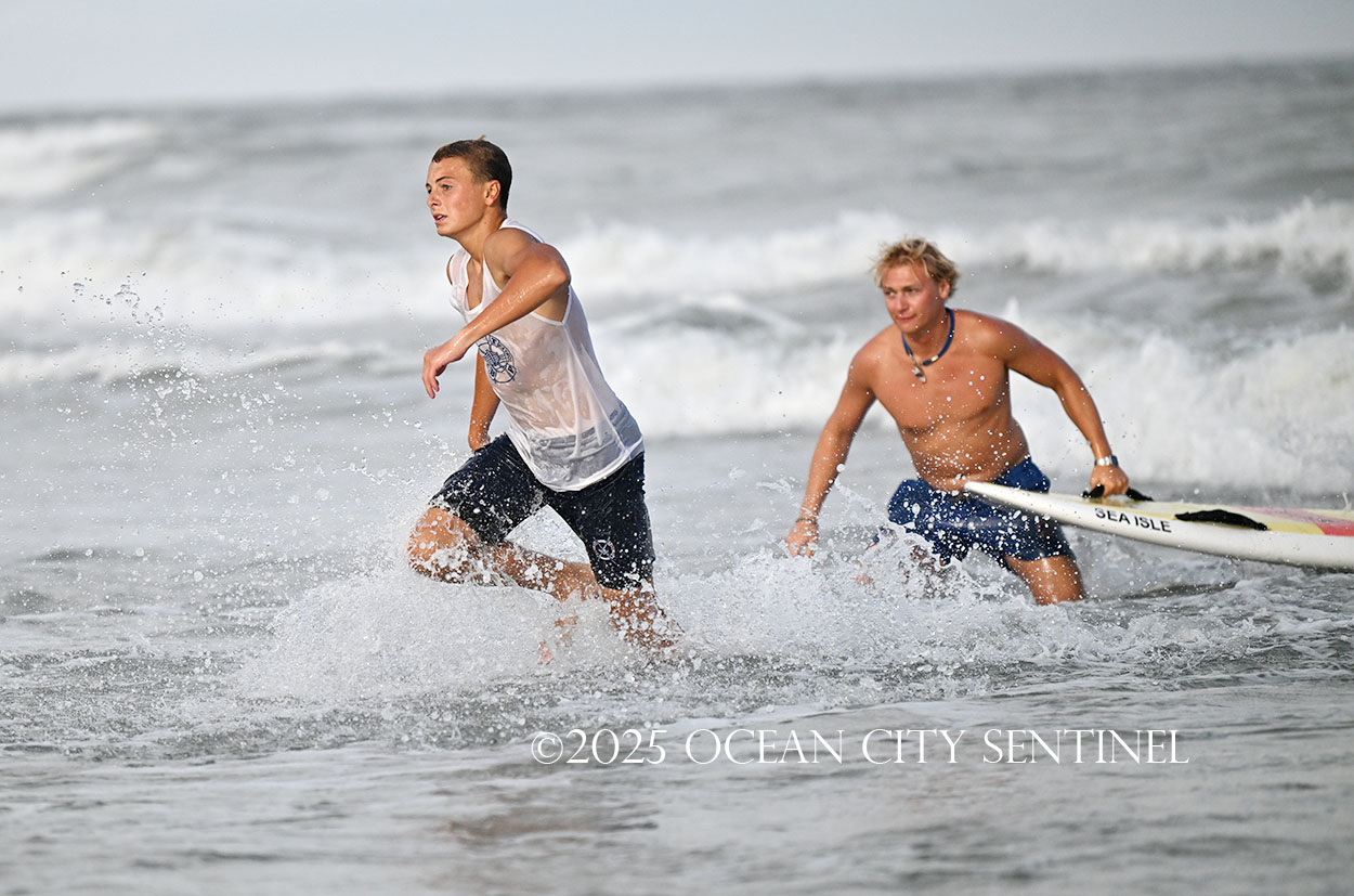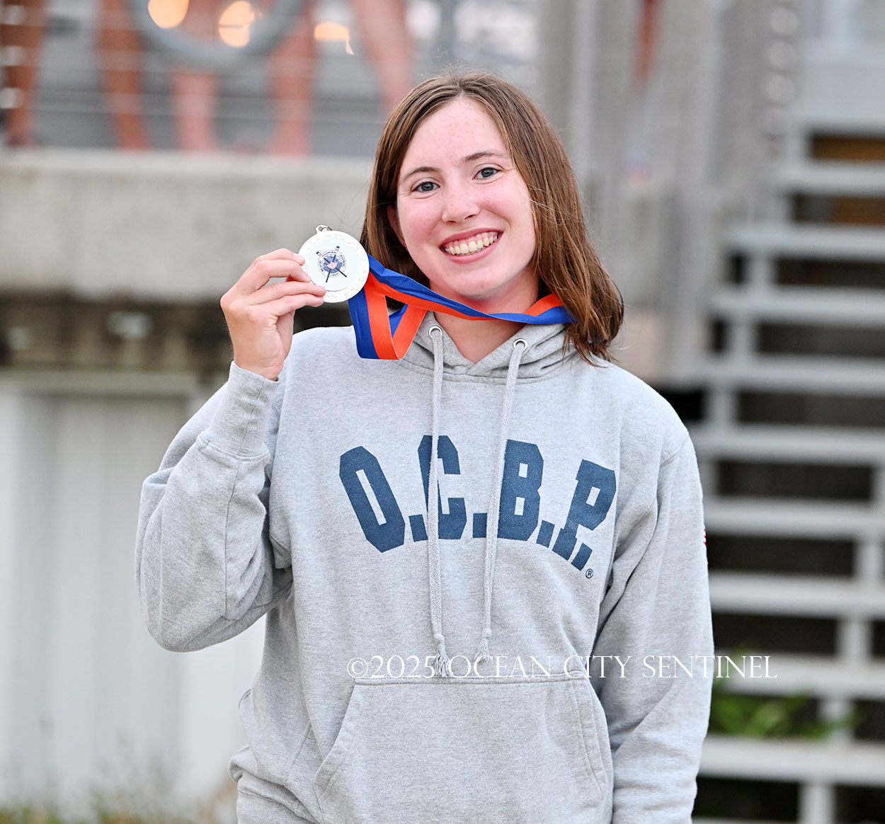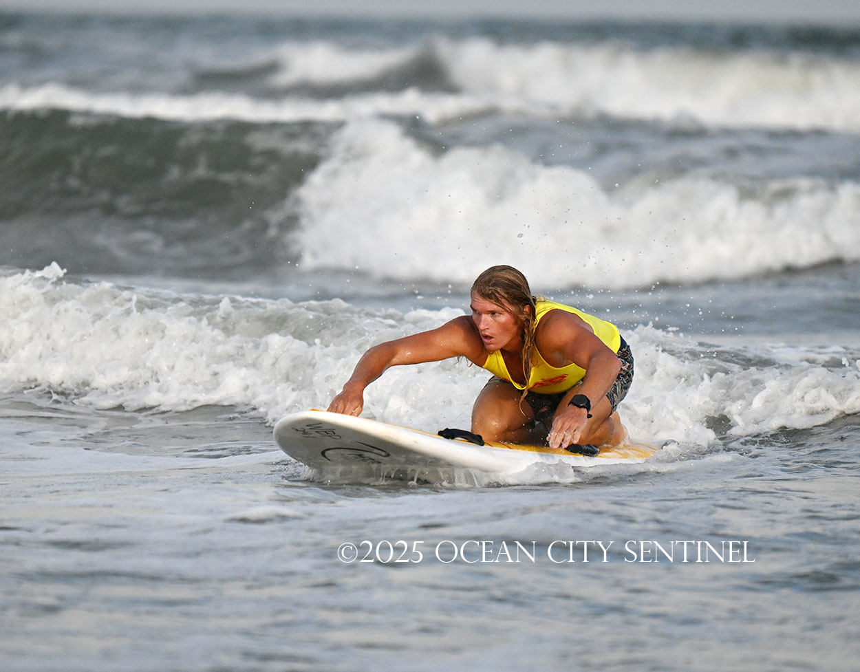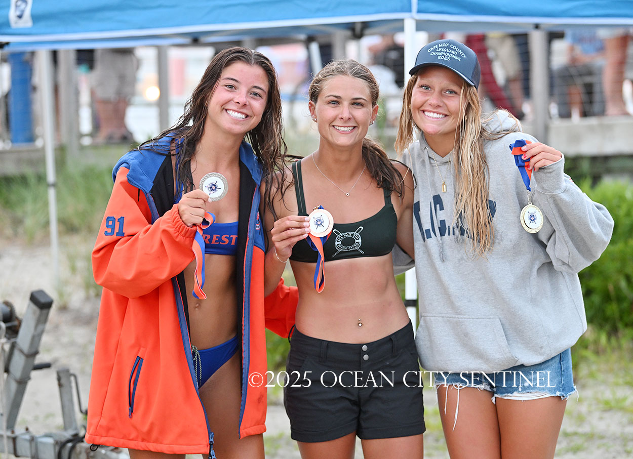 The OCBP’s Brynn Gallagher, who just graduated from Ocean City High School, won the female paddleboard competition. Wildwood Crest’s Maddie Priest and Sea Isle City’s Kylie Fry battled all the way through, with Priest edging Fry for third. Upper Township’s Lindsey Robbins was fourth and Cape May’s Emma DeMario was fifth.