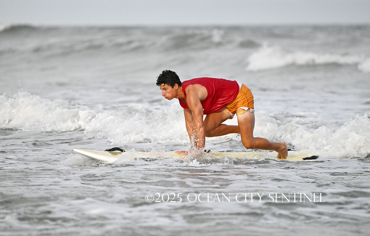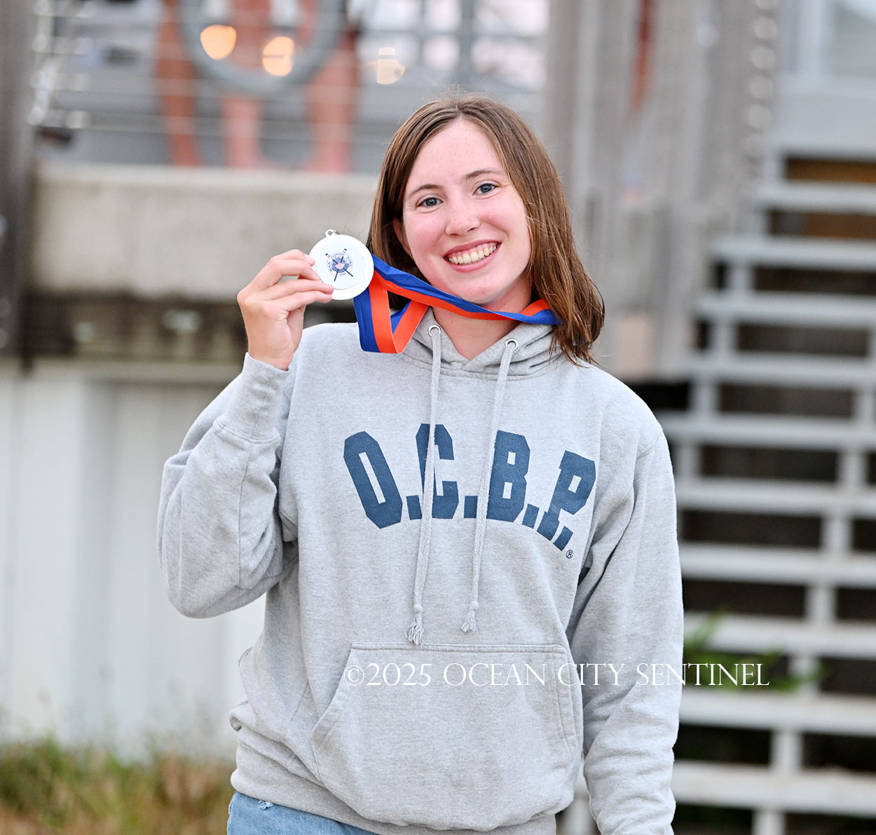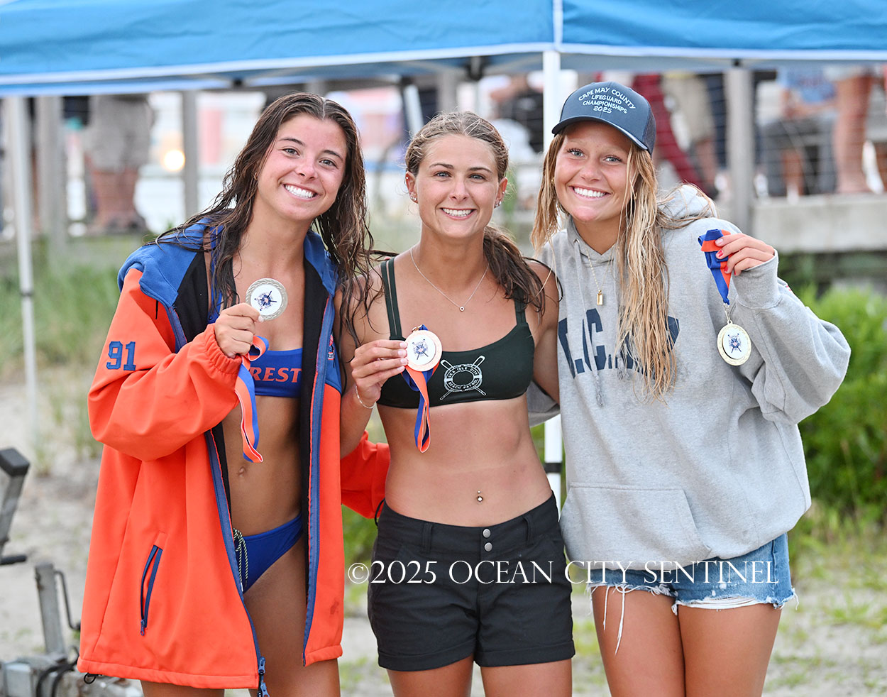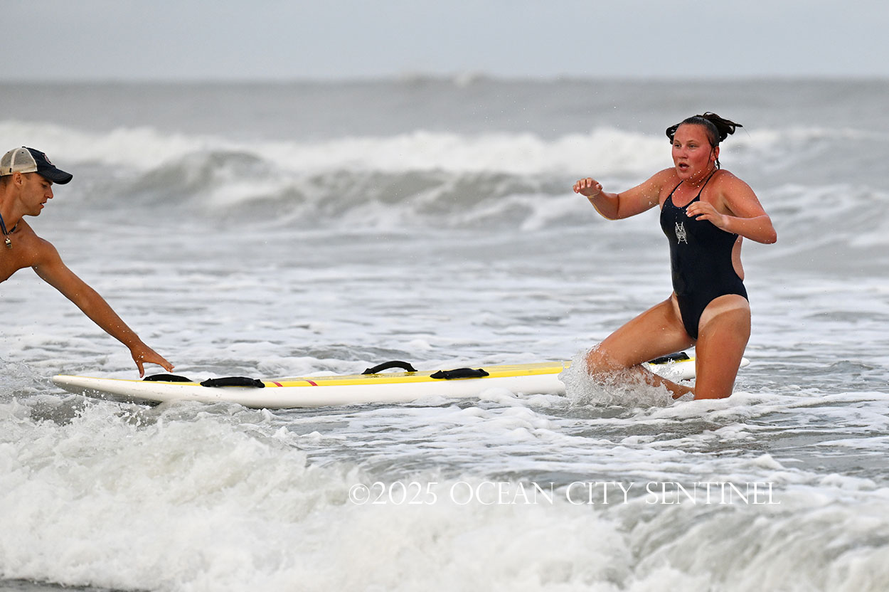 The OCBP’s Brynn Gallagher, who just graduated from Ocean City High School, won the female paddleboard competition. Wildwood Crest’s Maddie Priest and Sea Isle City’s Kylie Fry battled all the way through, with Priest edging Fry for third. Upper Township’s Lindsey Robbins was fourth and Cape May’s Emma DeMario was fifth.