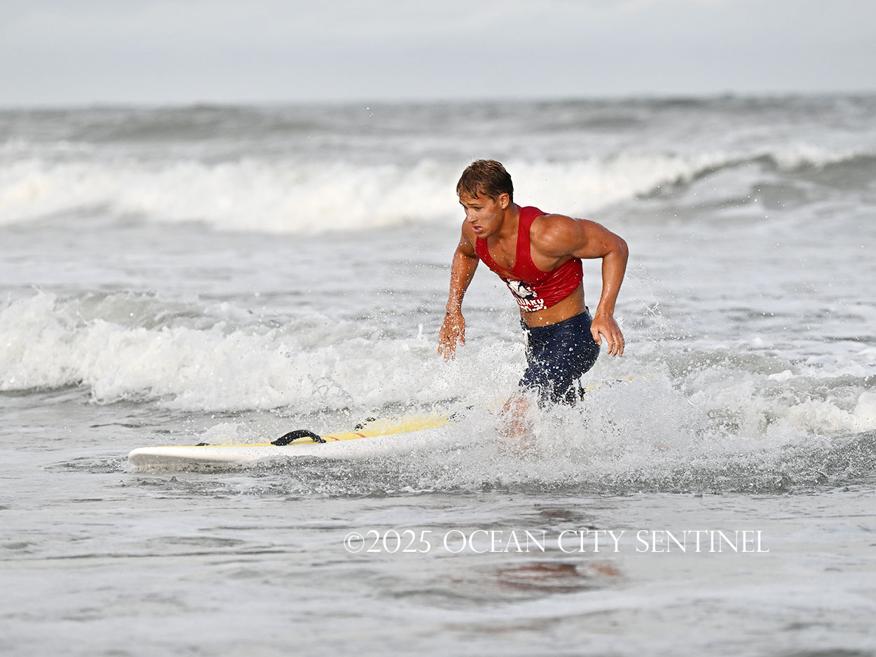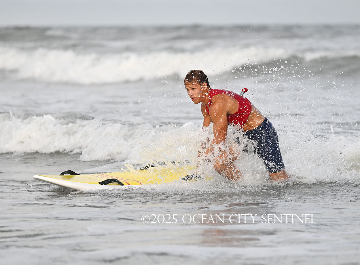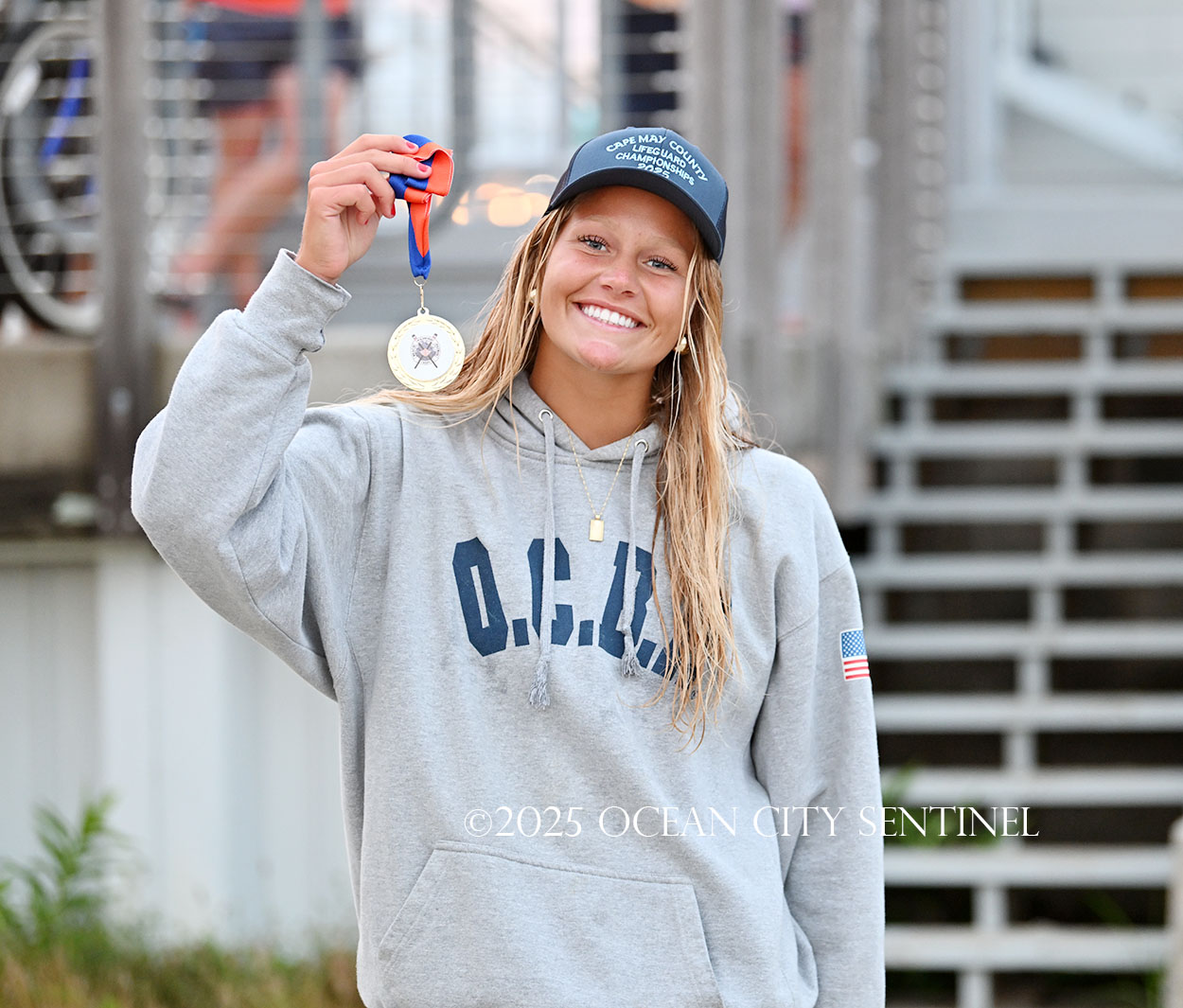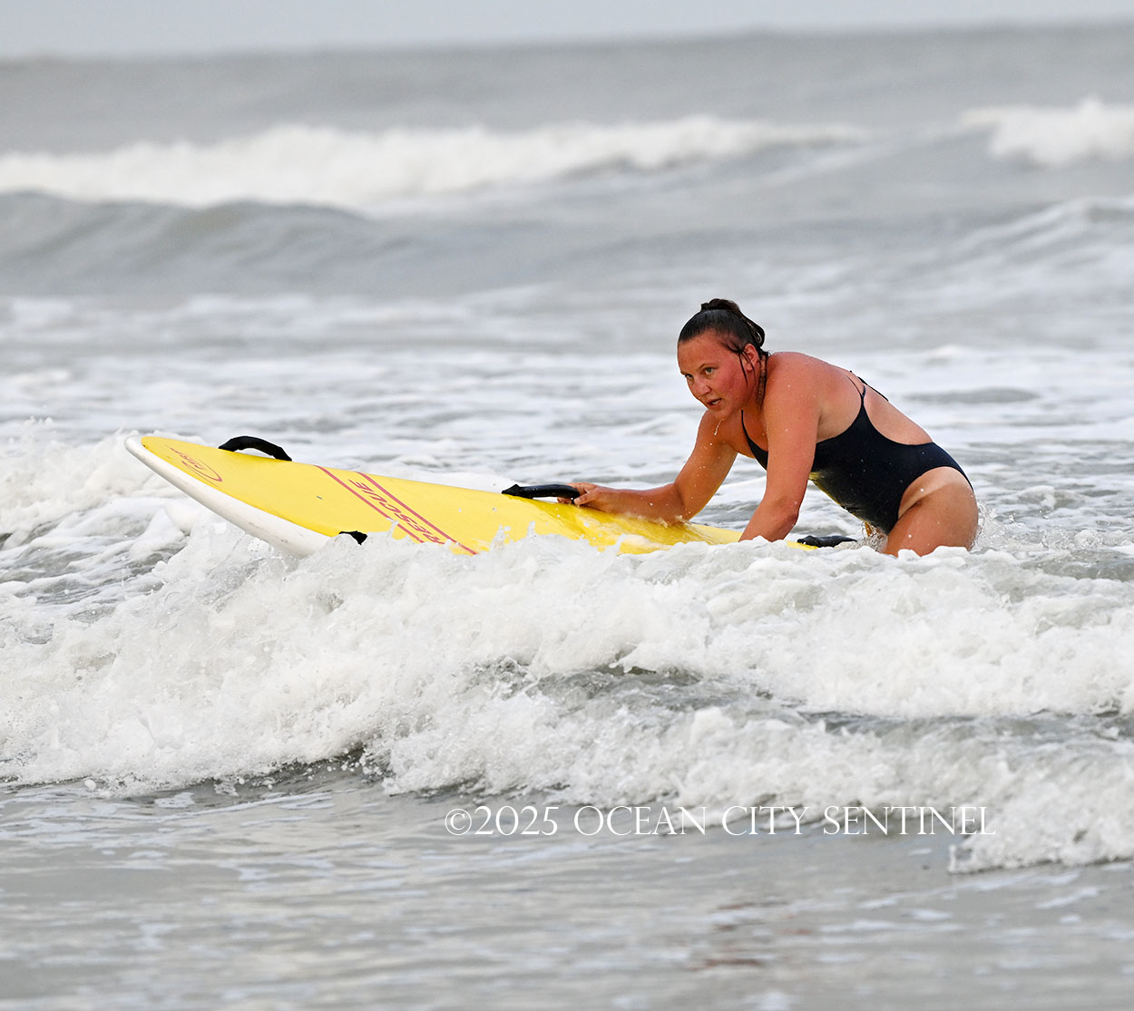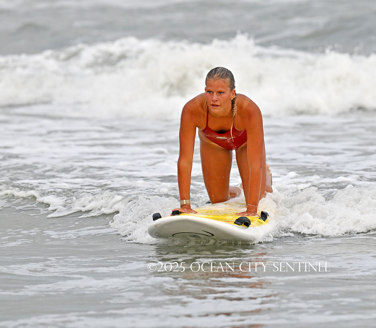 The OCBP’s Brynn Gallagher, who just graduated from Ocean City High School, won the female paddleboard competition. Wildwood Crest’s Maddie Priest and Sea Isle City’s Kylie Fry battled all the way through, with Priest edging Fry for third. Upper Township’s Lindsey Robbins was fourth and Cape May’s Emma DeMario was fifth.
