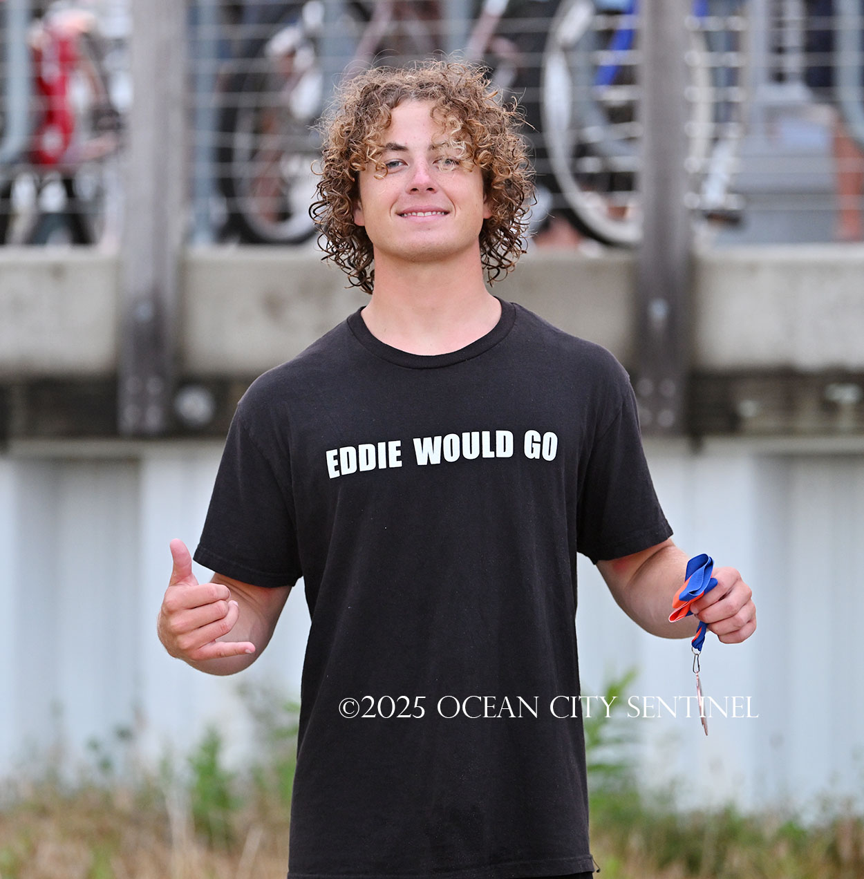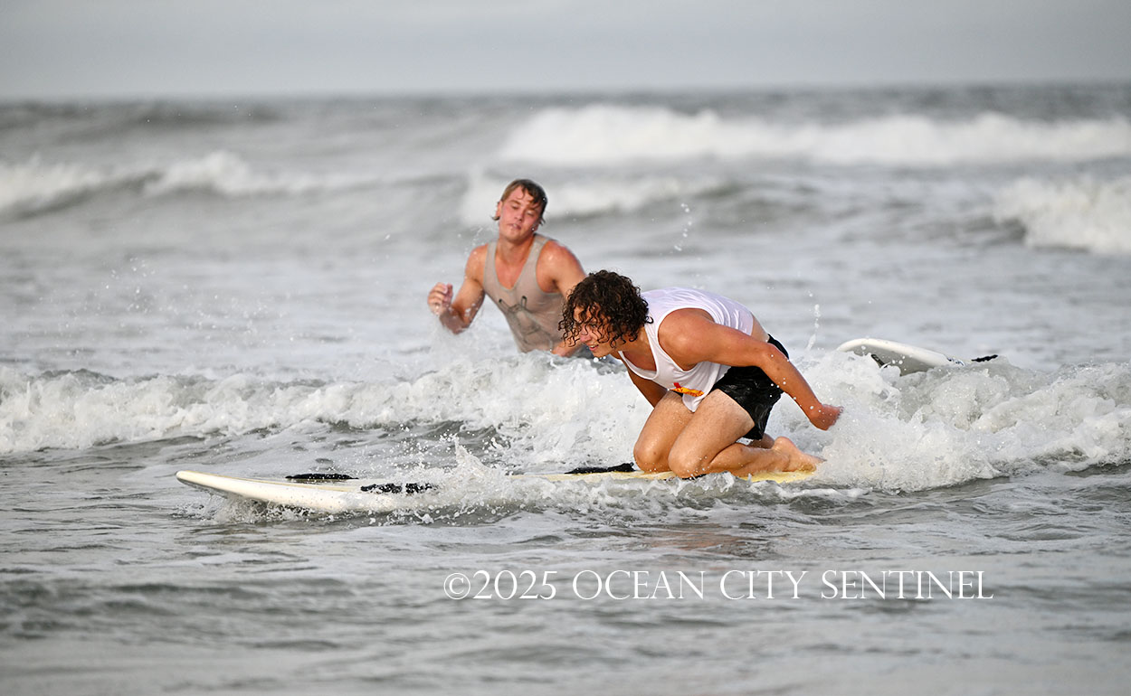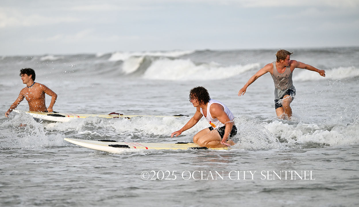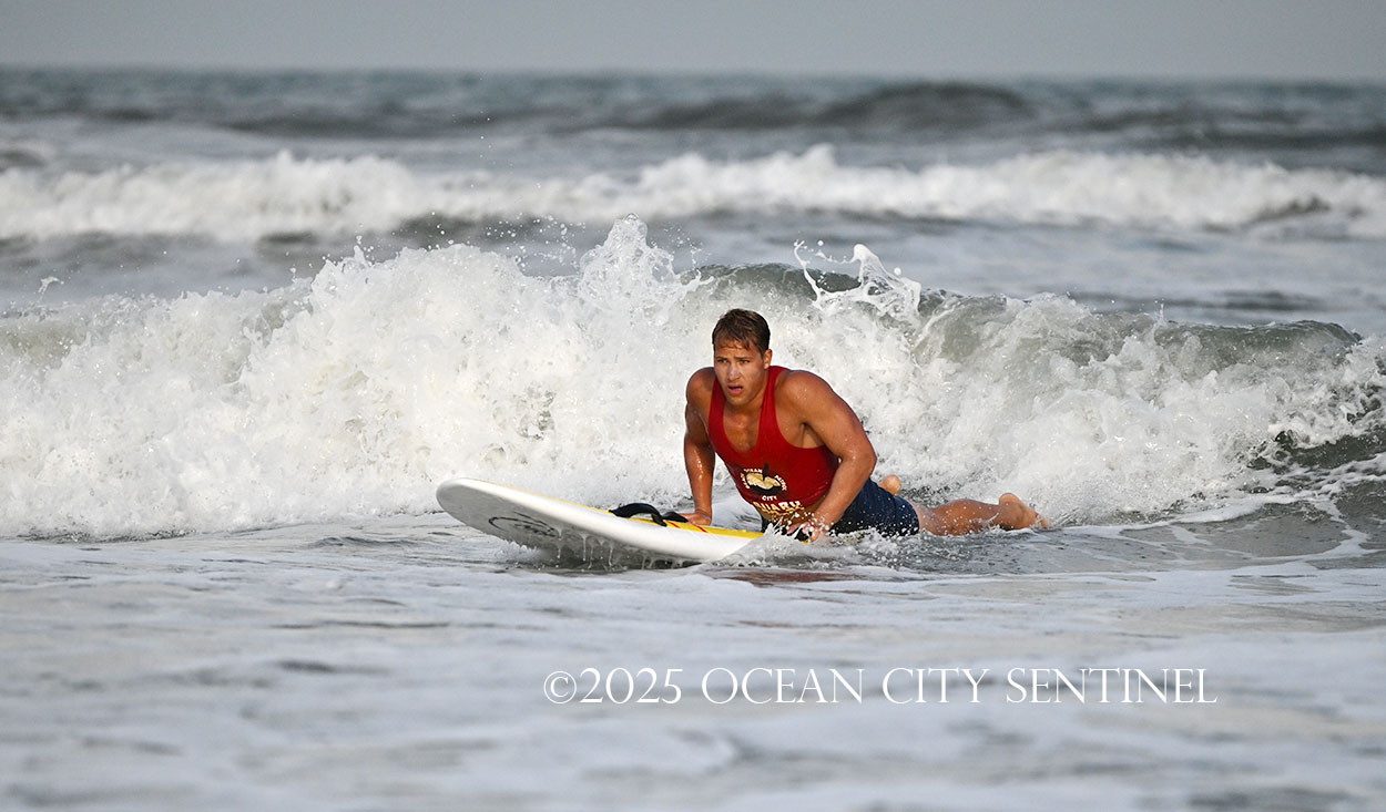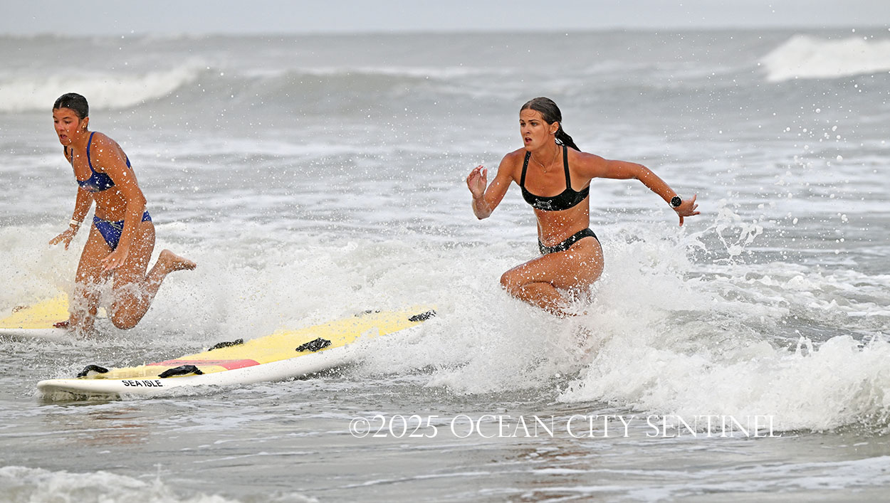 The OCBP’s Brynn Gallagher, who just graduated from Ocean City High School, won the female paddleboard competition. Wildwood Crest’s Maddie Priest and Sea Isle City’s Kylie Fry battled all the way through, with Priest edging Fry for third. Upper Township’s Lindsey Robbins was fourth and Cape May’s Emma DeMario was fifth.