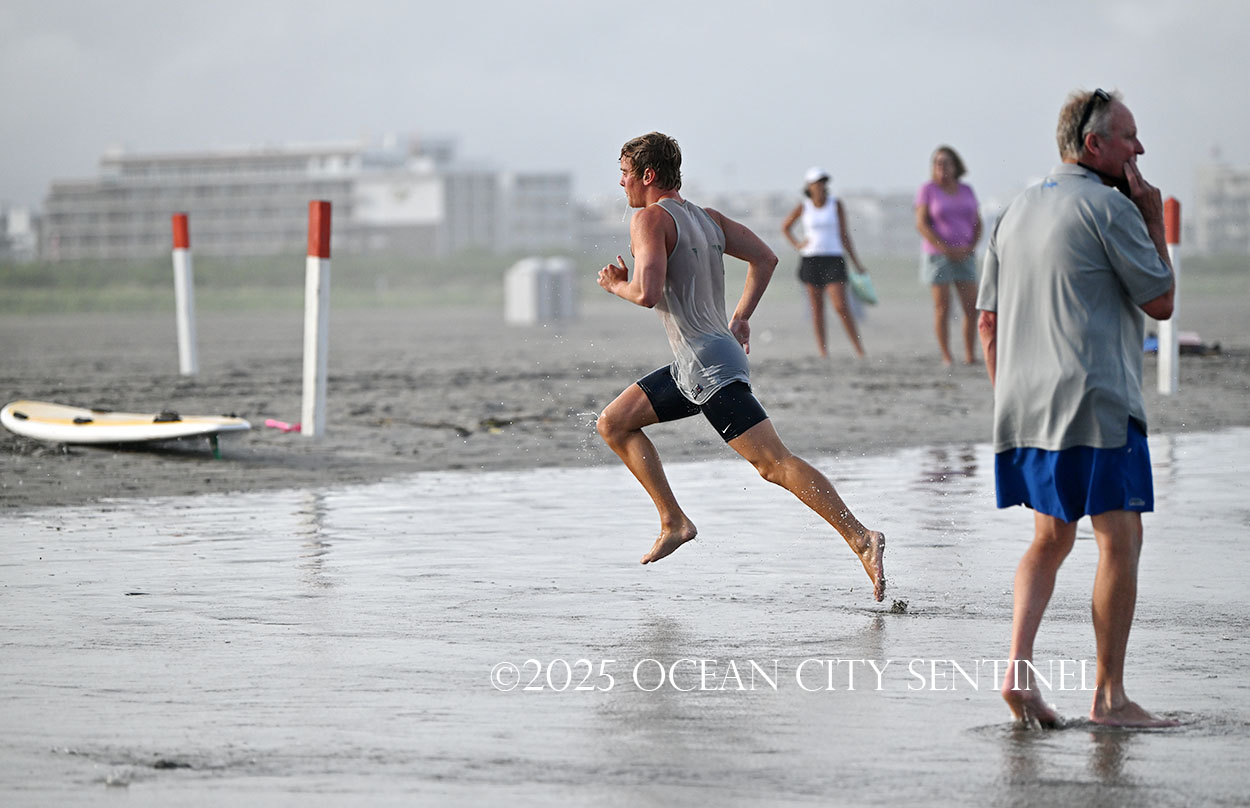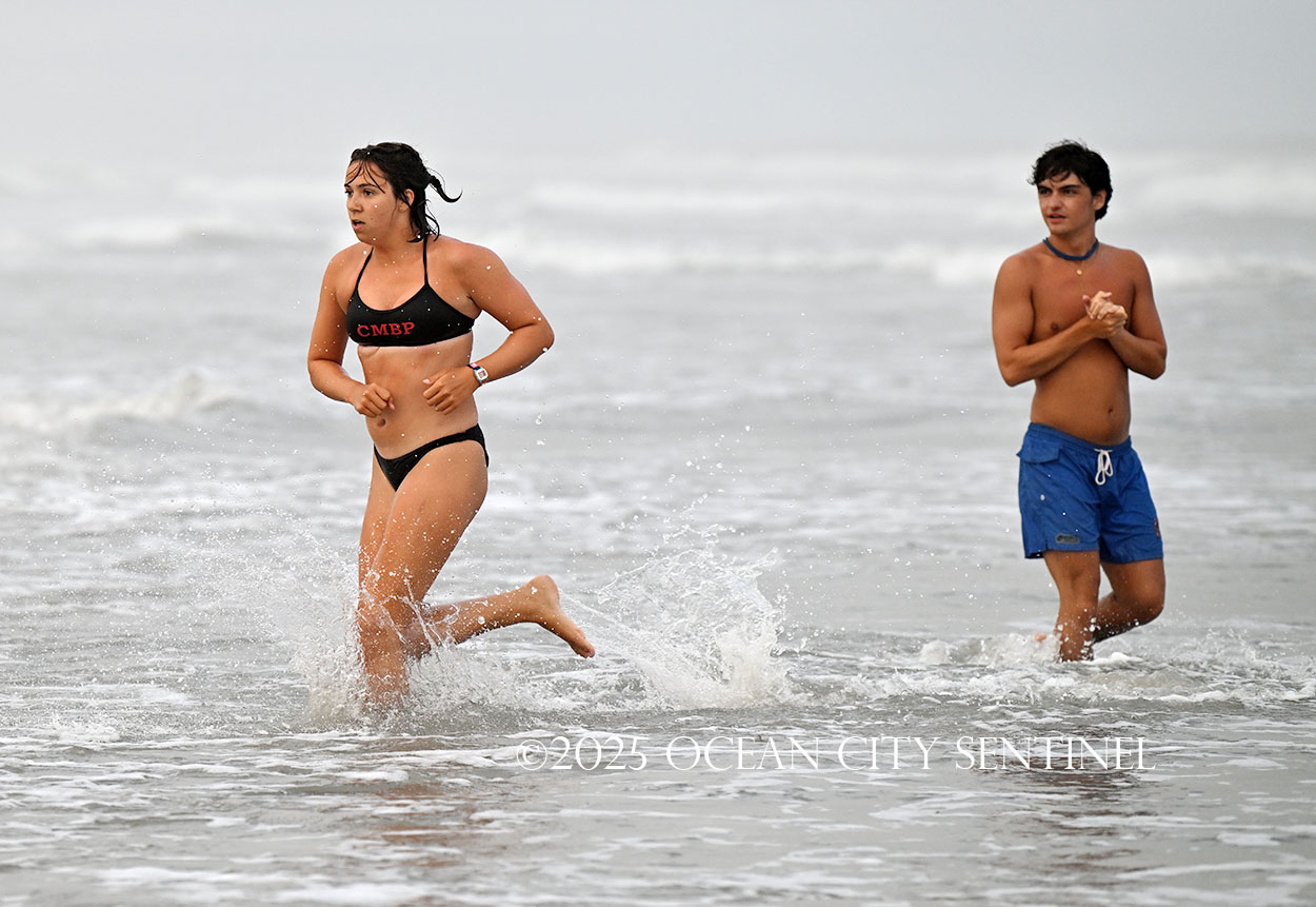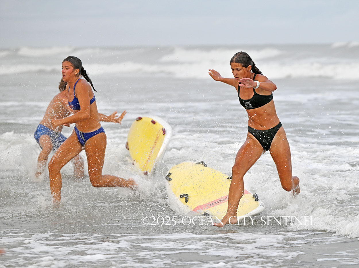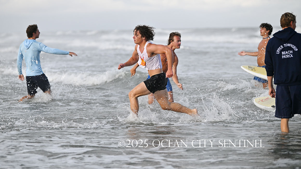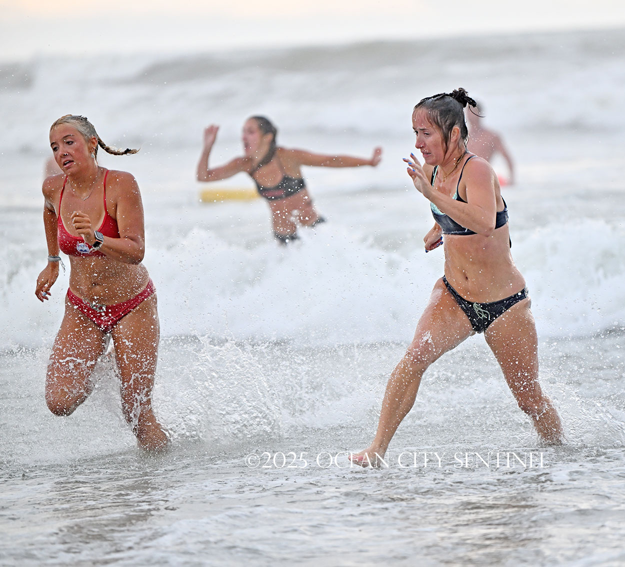 The rainy weather cleared in time for the 6:15 p.m. start, but the seas were rough for the male and female competitors from the 10 beach patrols in the county.