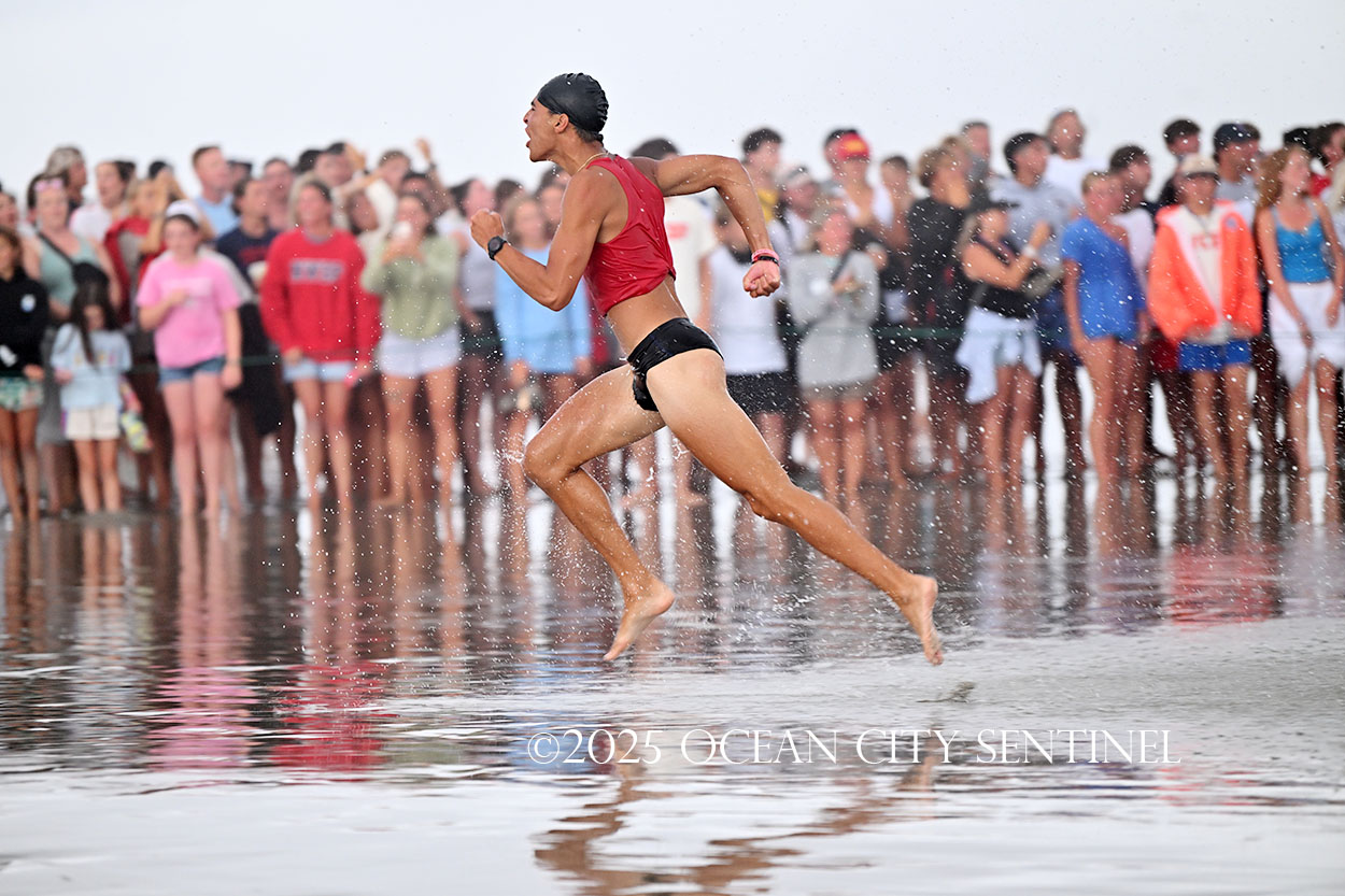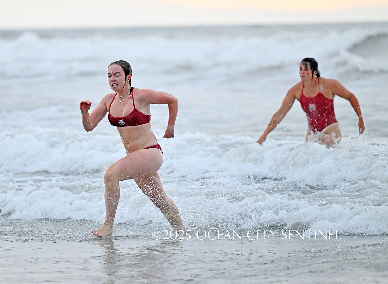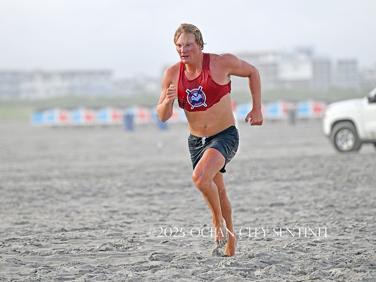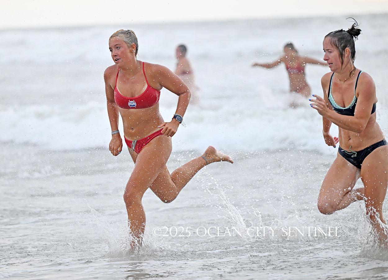 She added the conditions were rough for the dash relay, in which the guards run over the sand and into the surf, touch a marker and then race back again. There was a “really strong current ripping north, so it was learning how to angle, get to the correct buoy, come right back in, and make sure you’re on target,” Frederick said.