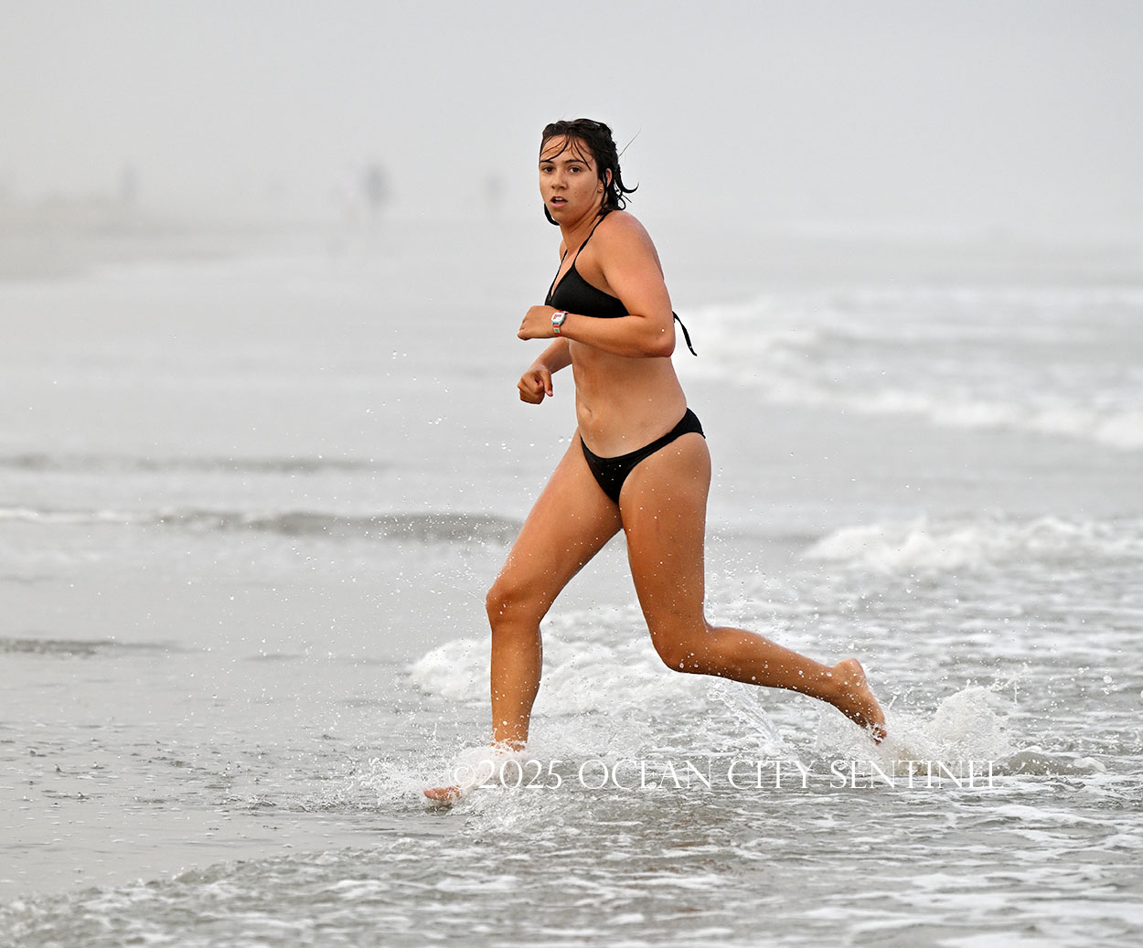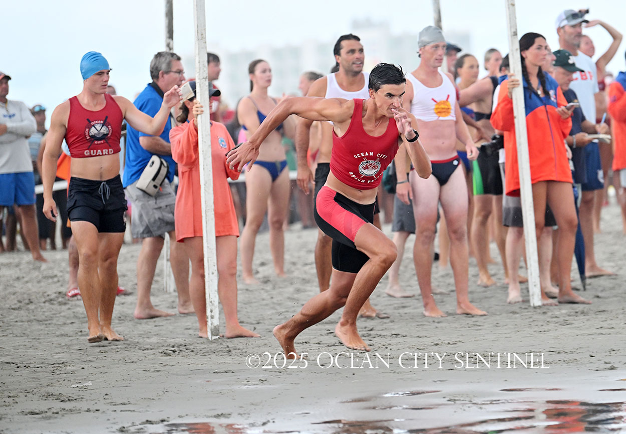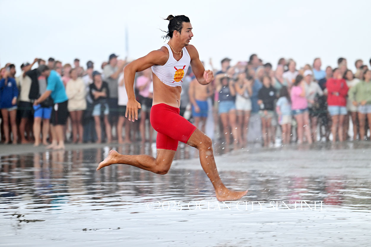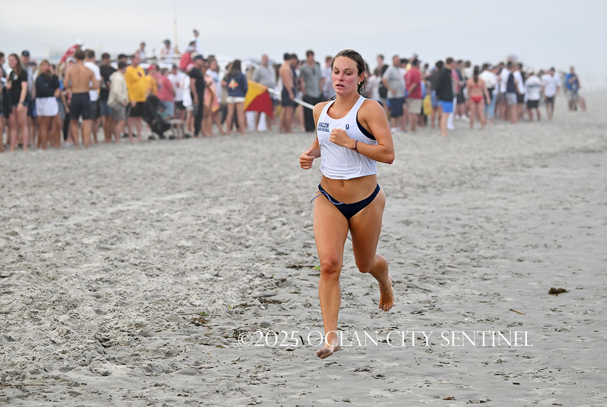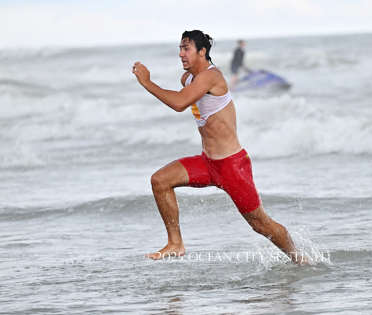 She added the conditions were rough for the dash relay, in which the guards run over the sand and into the surf, touch a marker and then race back again. There was a “really strong current ripping north, so it was learning how to angle, get to the correct buoy, come right back in, and make sure you’re on target,” Frederick said.